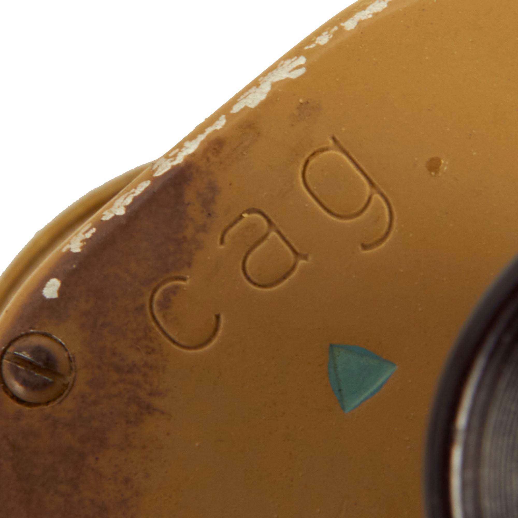 The use of the three letter code, indicates that these were made after 1940. cag represents Swarovski Wattens of Tirol, Austria. The included Bakelite carry case is in wonderful condition and still retains the original belt strap, though the carry straps are missing completely.