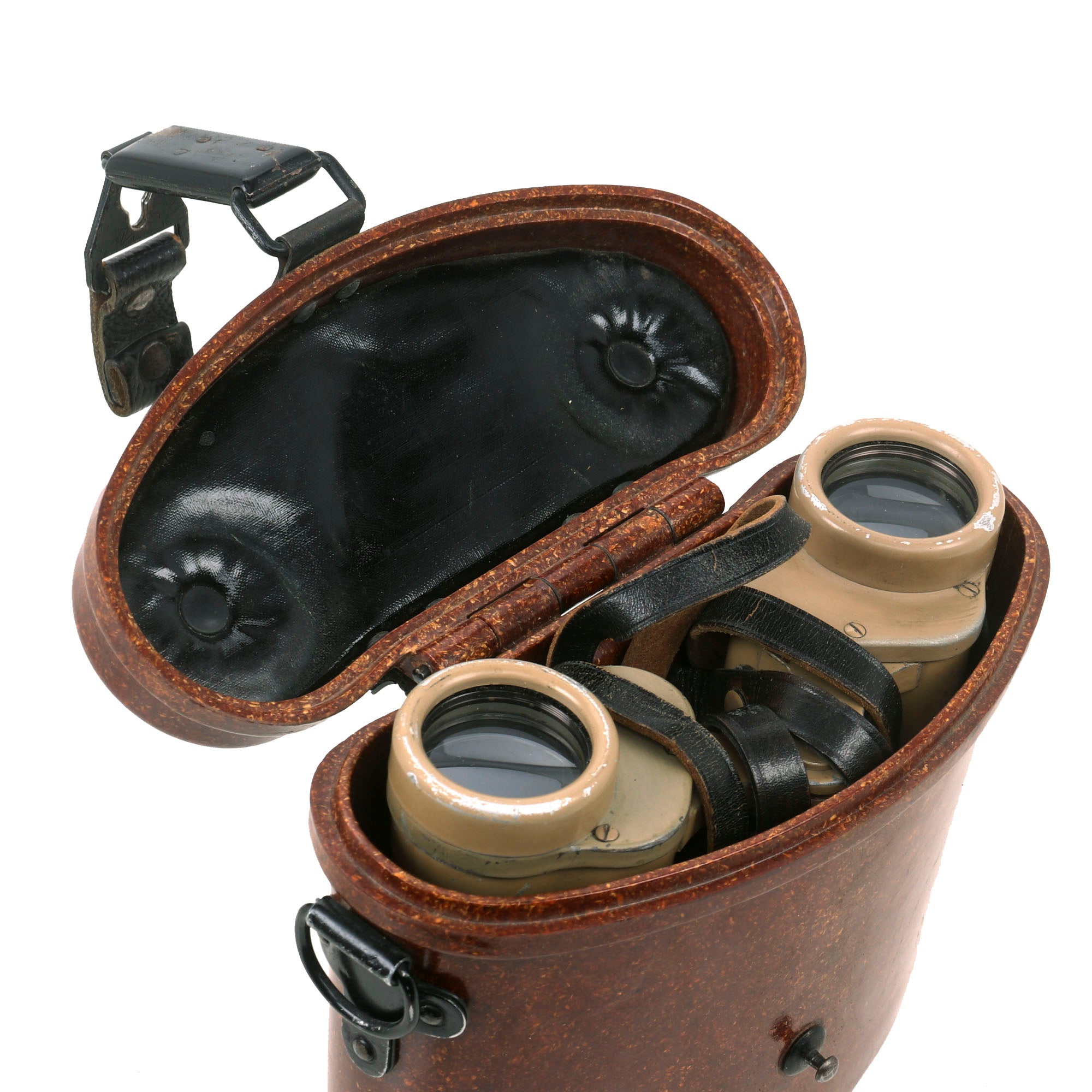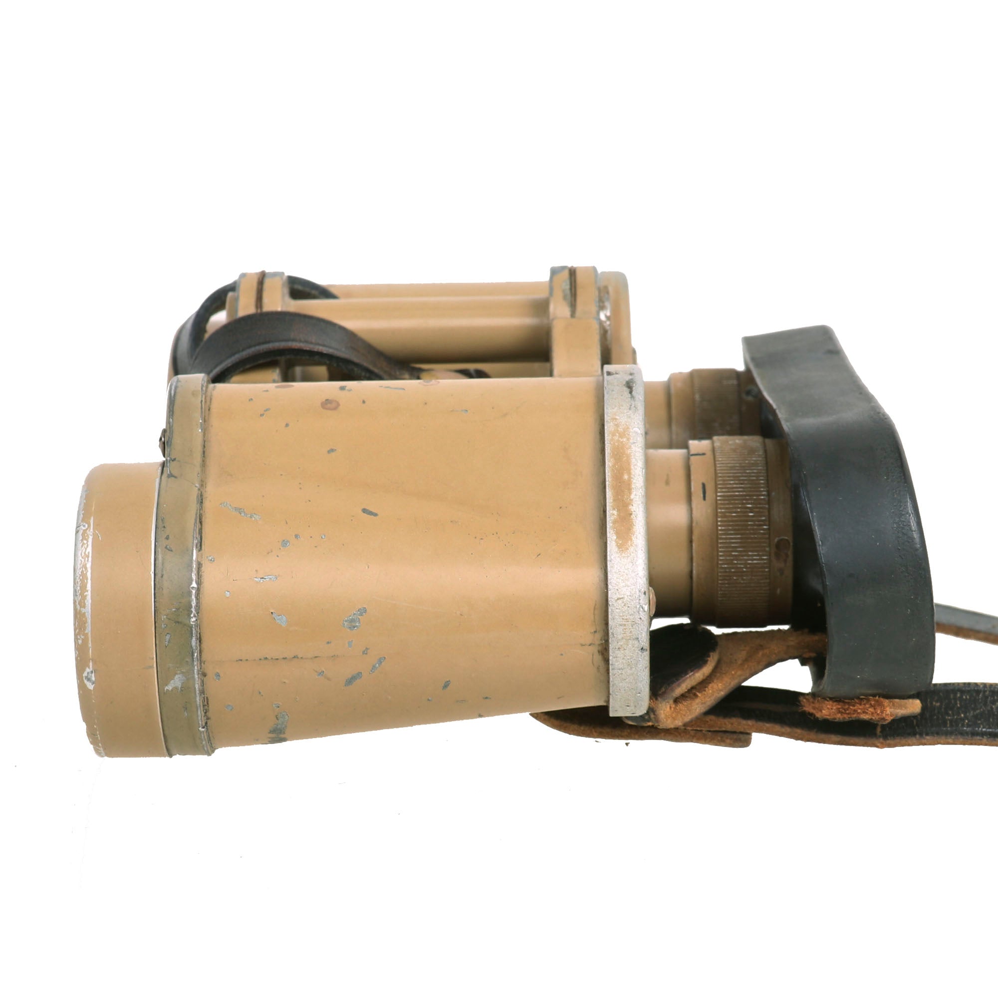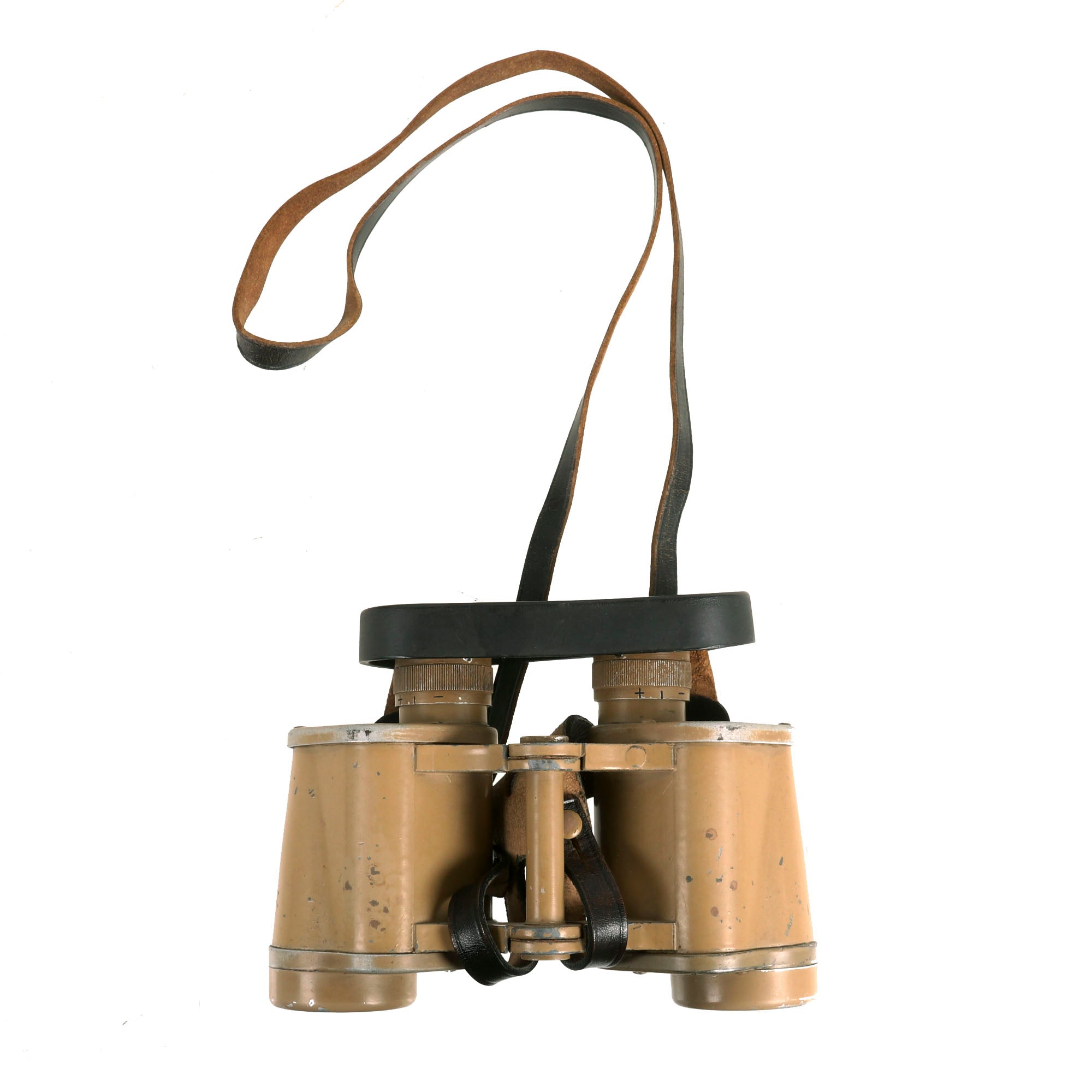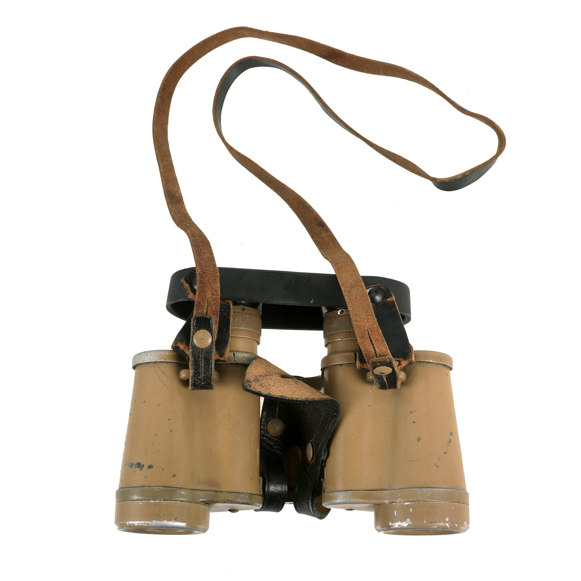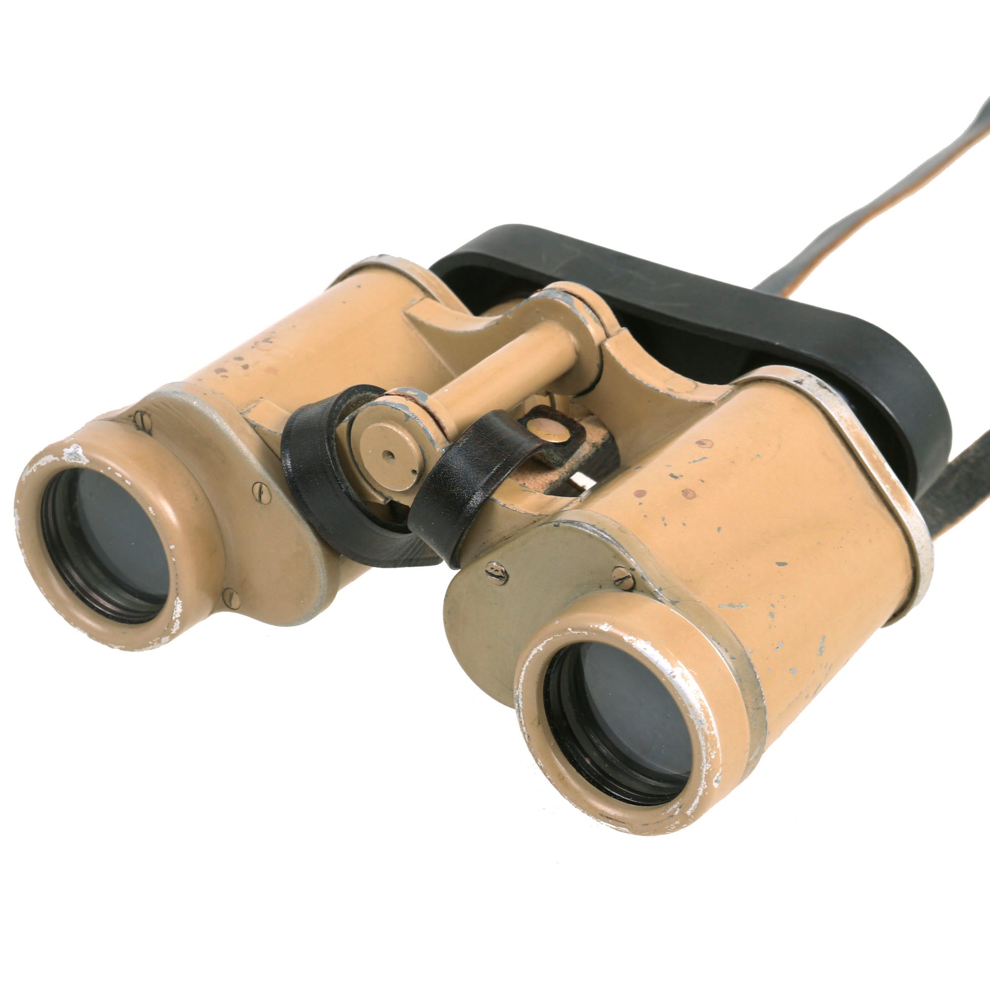 Original Item: Only One Available. The 6x30 Dienstglas (Service Glass) was one of the most used German issued binoculars of WWII. This example is fully functional, with mostly clear optics, and working adjustments. Unfortunately the rubber eyepiece cover is torn on one side from the leather neck strap. It is nicely marked as follows on the base of the right barrel: