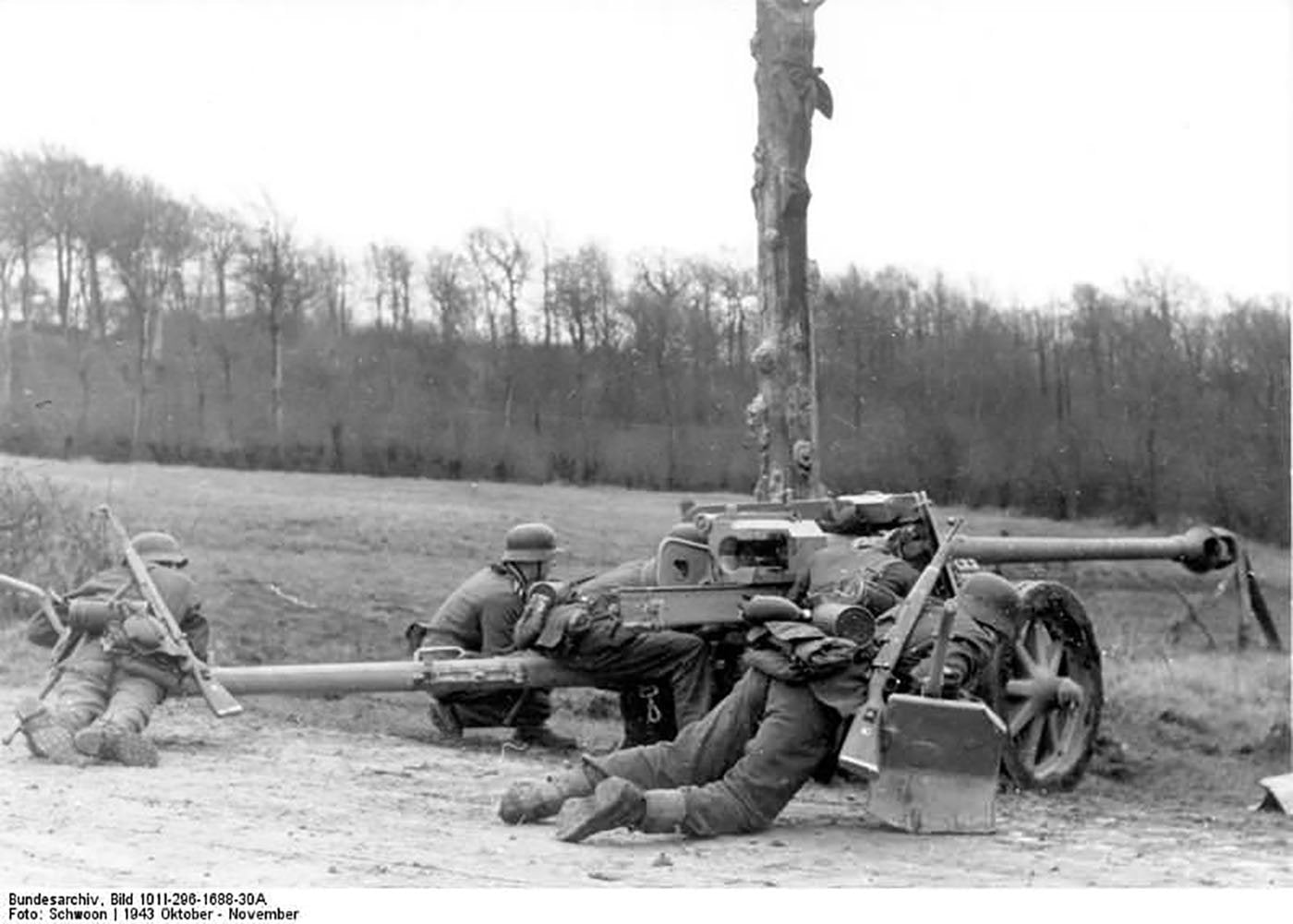 The 7.5 cm Pak 40 (7,5 cm Panzerabwehrkanone 40 - lit. "7.5cm armor defense cannon 40") was a German 75 millimetre anti-tank gun developed in 1939–1941 by Rheinmetall and used during the Second World War. With 23,303 examples produced, the Pak 40 formed the backbone of German anti-tank guns for the later part of World War II, mostly in towed form, but also on a number of tank destroyers such as the Marder series.