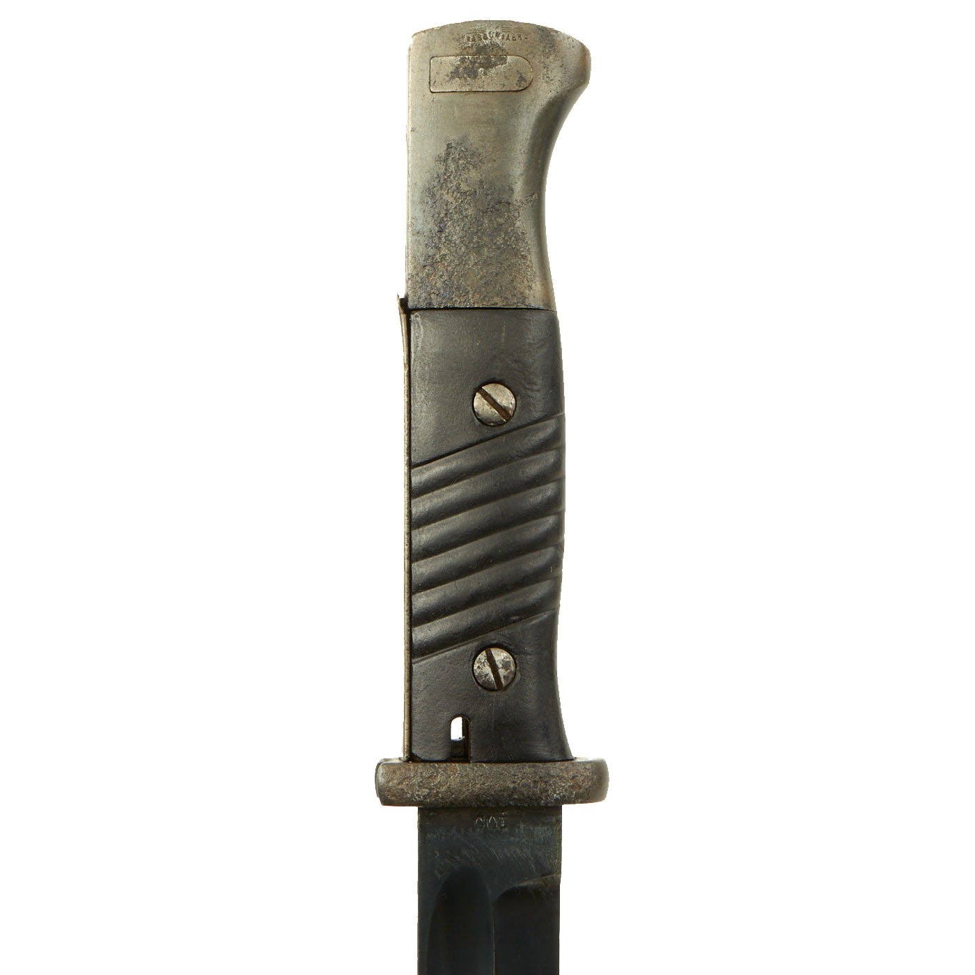 Original Item: Only One Available. In 1935 the German military introduced the K98k bolt action rifle or Karabiner 98 Kurz, as a replacement for the older GEW98 or Gewehr 98. A new, shorter bayonet was designed to go along with the shortened rifle. The K98 bayonet was officially named Seitengewehr 84/98 III or SG 84/98 III. The bayonet was designed as a close combat sidearm that could be placed on the tip of a K98.