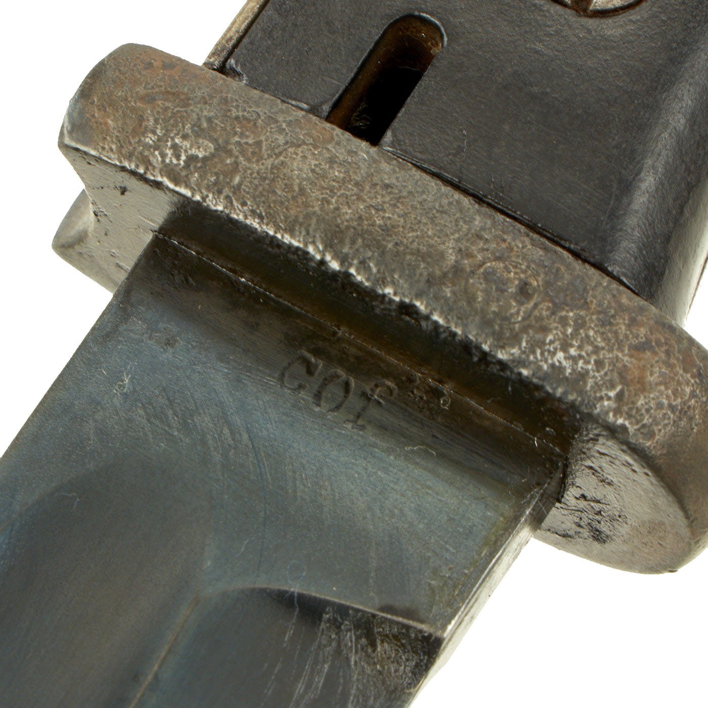 An original very nice German WWII Matching 98k Bayonet and scabbard with frog by a highly desirable maker. Ready to display or fit to your 98K rifle!