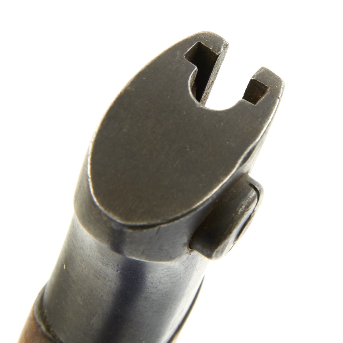 Bayonet and scabbard come complete with an original leather frog, which fits the scabbard nicely. The frog does show age, and the finish has cracked in many places, but it is overall solid, and a great display piece.
