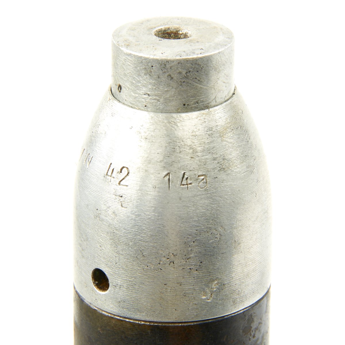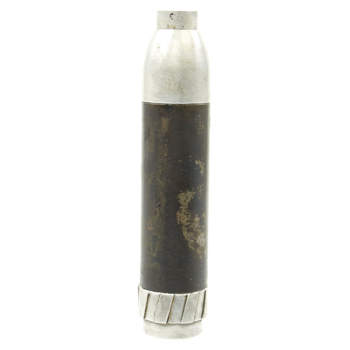 Original Item: Only One Available. Totally inert per guidelines provided by the Bureau of Alcohol Tobacco and Firearms (ATF) this is a rare German WW2 30mm Anti-Personnel rifle grenade known as a Gewehr Spreng Granat 30 round which is partially constructed of aluminum and offered in excellent condition. The steel body is painted brown and features an aluminum fuse and screw off aluminum base. It is stamped on the top: