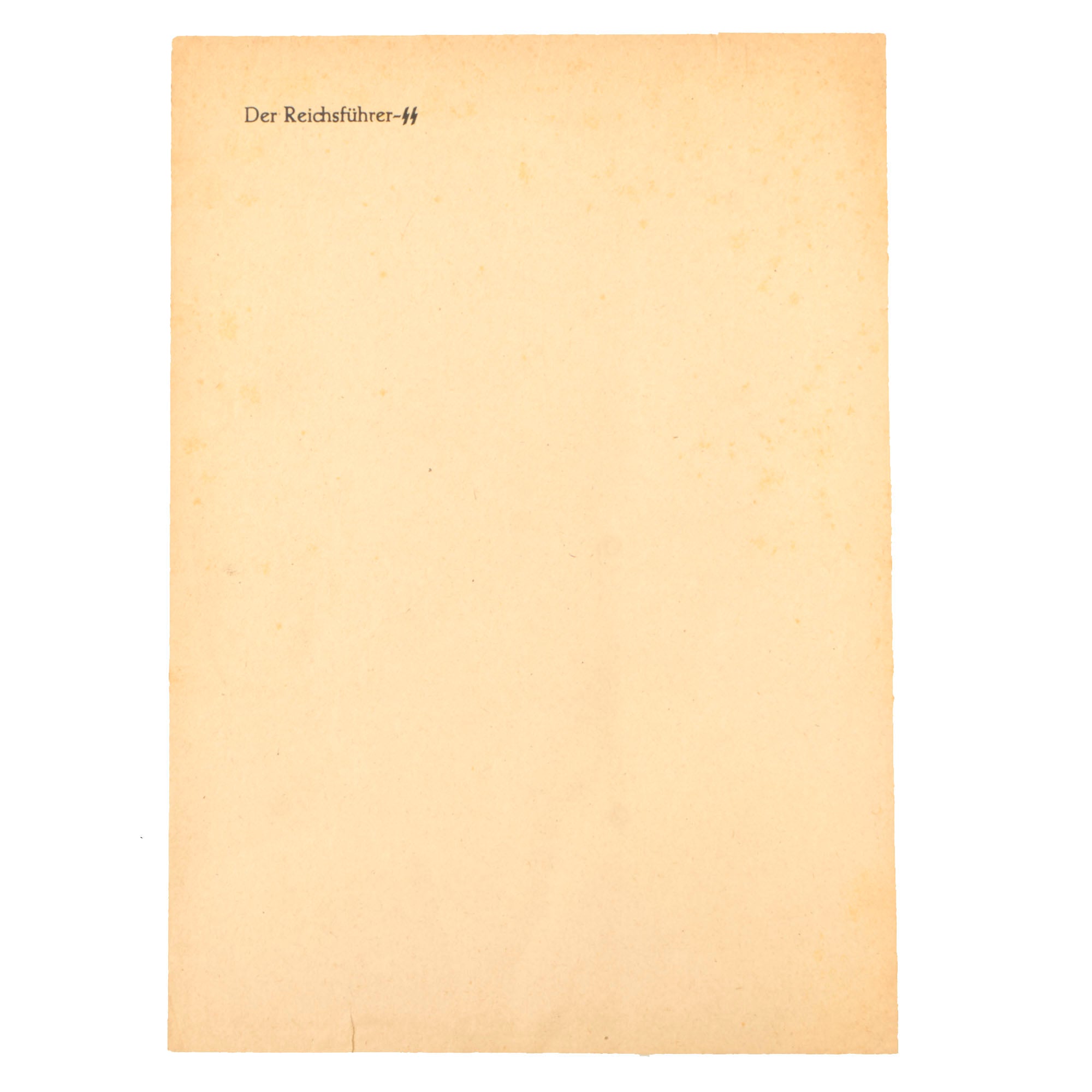 Original Item: Only One Available. This is a very nice piece of A4 Letterhead paper the office of Der Reichsführer-ᛋᛋ (Head of the SS), the infamous Heinrich Himmler. As head of the SS he was also directly responsible for numerous murders, massacres, and other crimes against humanity carried out by members of the SS.