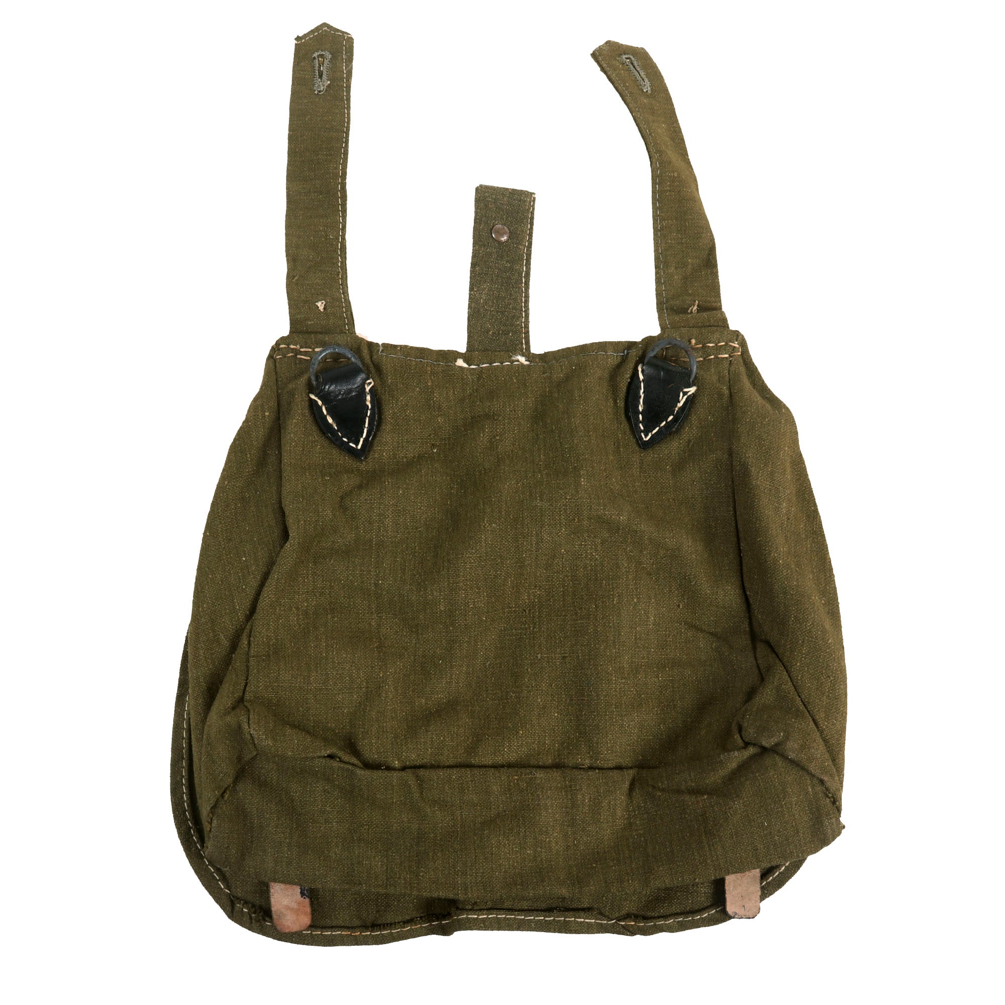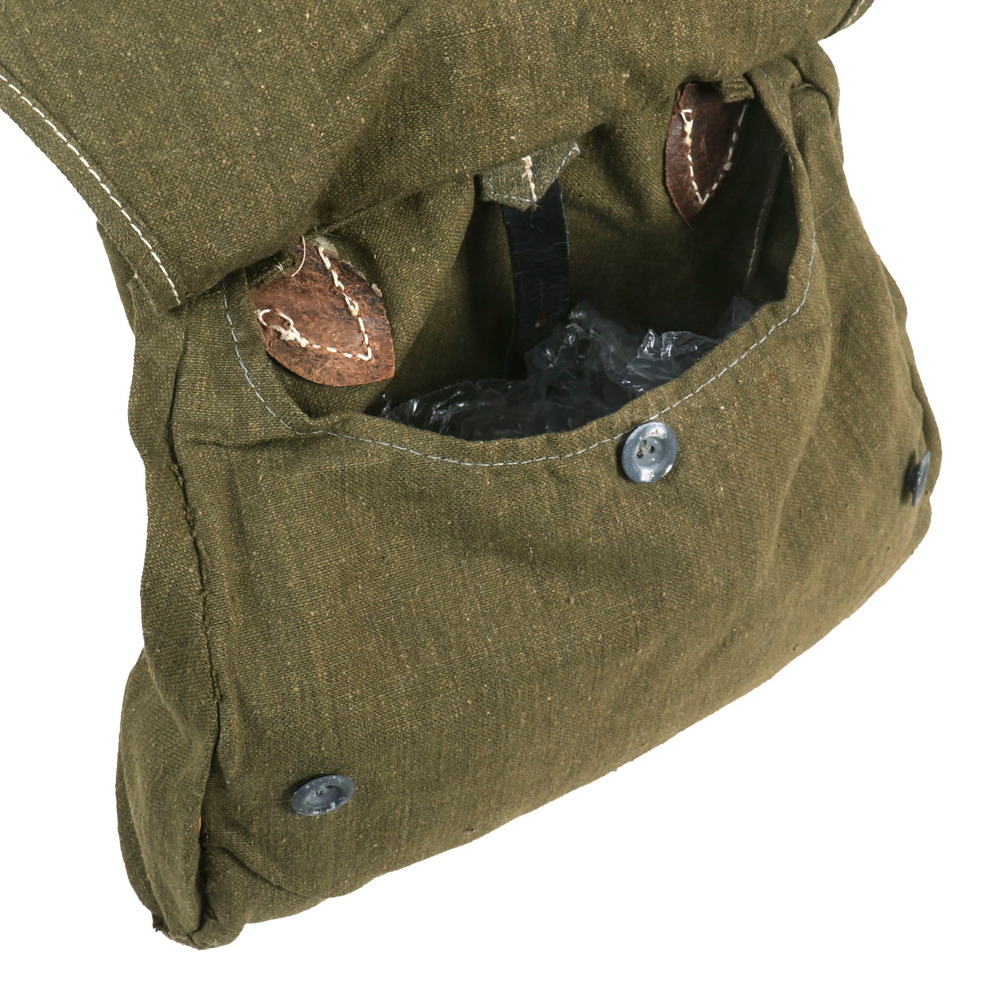 The canteen is connected to the M31 breadbag which does not have a shoulder strap or any markings that we can see besides a partial stamp on one of the straps. The bag is in good shape and has few flaws.