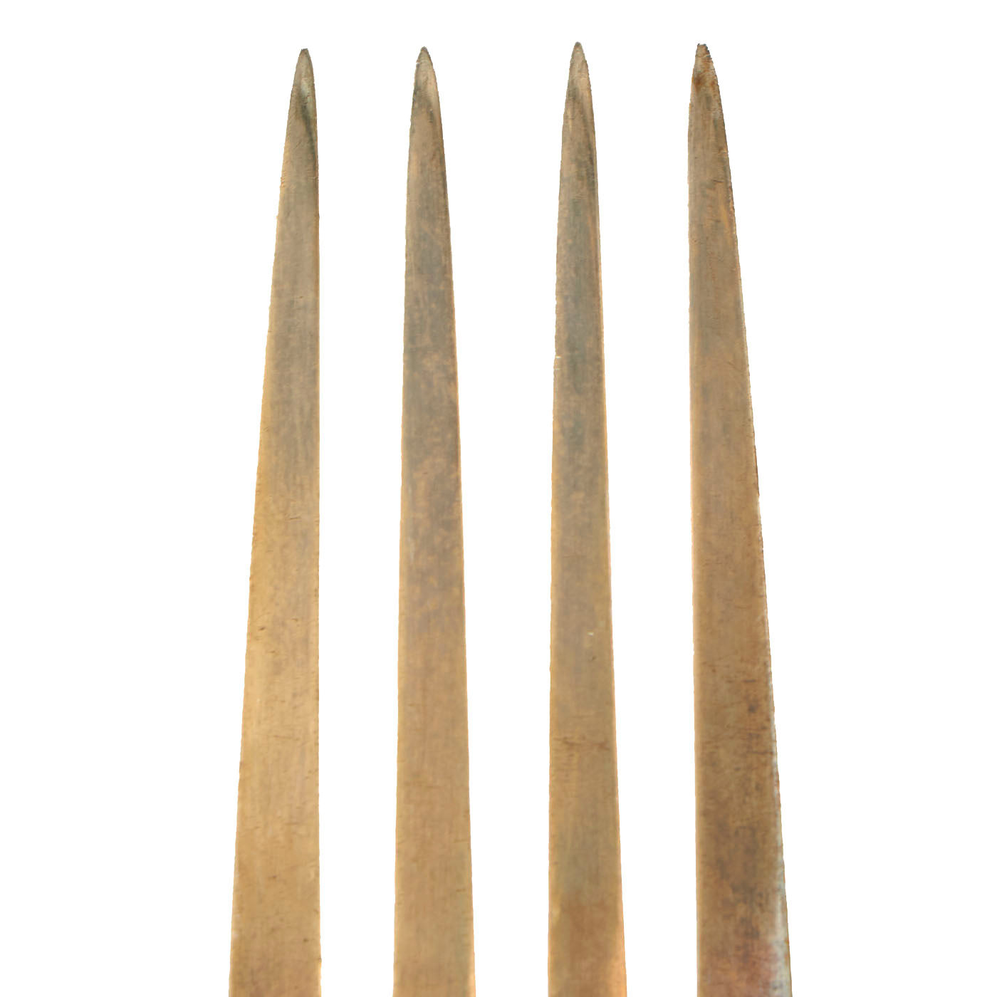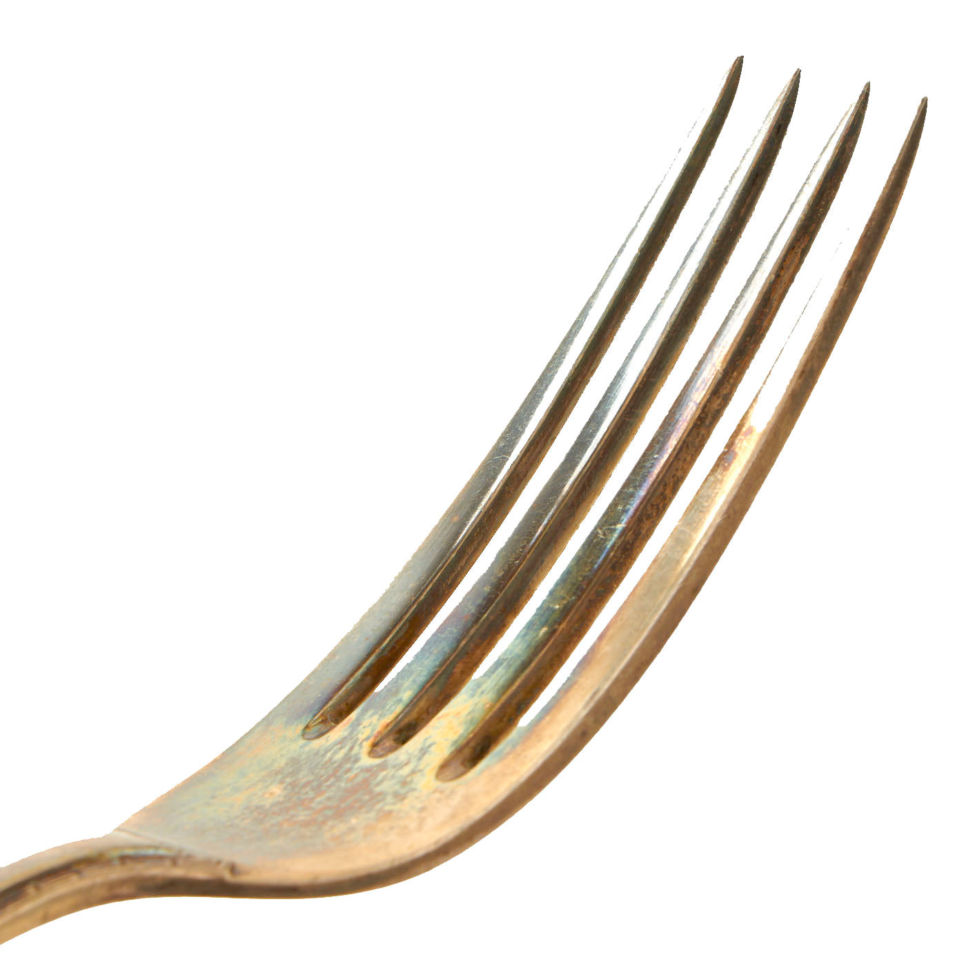 The condition is very good, and it looks to have been stored relatively well, as there is only light tarnish in areas with no signs of heavy polishing. The tines are straight, with just a bit of deformation to the tips.