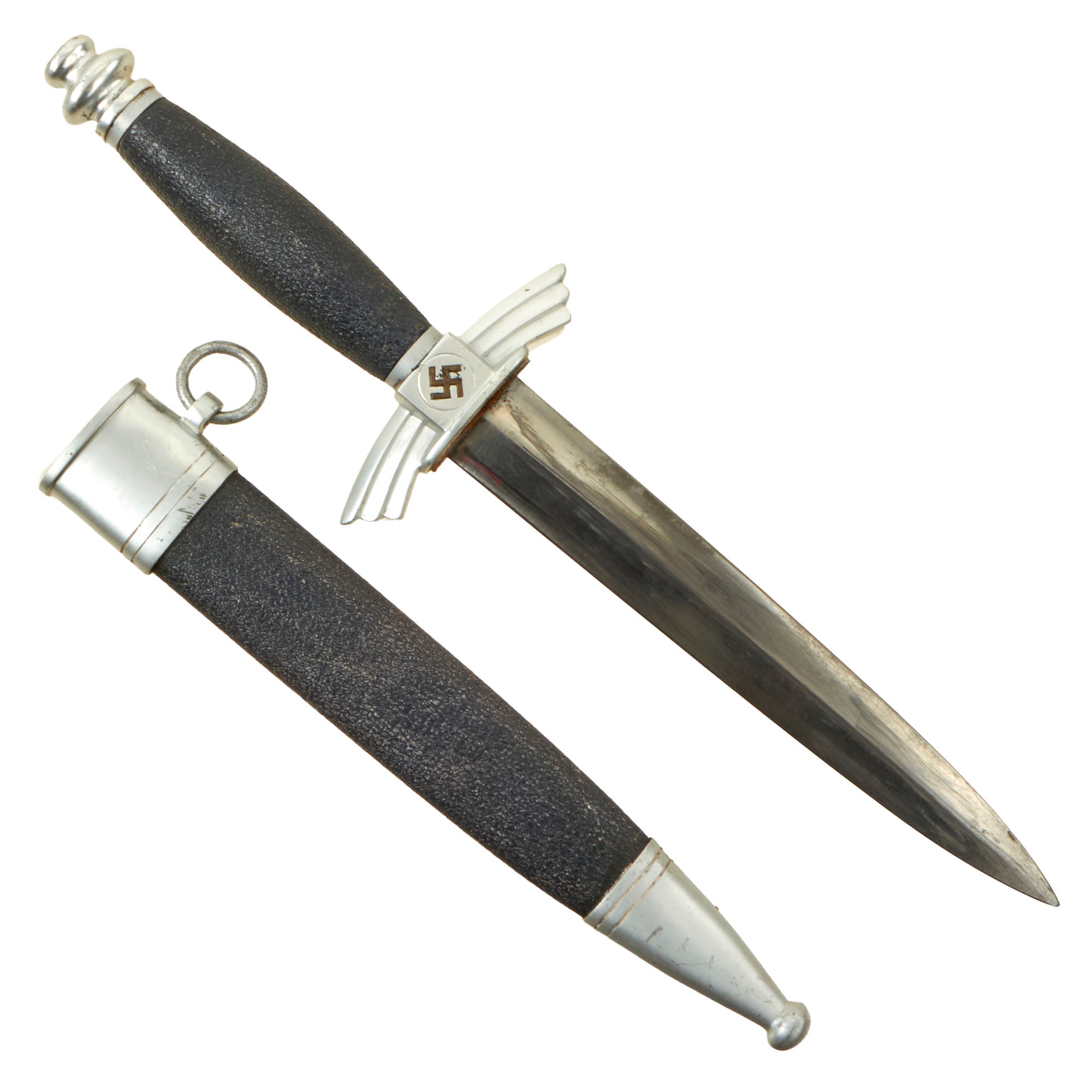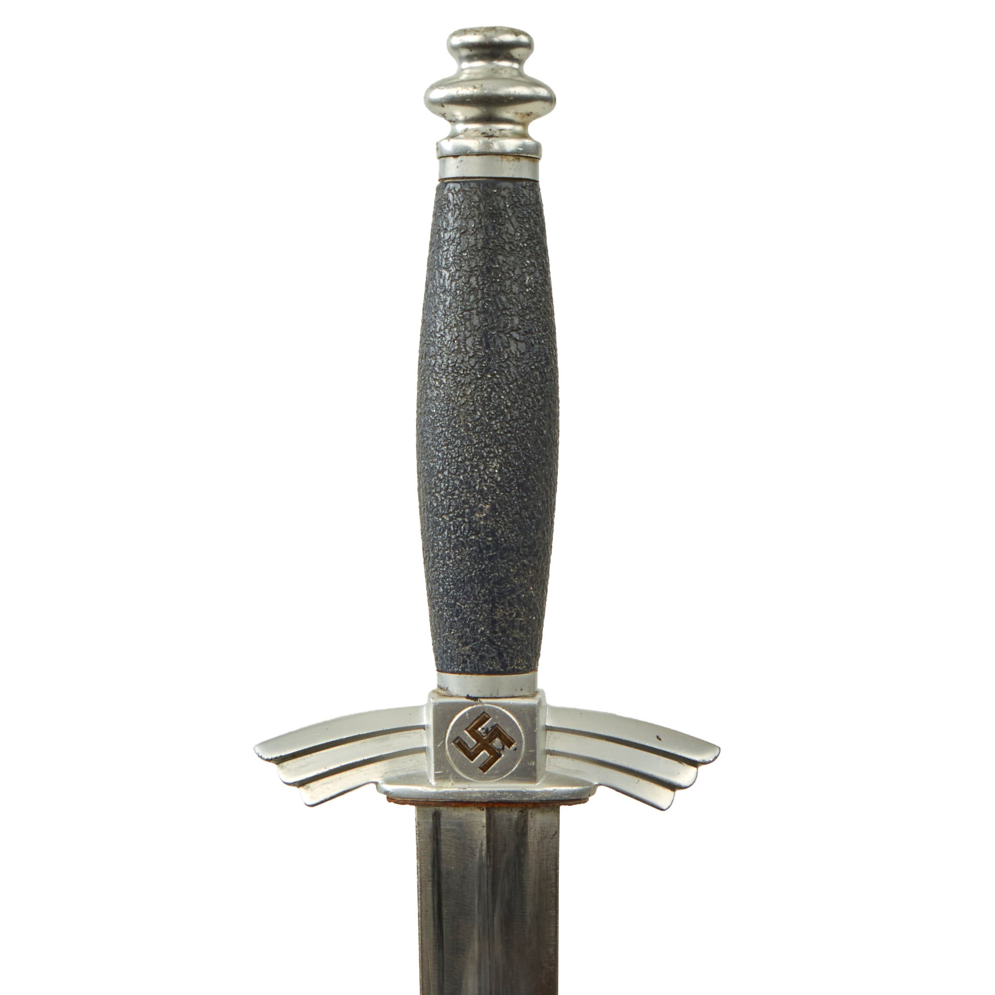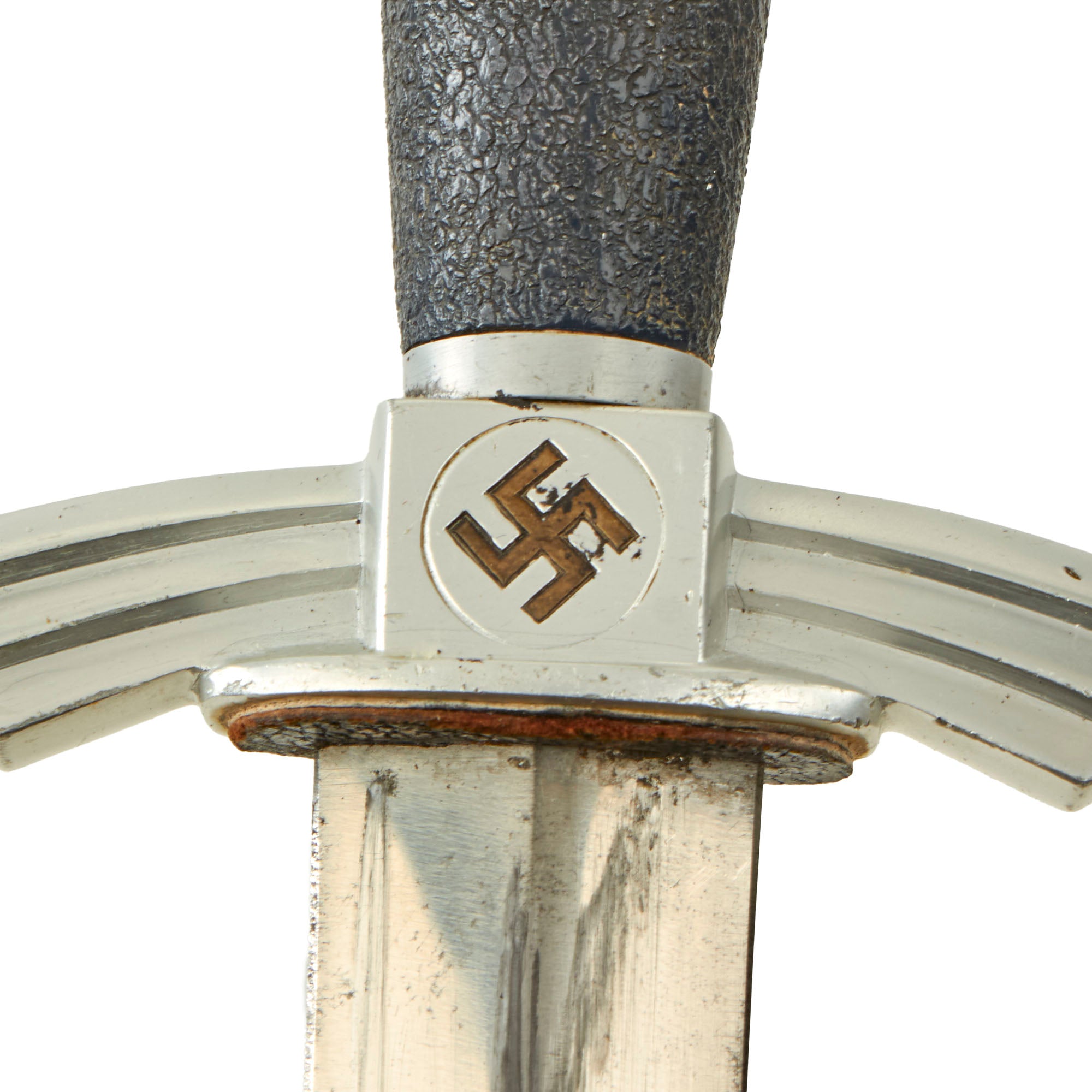 Like all of the NSDAP German paramilitary organizations, they were issued various ceremonial items to instill loyalty, such as this early production NSFK Glider Pilot's Dagger, complete with scabbard and belt hanger.