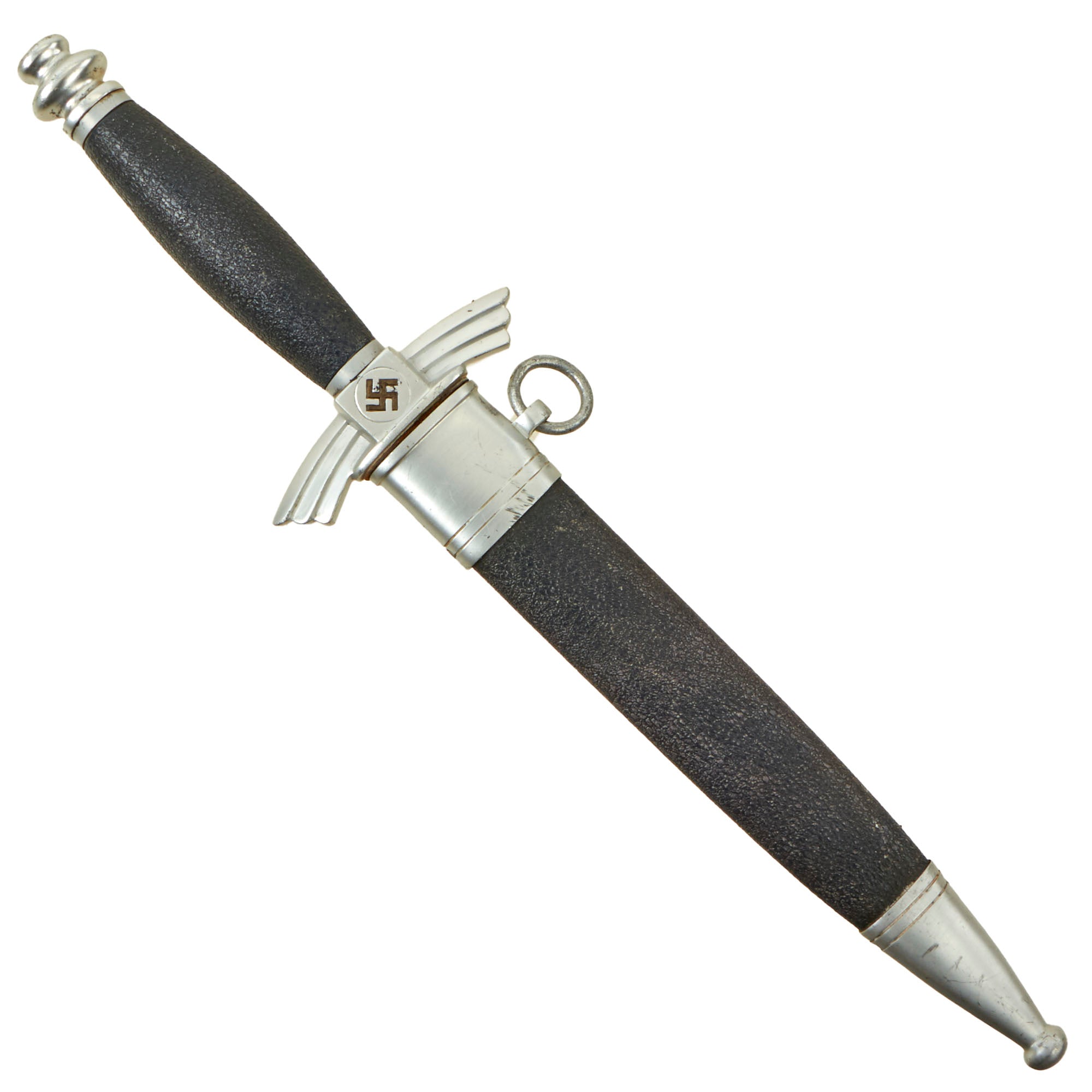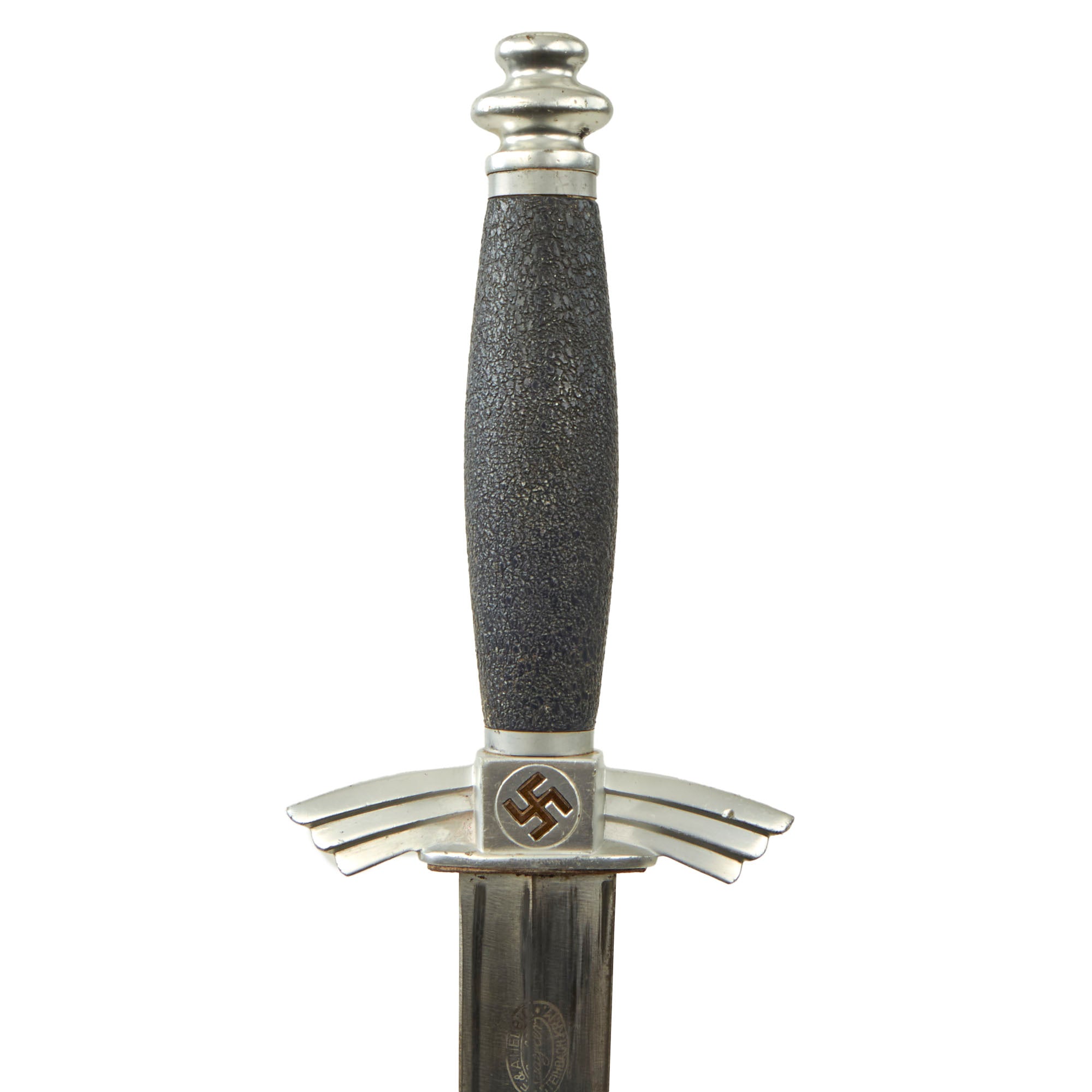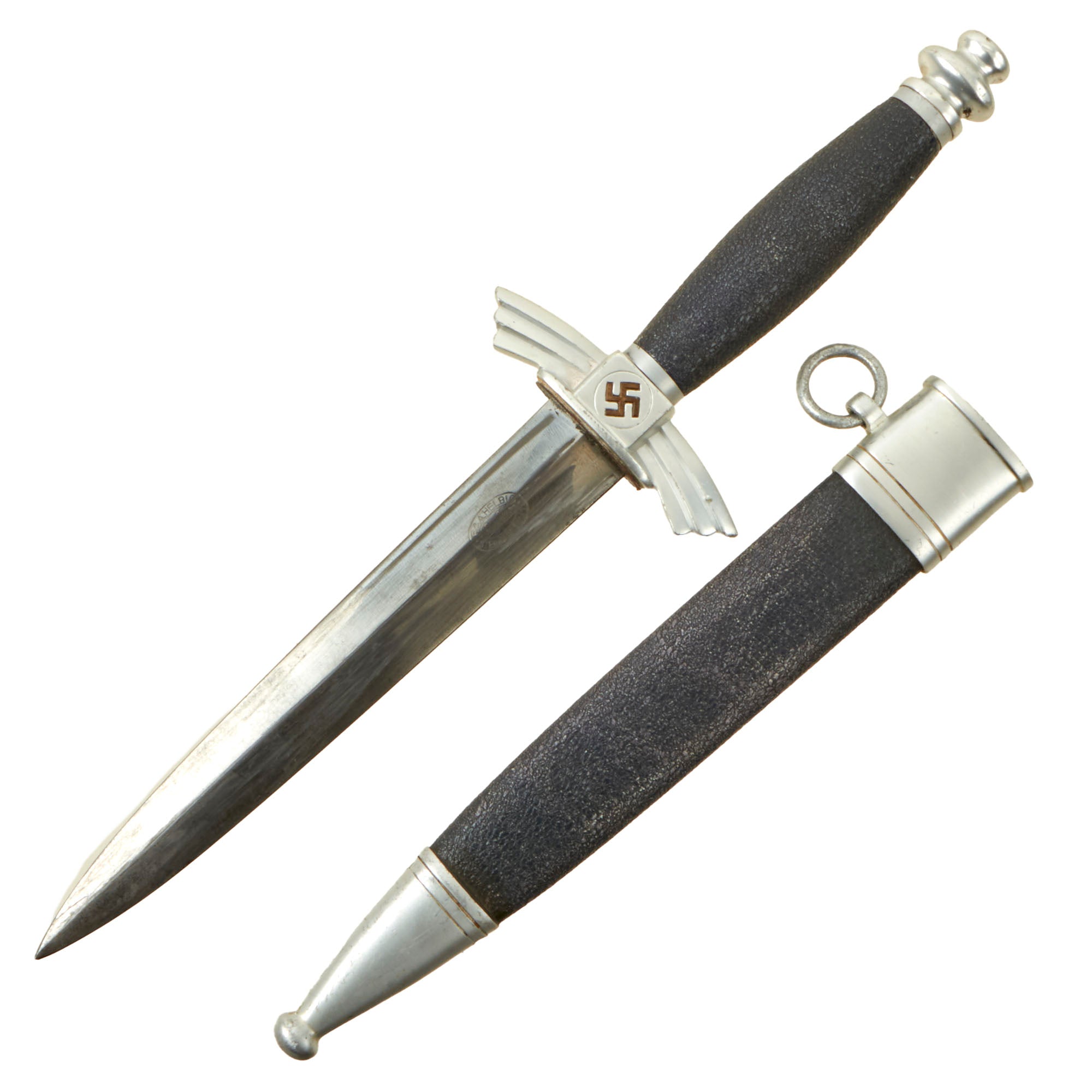 Like all of the NSDAP German paramilitary organizations, they were issued various ceremonial items to instill loyalty, such as this early production NSFK Glider Pilot's Dagger, complete with scabbard and belt hanger.