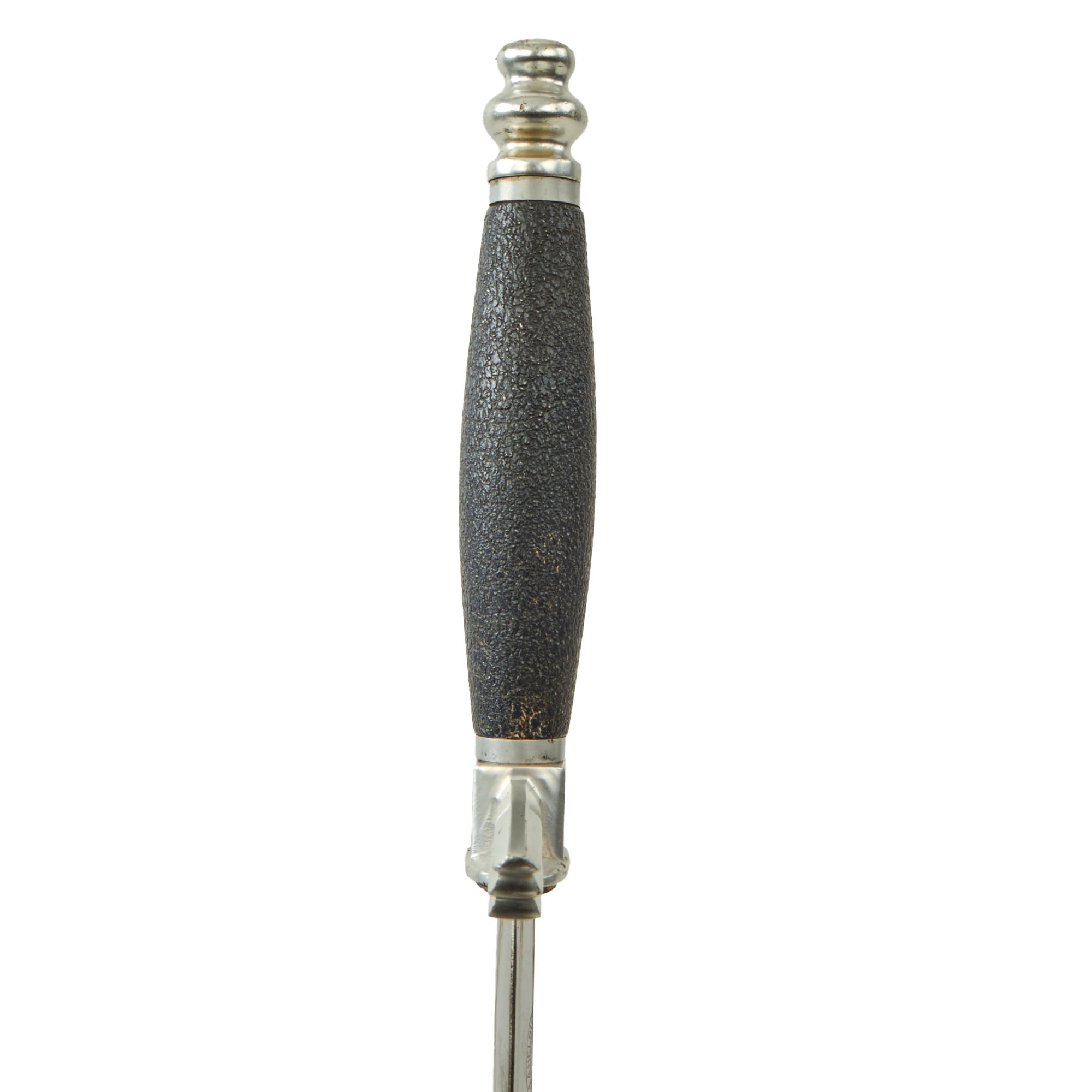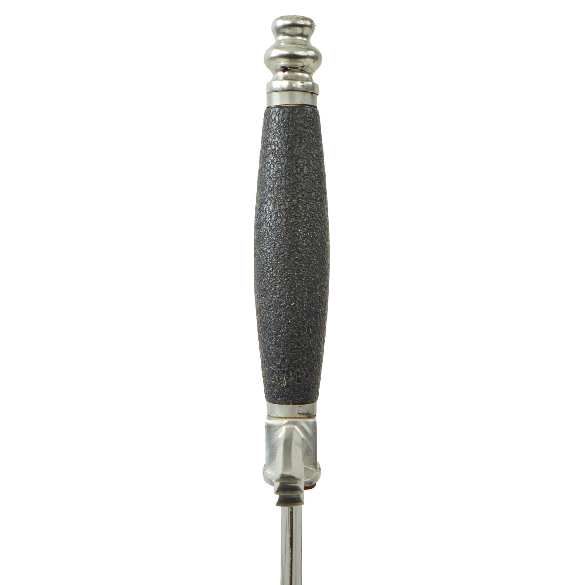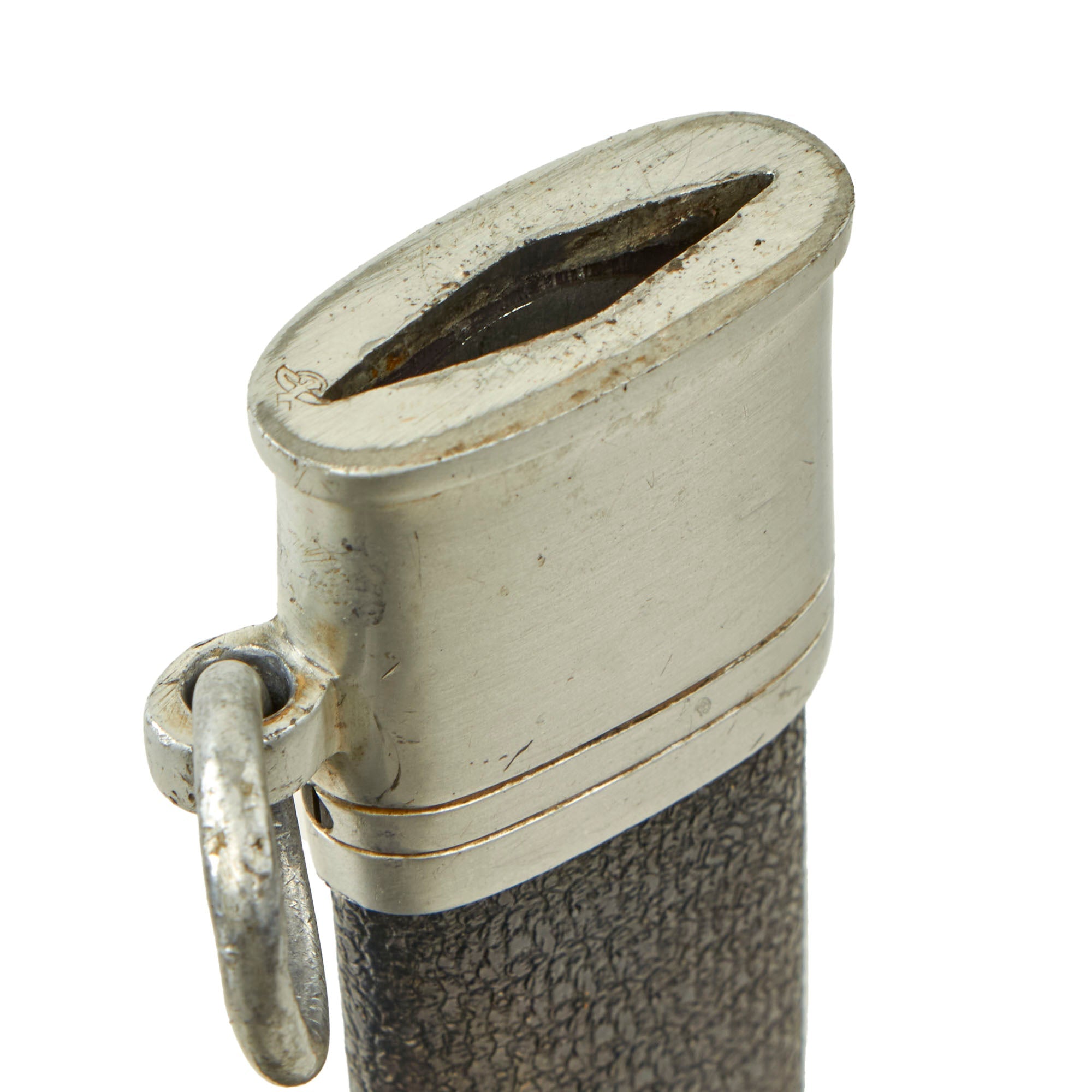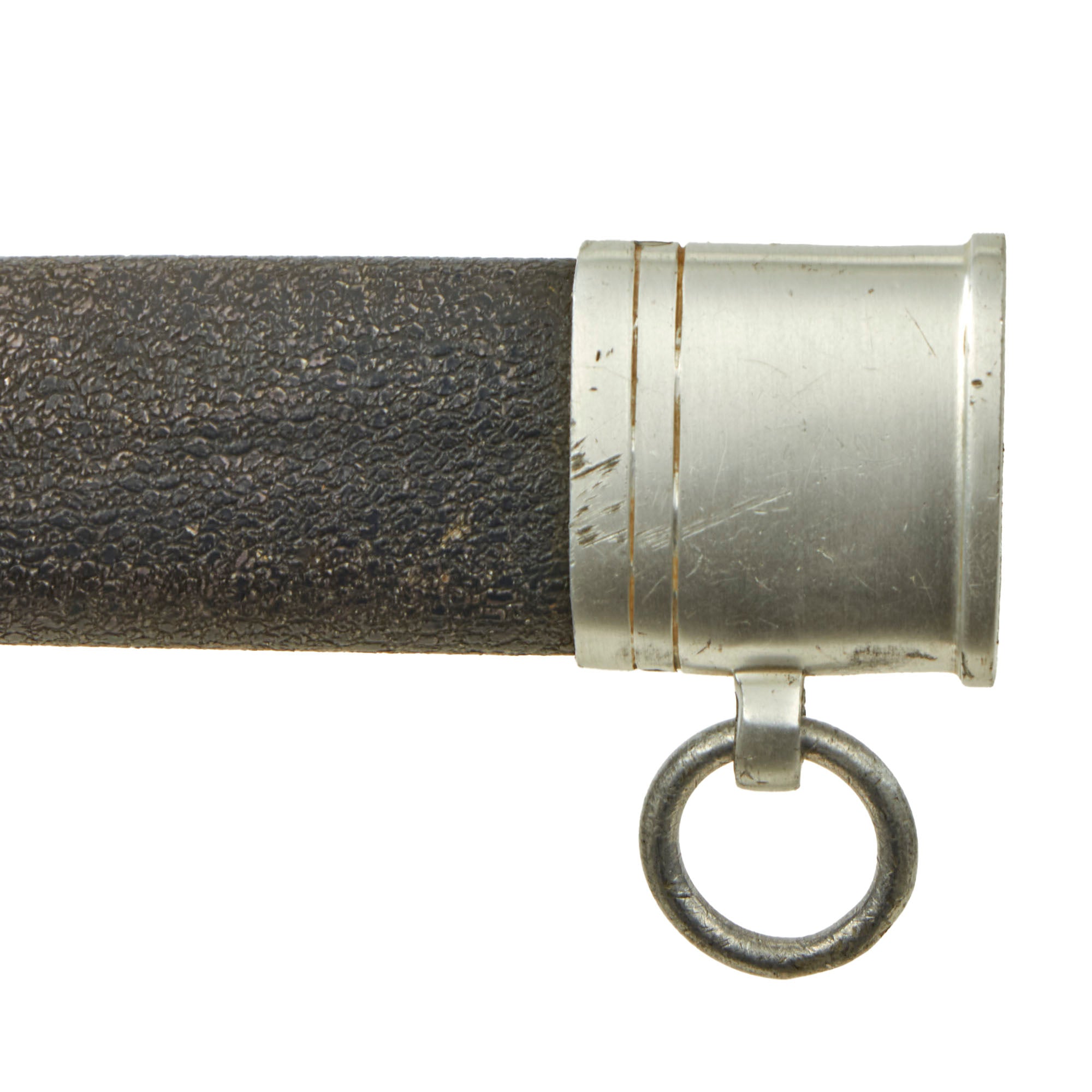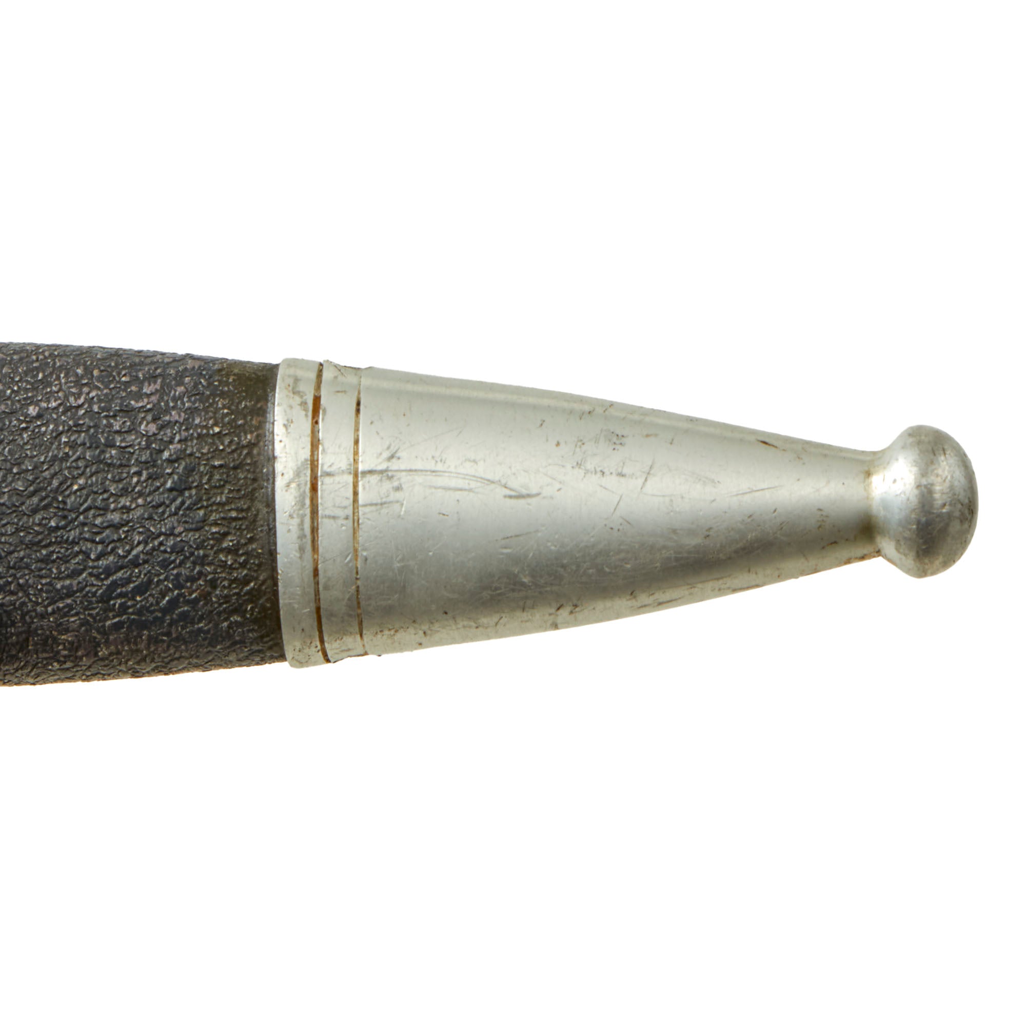 This example looks to have seen light to moderate service, and has a fantastic lightly worn patina. This is a later style example, which is fit almost entirely with aluminum, either painted or with a matte / brushed finish. The The pommel cap is the three stage variety, still crisp throughout the edges with some dents and scratches from use.