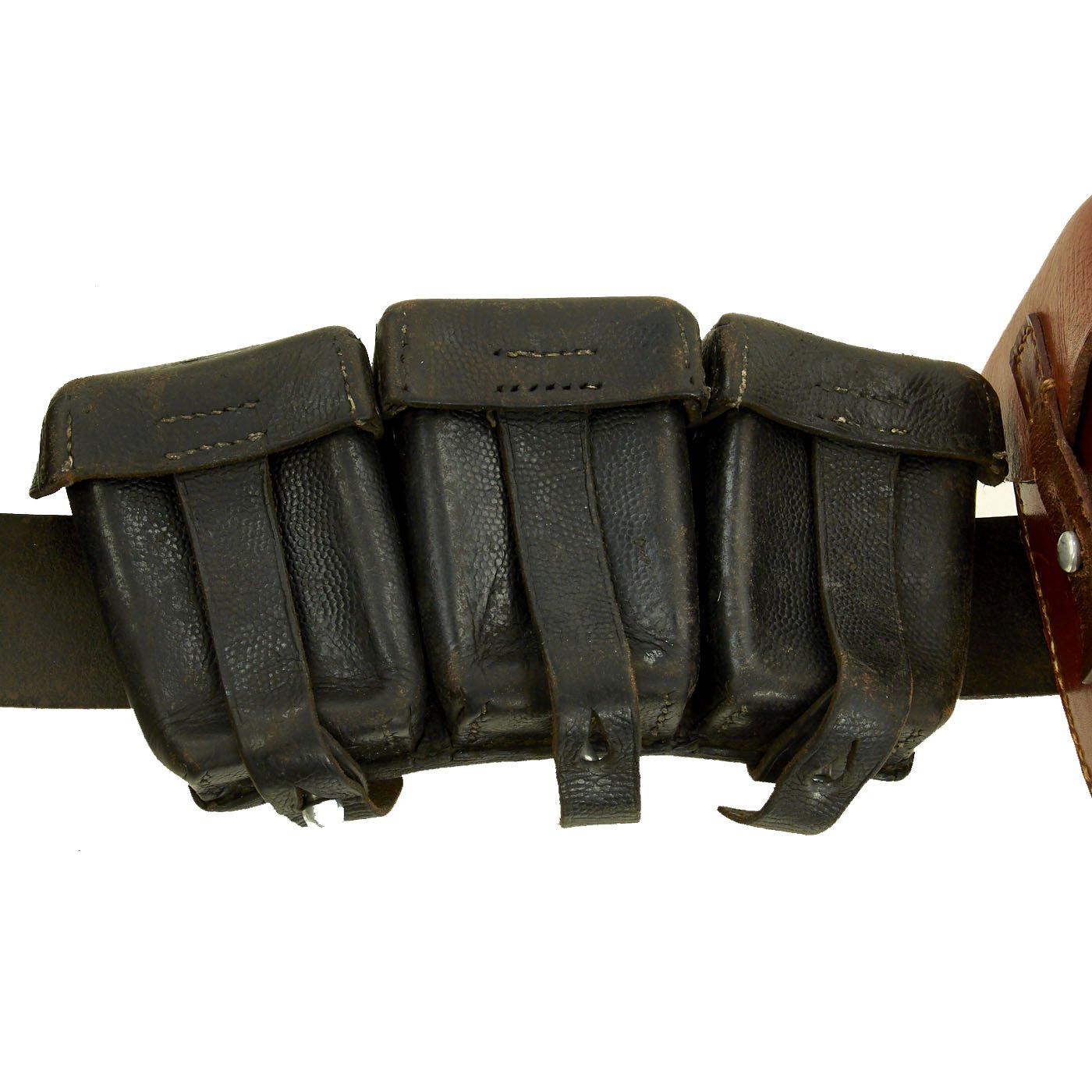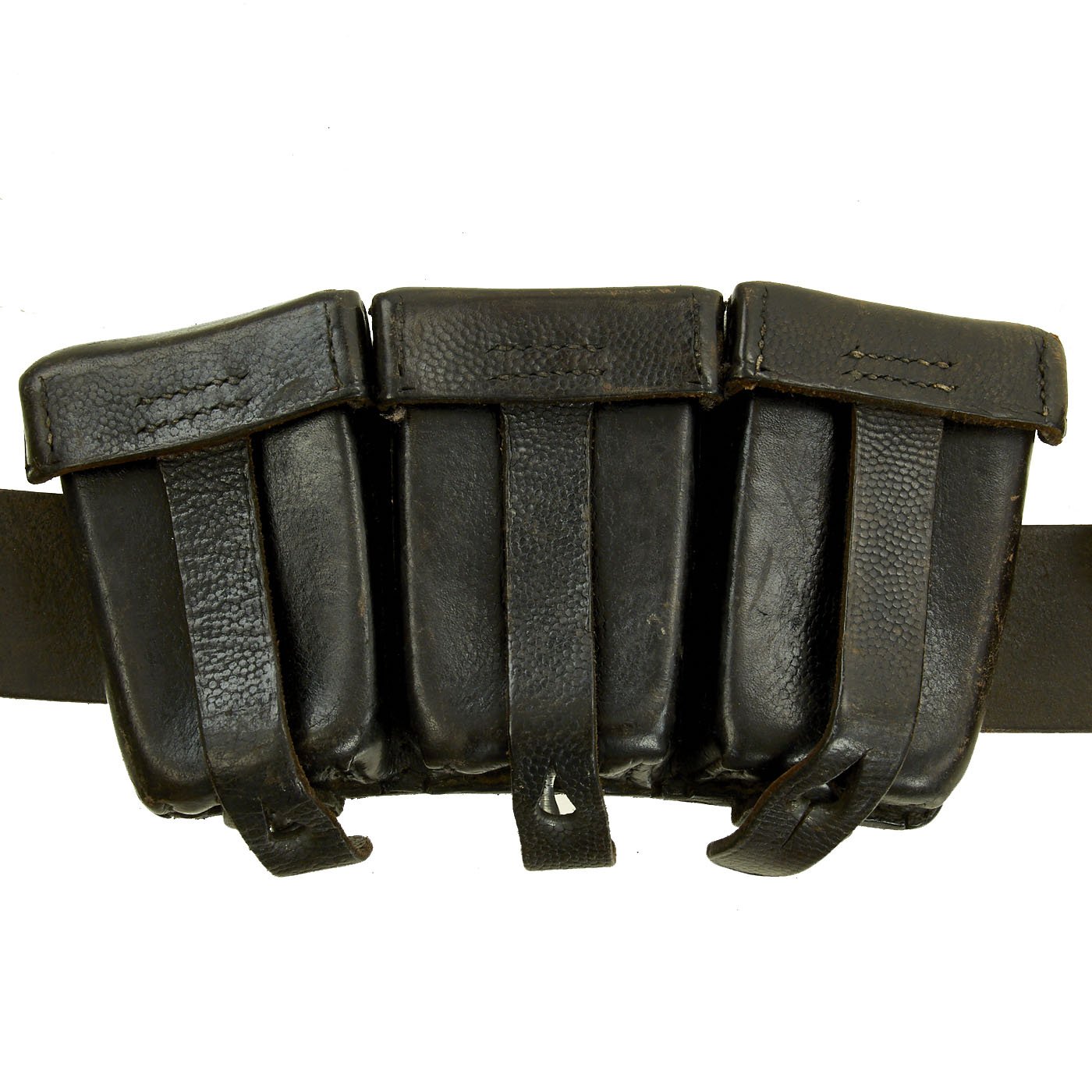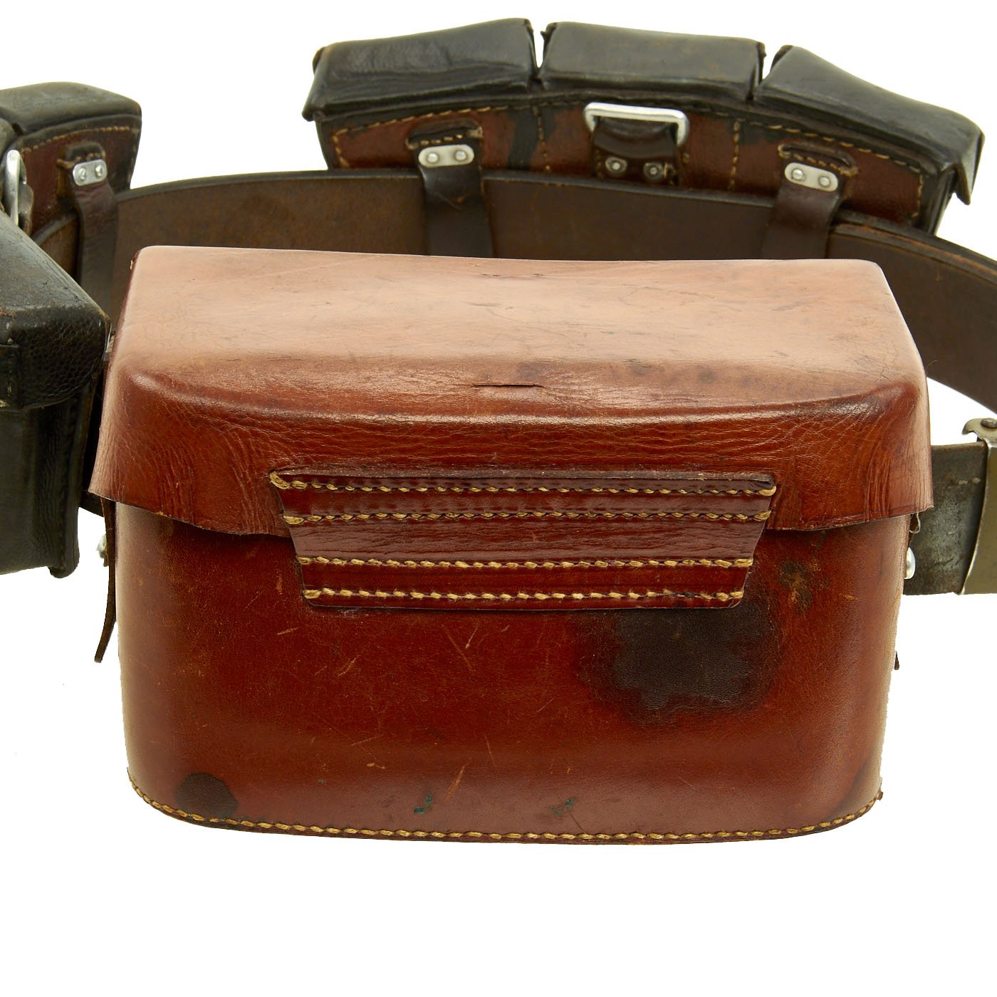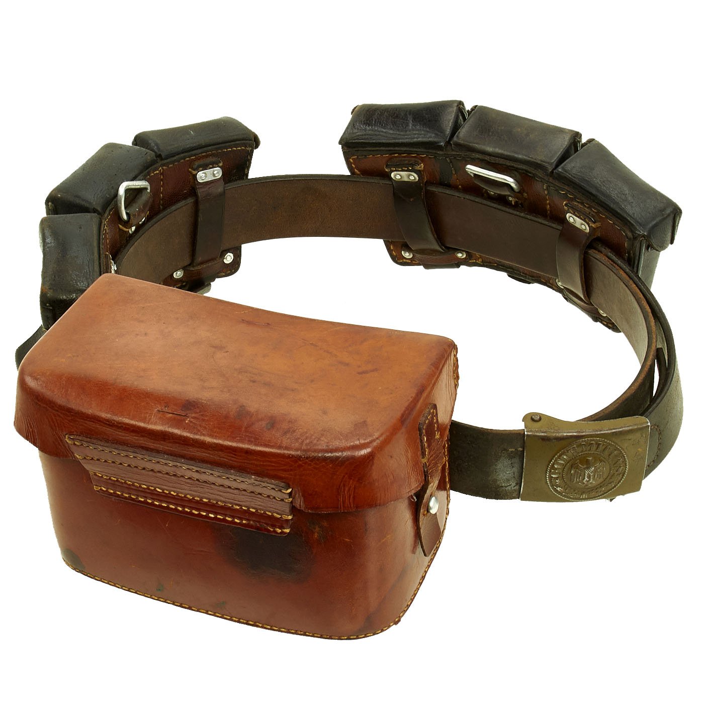 Original Item: Only One Set Available. This is a very nice WWII German Wehrmacht Heer (Army) field gear set, consisting of an original issue steel belt and buckle, two 98K triple ammo pouches, and a very nice Luftschutz Sanitätstasche (Air raid medical bag). All items are German marked and dated, and really do make a great set.