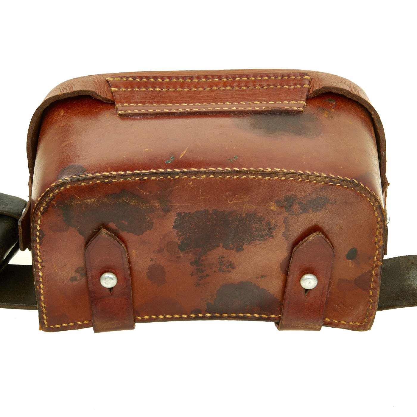 Secured around the back of the belt is the Luftschutz Medical case, which measures about 7 1/2" x 4" x 4 1/2", and is maker marked and dated on the back between the belt loops: