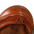 It is decorated with a well detailed silvered stamped aluminized zinc eagle insignia on the peak and and an open silver cast aluminum wreath surrounding a plated metal tri-color cockade on the band. The wreath and cockade are still mostly bright, however the eagle has definitely lost much of the aluminized coating, which has allowed it to oxidize. The cockade still retains the bright red felt center inlay. The vulcanfibre visor has a smooth black leather-look upper, exhibiting light wear along the edge, as well as overall checking and crazing in the gloss black finish, which has had some areas flake away. The underside is checkered brown, and shows light staining from use.