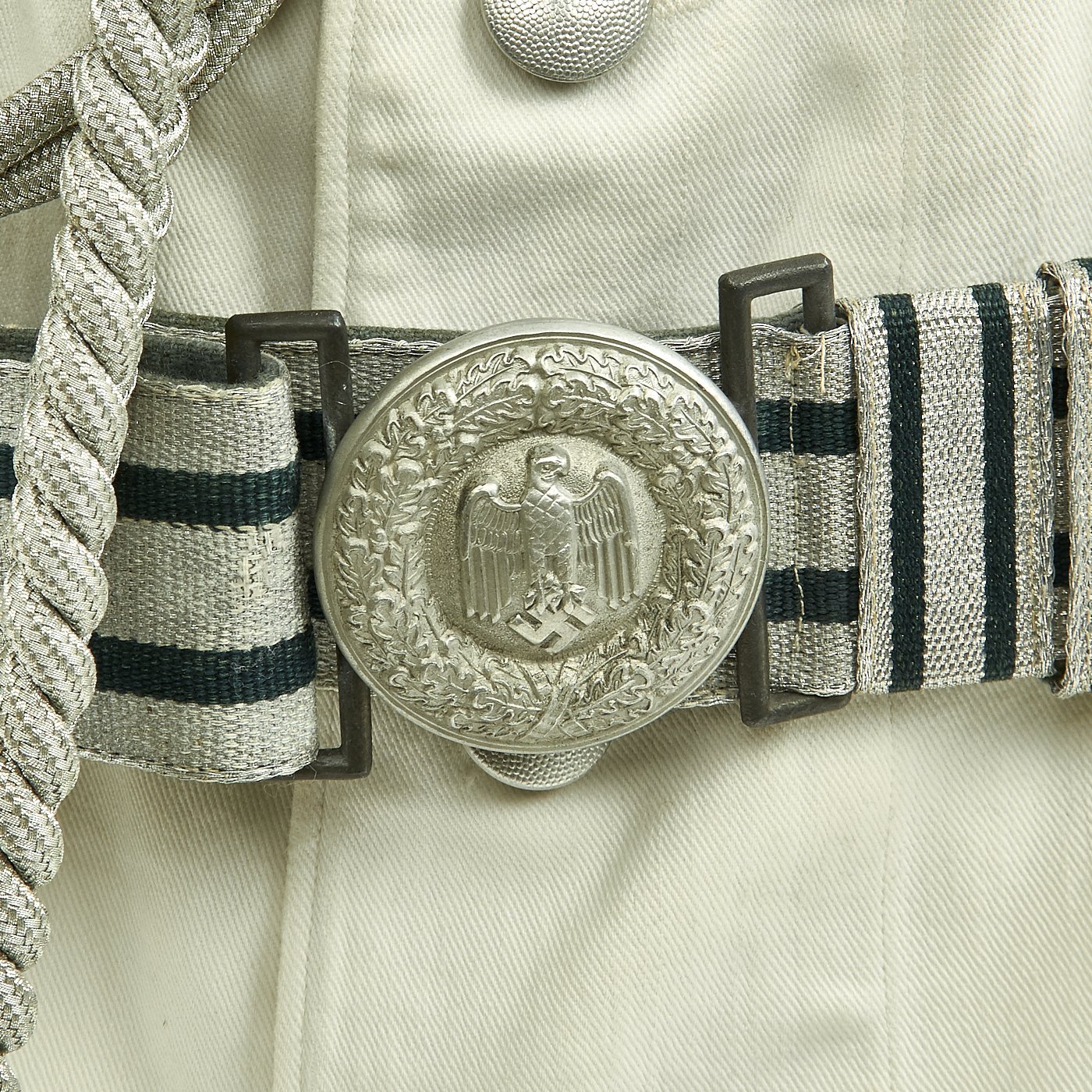 Also included is a German WW2 Heer Officer’s Brocade Belt & Buckle (Feldbinde und Feldbindenschloß für Offizier), offered in near mint condition, with very few signs of use, likely only worn on a handful of occasions. Officers were authorized to wear the brocade belt with the parade dress uniform, when reporting to a new unit, with the service dress uniform when full decorations were ordered, at formal occasions and with the formal dress uniform at ceremonial occasions.