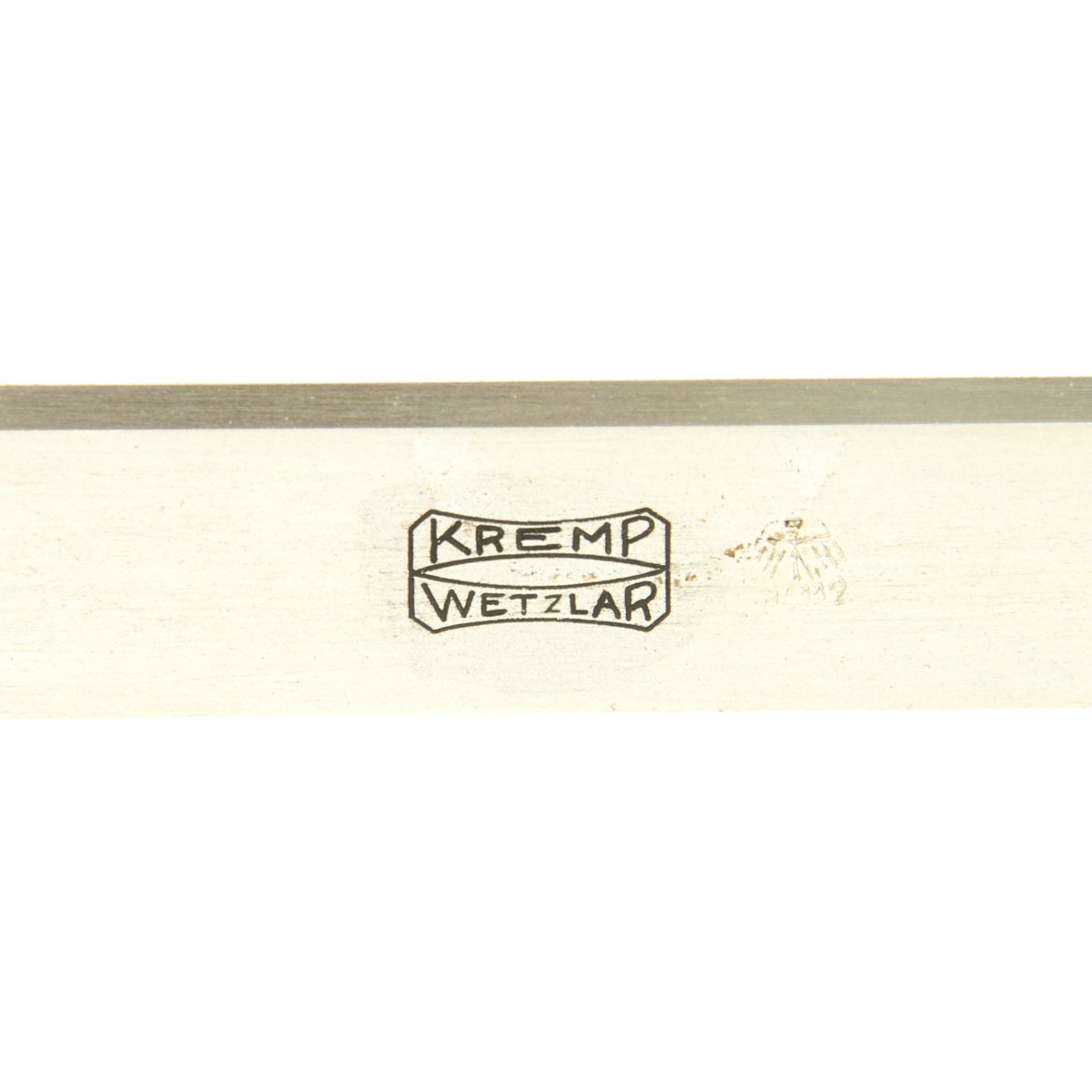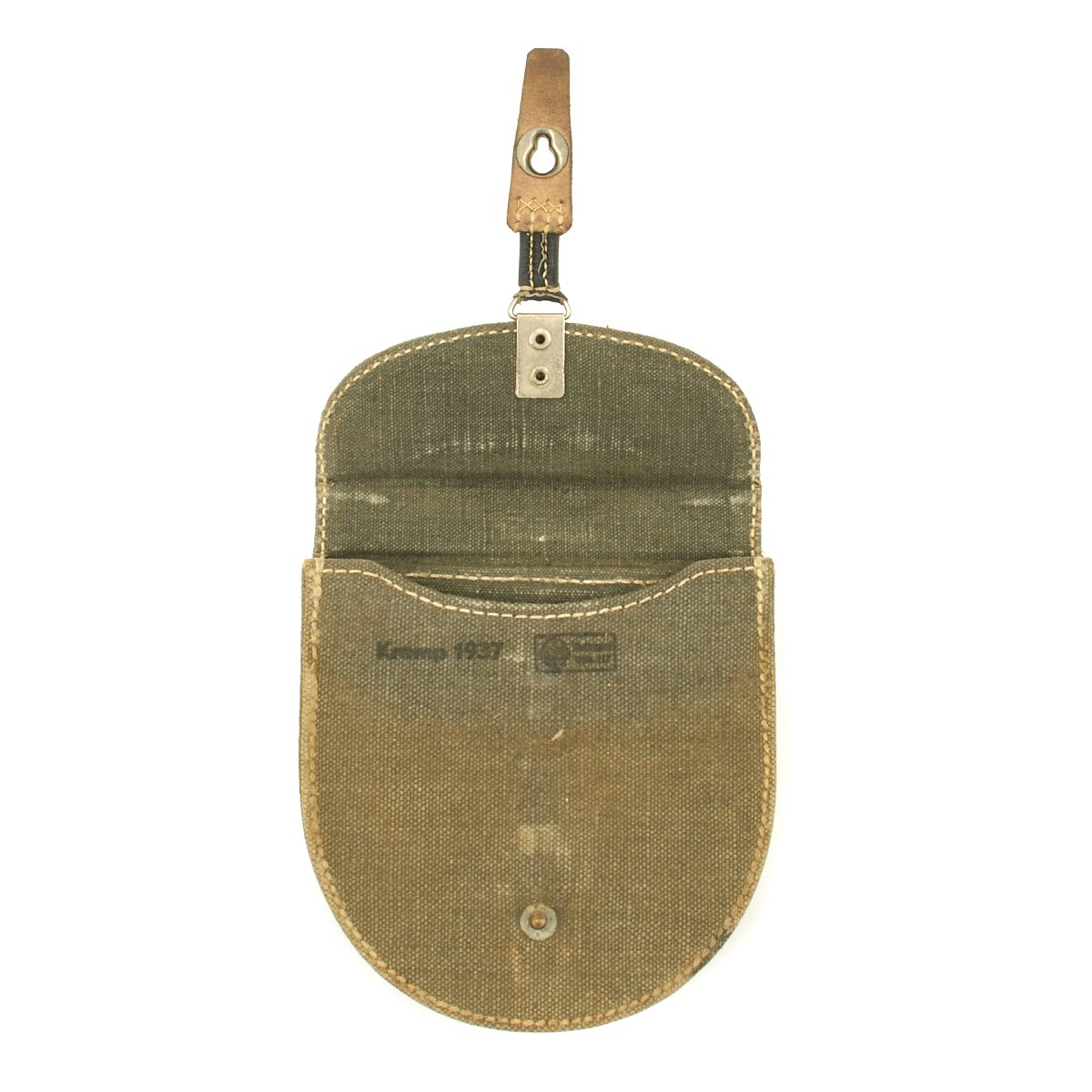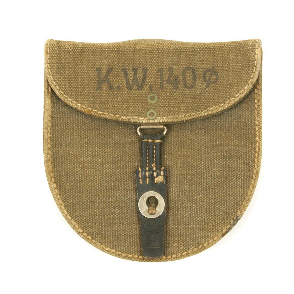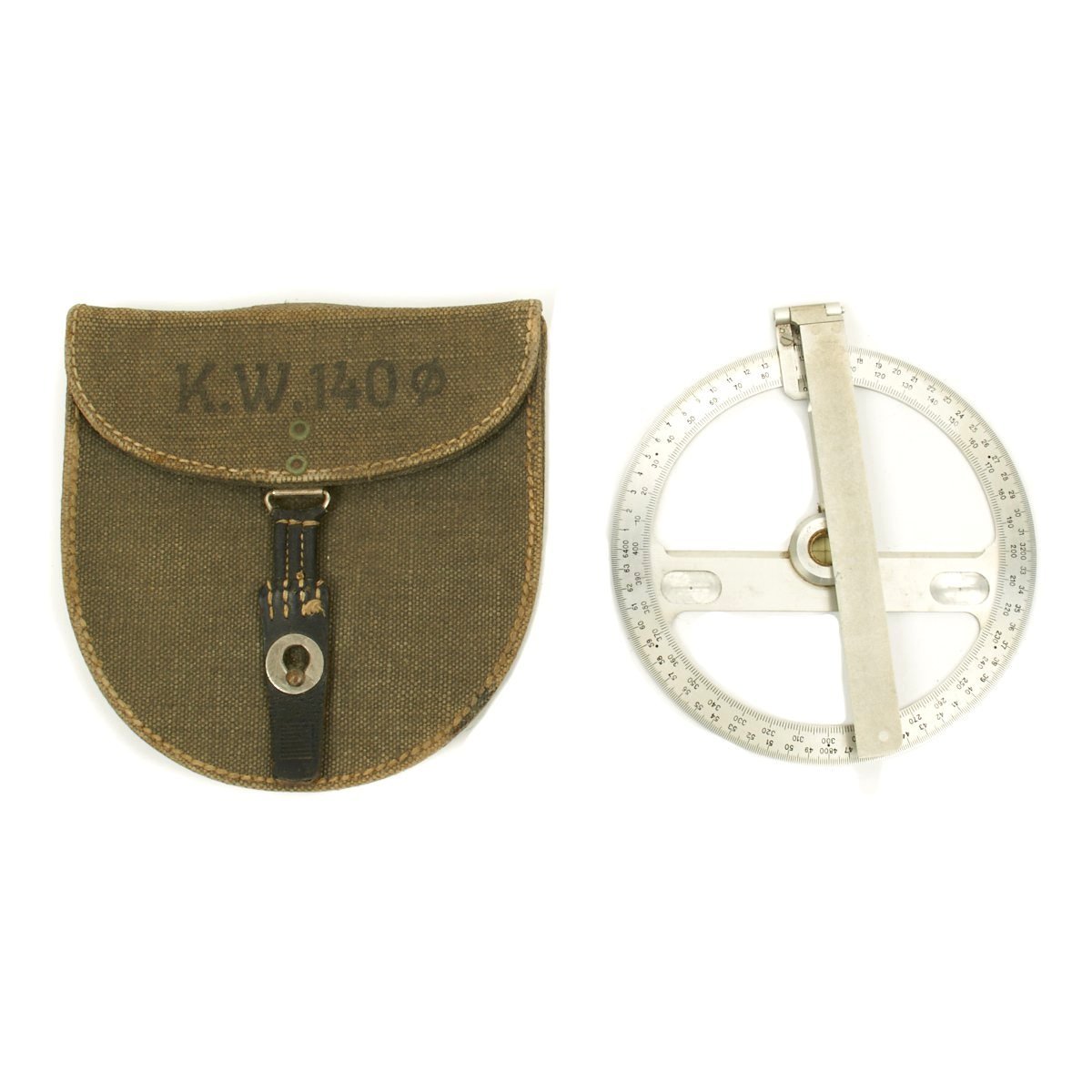 Original Items: Only One Set Available. This is a mint condition protractor for calculating shell trajectories marked on the front of the canvas case K.W.140.Q. On the inside of the flap it is ink stamped Kremp 1937 and the protractor is nicely marked Kremp Wetzlar.