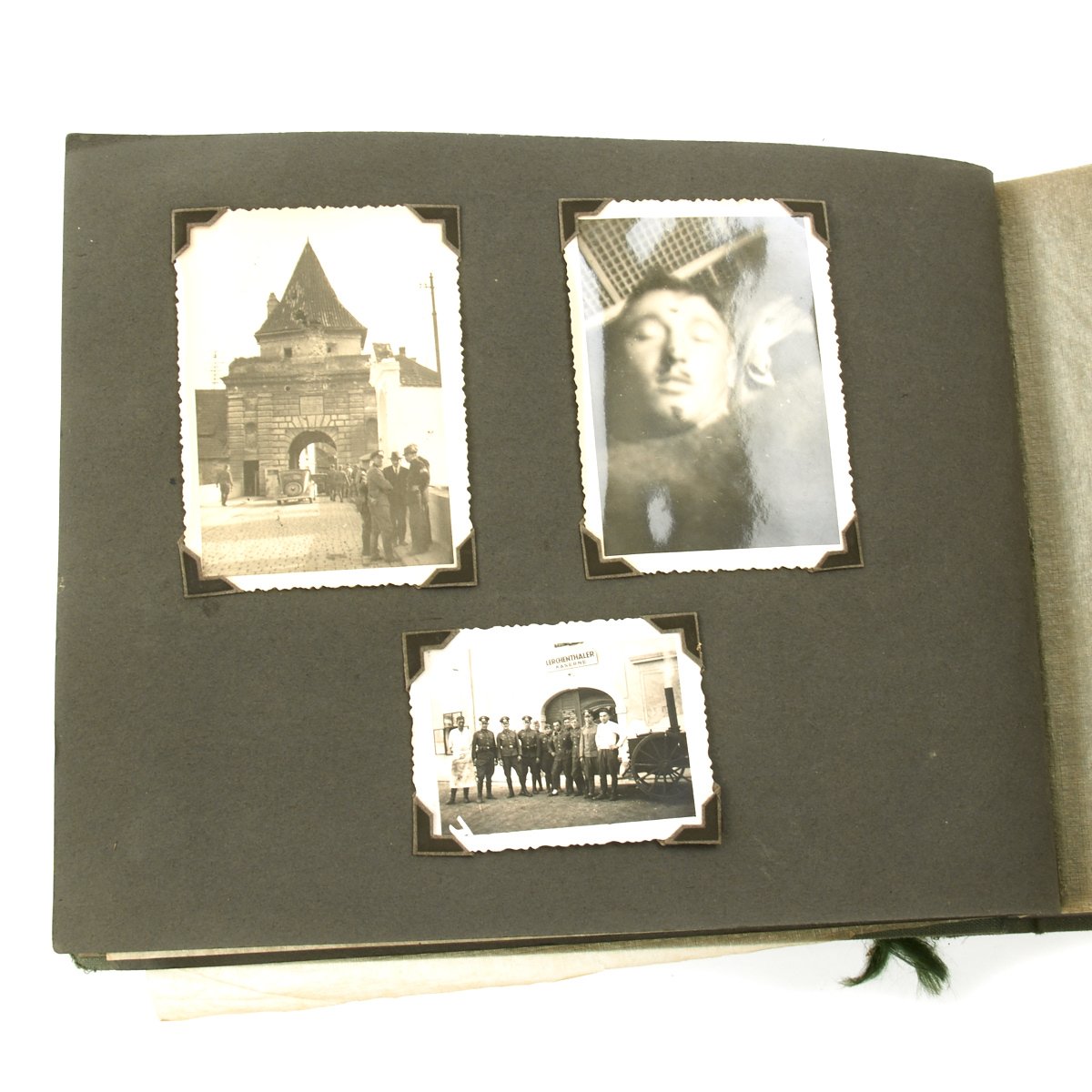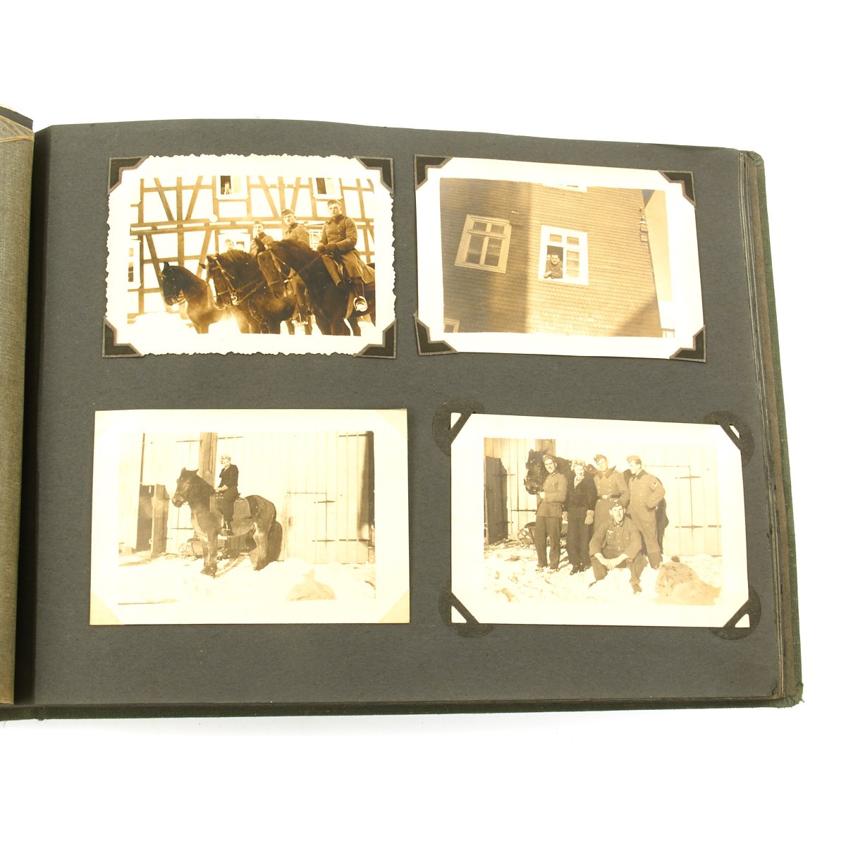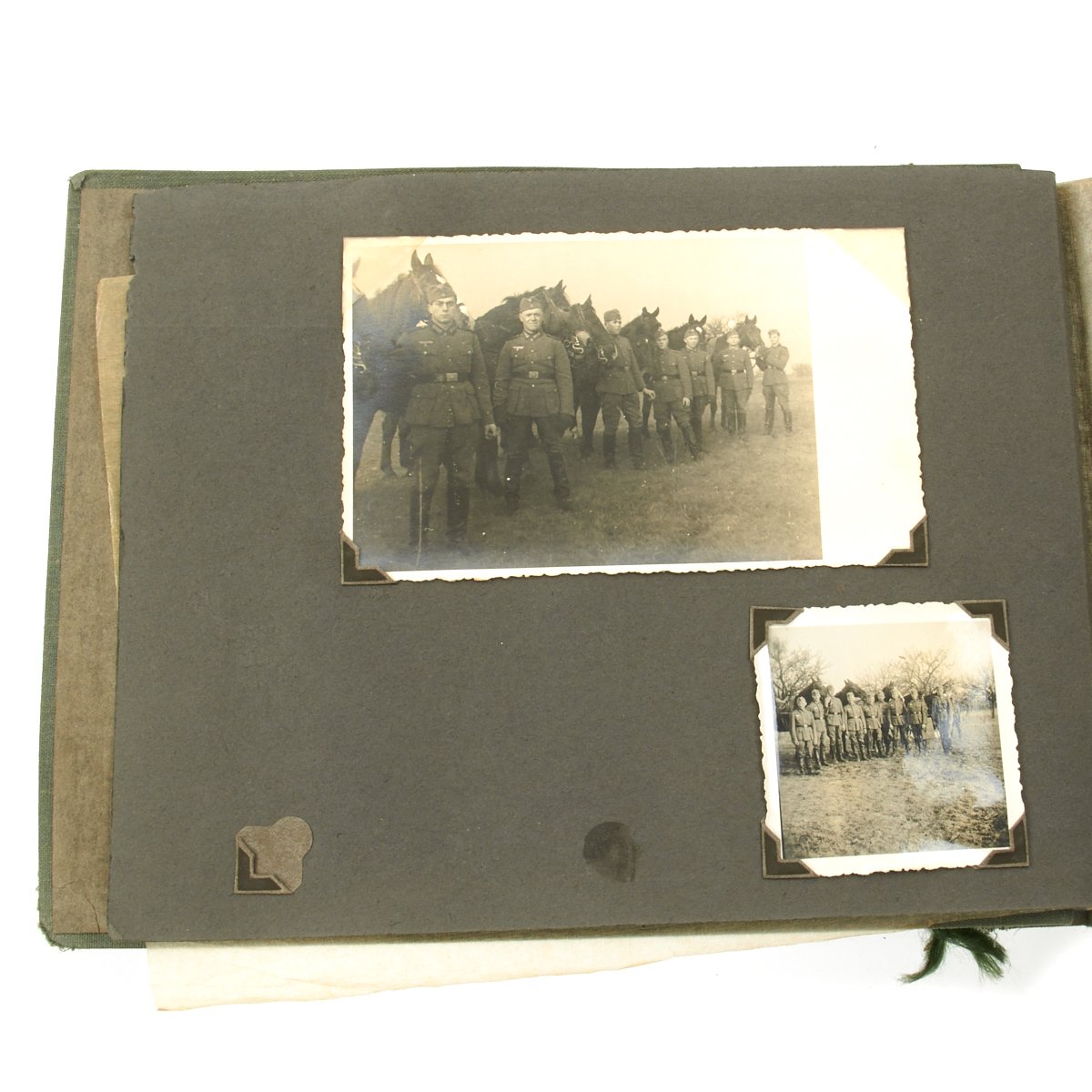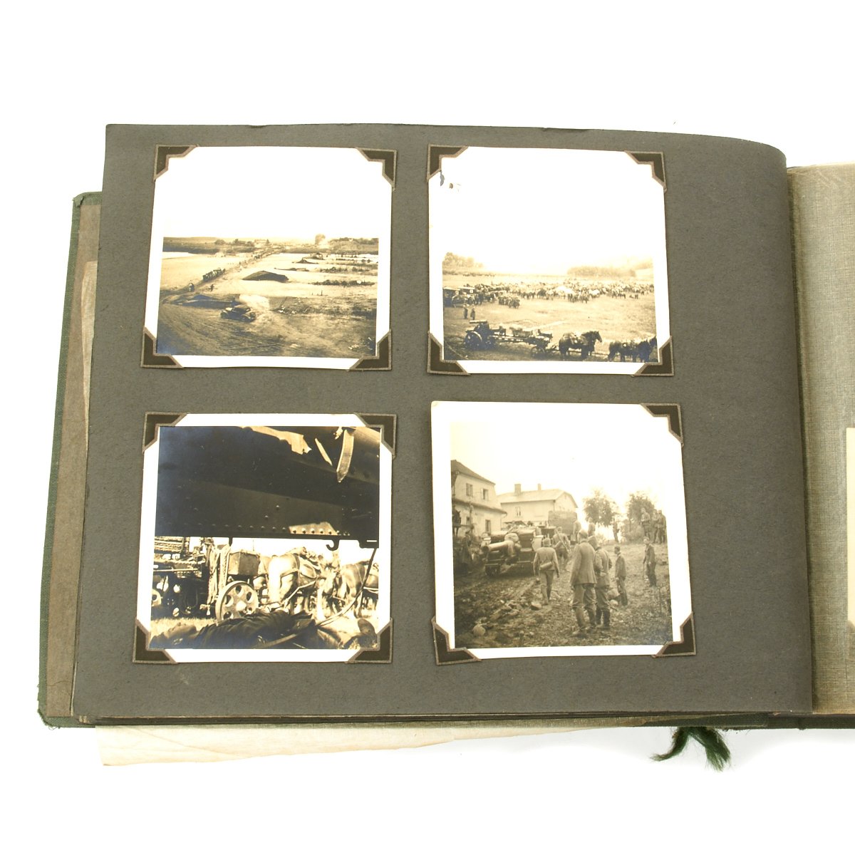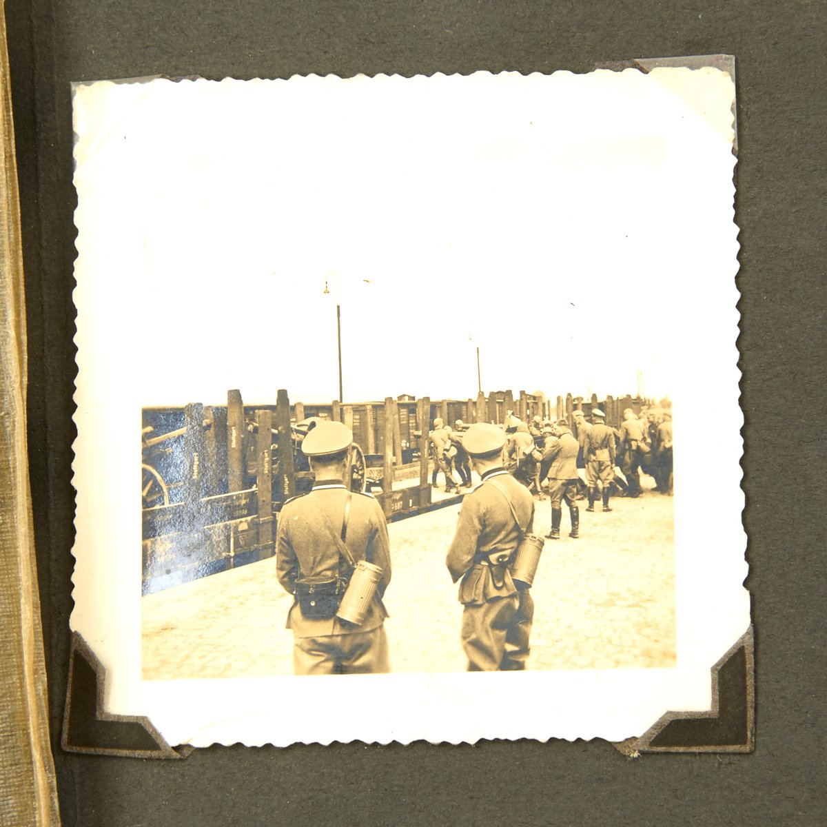 Original Item: One-of-a-kind-set. A wonderful personal photo album that measures approximately 10" x 7". Contains approximately 125 photos on 50 pages with onion skin partitions. Some pages have handwritten locations and other information such as FRANKFURT MAIN BONAMES and EINMARSCH SUDETENLAND Mit 4. A.R. 98. ENNZ, EINMARCH POLEN, KLEINER FEDLZUG FRANKREICH and many others. Front cover features silver embossed helmet and 7. Battr. An. Regt. 15 over Meine Dienstzeit (My Military Service). All photos are on period paper, have corner stays and appear to be totally original to the album. Some pages are missing photos. Overall a really nice hard to find photo album from the a German Artilley soldier during World War Two.