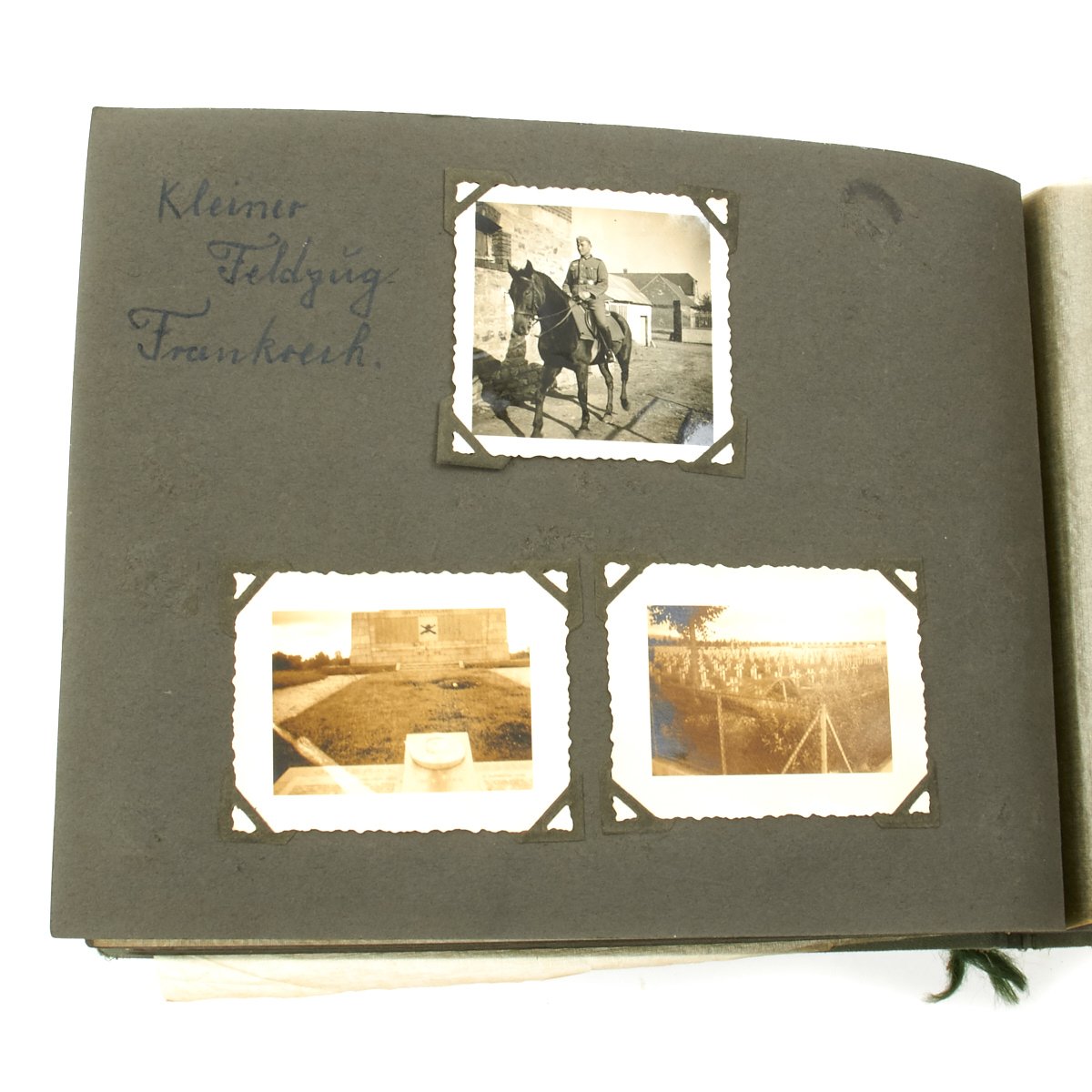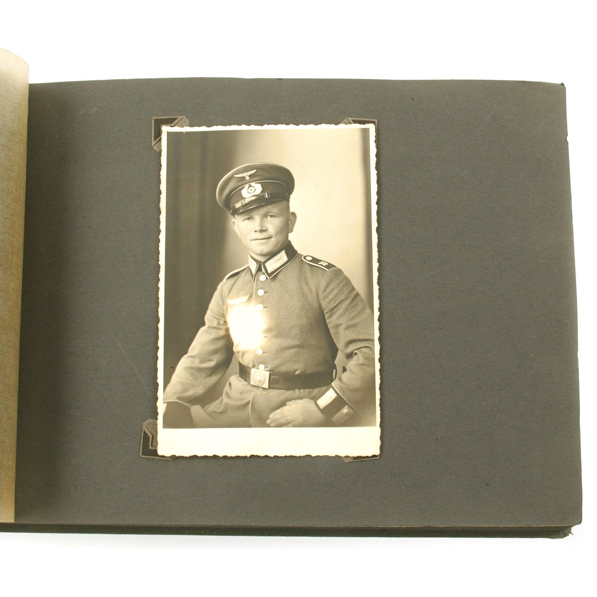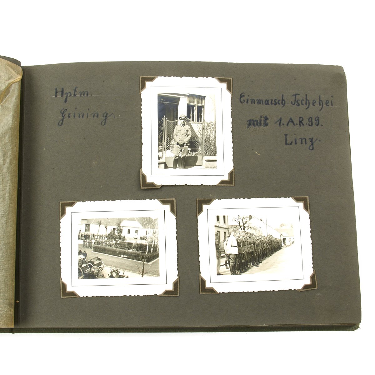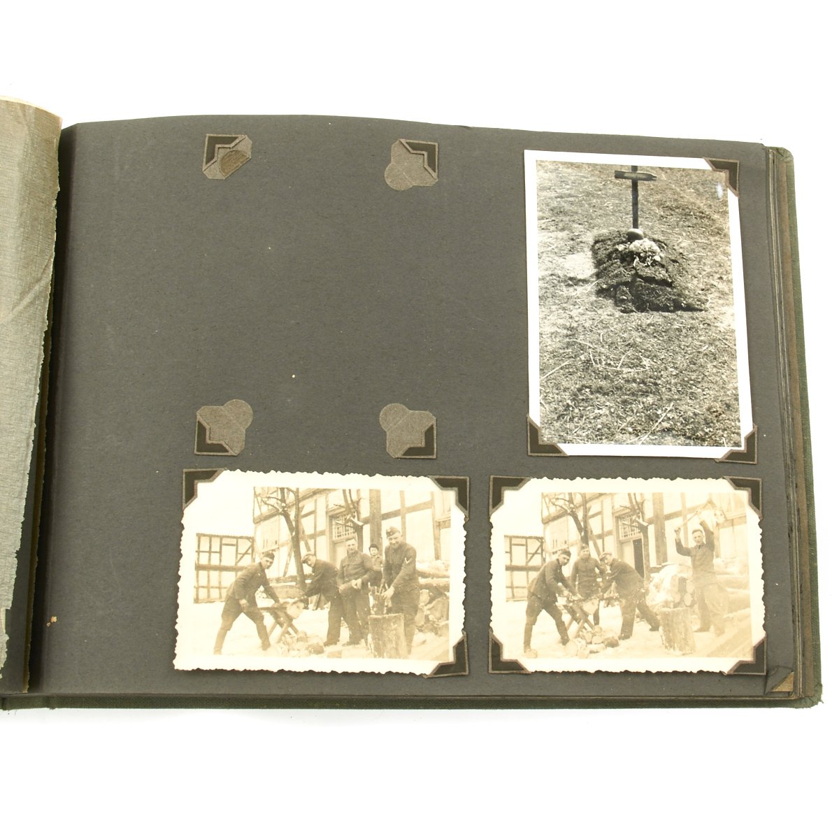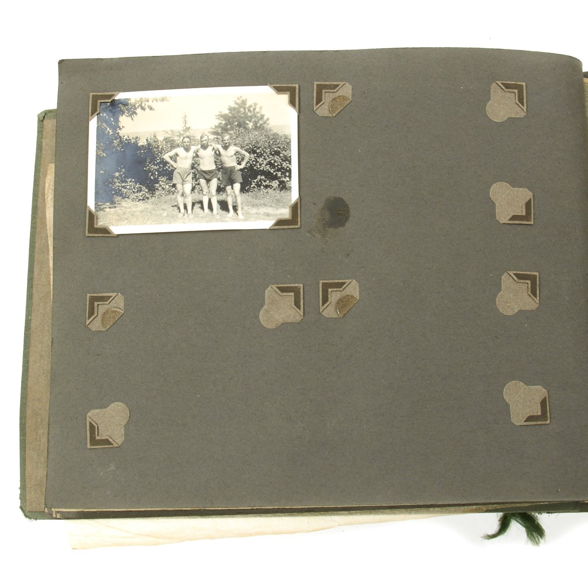 Original Item: One-of-a-kind-set. A wonderful personal photo album that measures approximately 10" x 7". Contains approximately 125 photos on 50 pages with onion skin partitions. Some pages have handwritten locations and other information such as FRANKFURT MAIN BONAMES and EINMARSCH SUDETENLAND Mit 4. A.R. 98. ENNZ, EINMARCH POLEN, KLEINER FEDLZUG FRANKREICH and many others. Front cover features silver embossed helmet and 7. Battr. An. Regt. 15 over Meine Dienstzeit (My Military Service). All photos are on period paper, have corner stays and appear to be totally original to the album. Some pages are missing photos. Overall a really nice hard to find photo album from the a German Artilley soldier during World War Two.