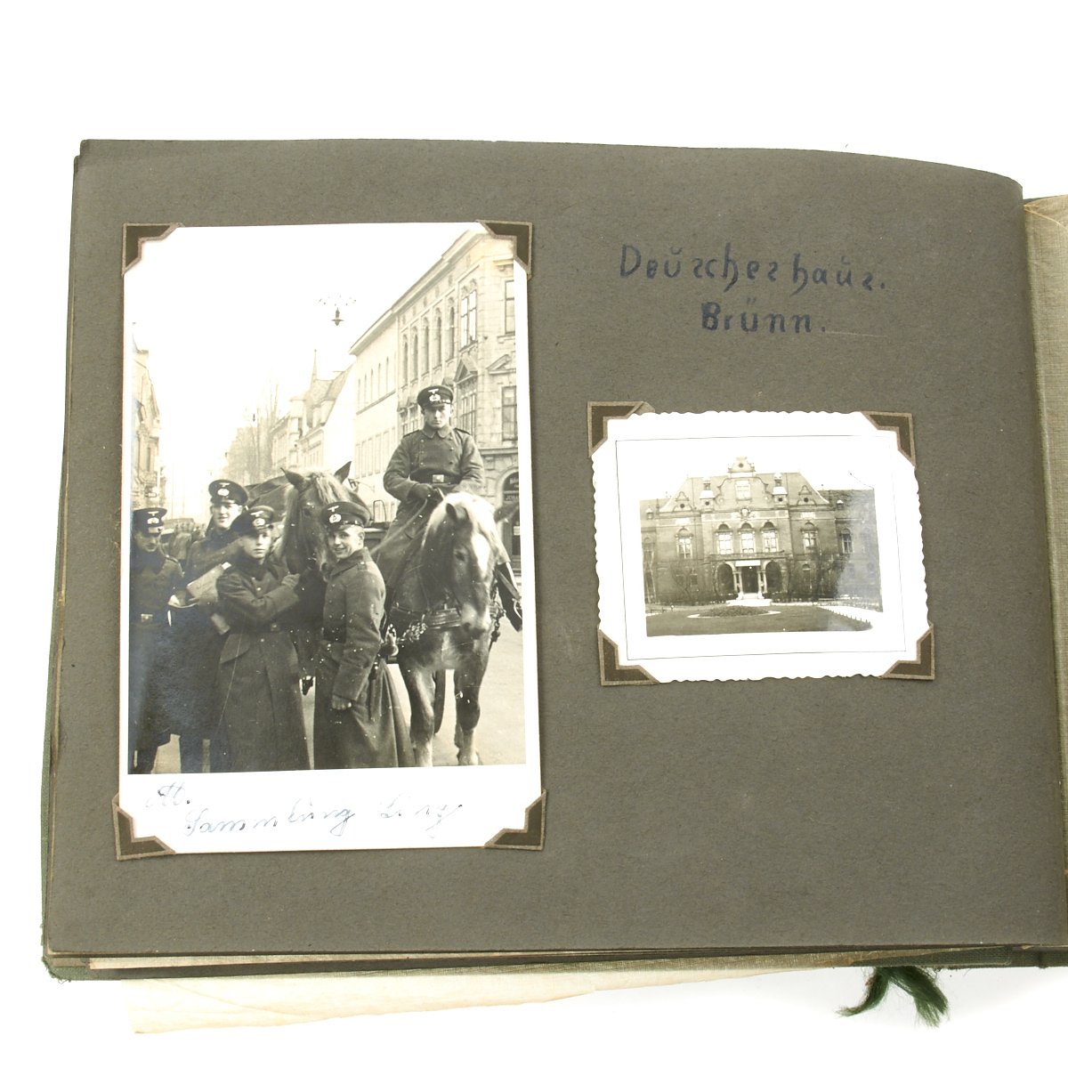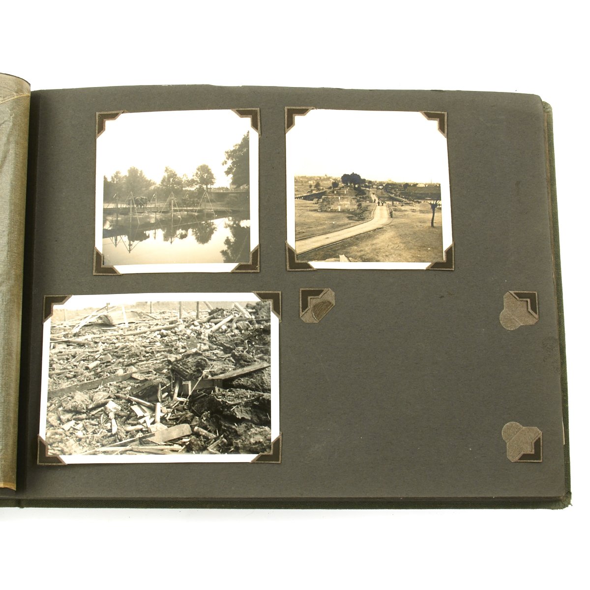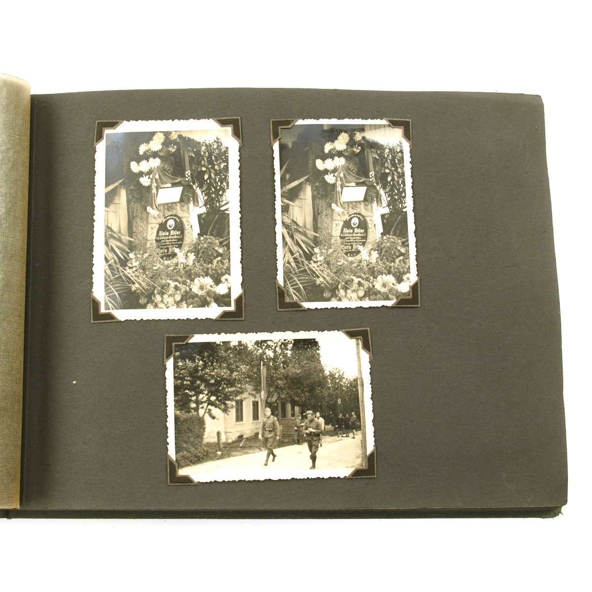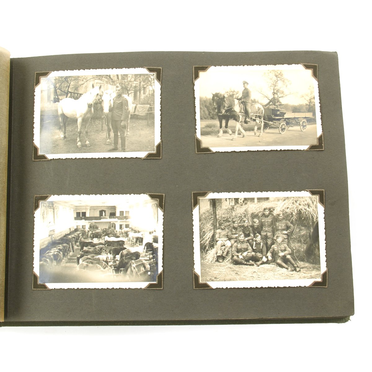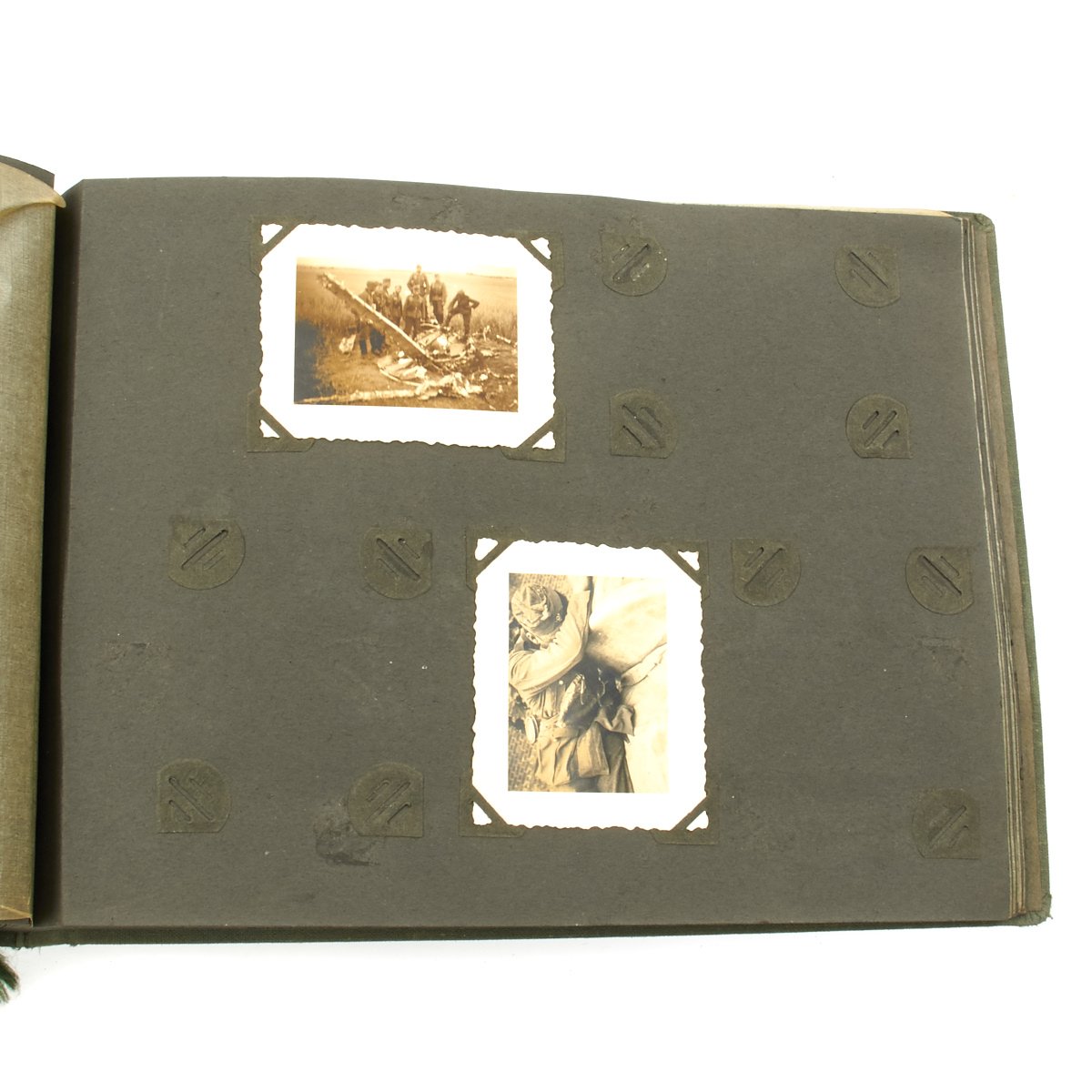 Original Item: One-of-a-kind-set. A wonderful personal photo album that measures approximately 10" x 7". Contains approximately 125 photos on 50 pages with onion skin partitions. Some pages have handwritten locations and other information such as FRANKFURT MAIN BONAMES and EINMARSCH SUDETENLAND Mit 4. A.R. 98. ENNZ, EINMARCH POLEN, KLEINER FEDLZUG FRANKREICH and many others. Front cover features silver embossed helmet and 7. Battr. An. Regt. 15 over Meine Dienstzeit (My Military Service). All photos are on period paper, have corner stays and appear to be totally original to the album. Some pages are missing photos. Overall a really nice hard to find photo album from the a German Artilley soldier during World War Two.