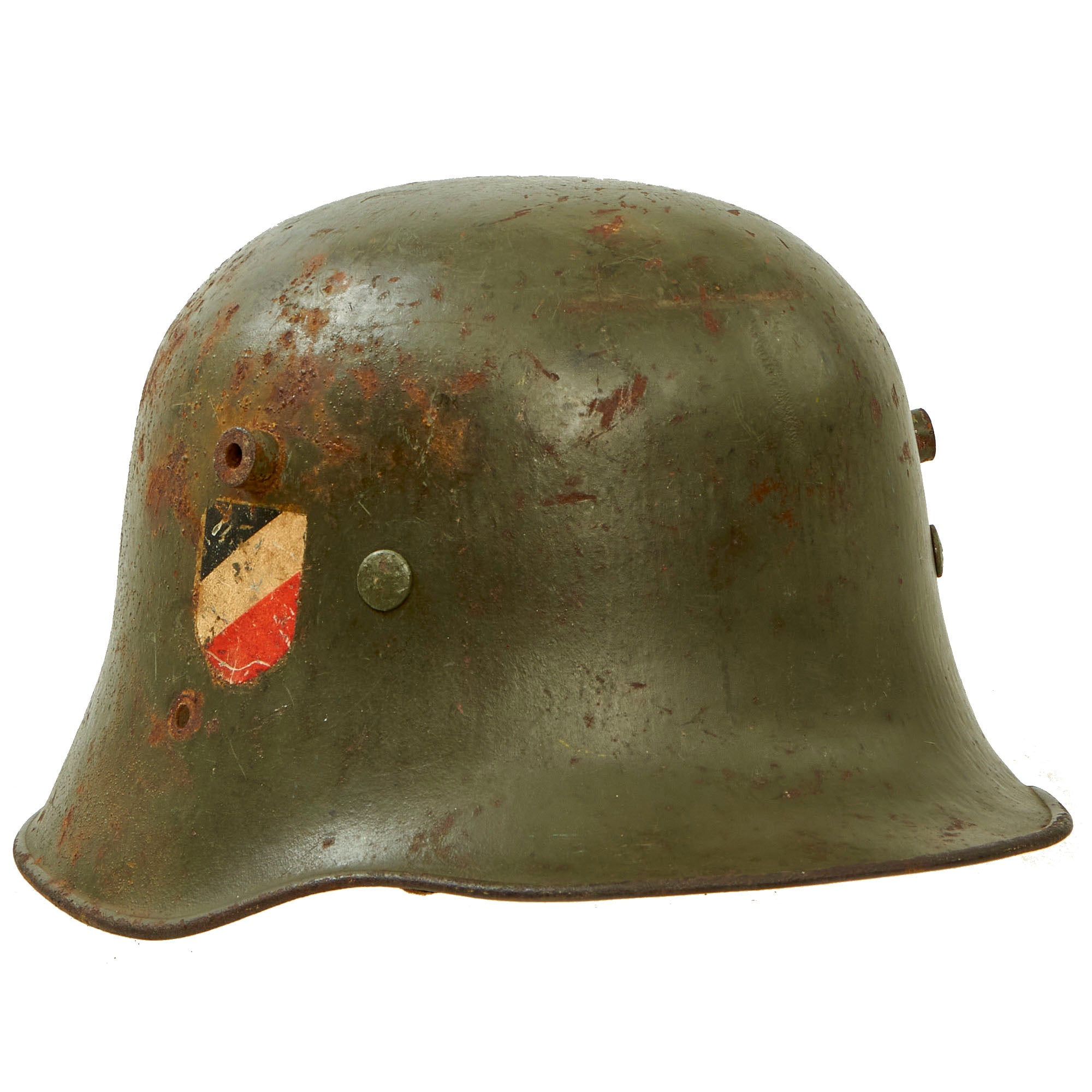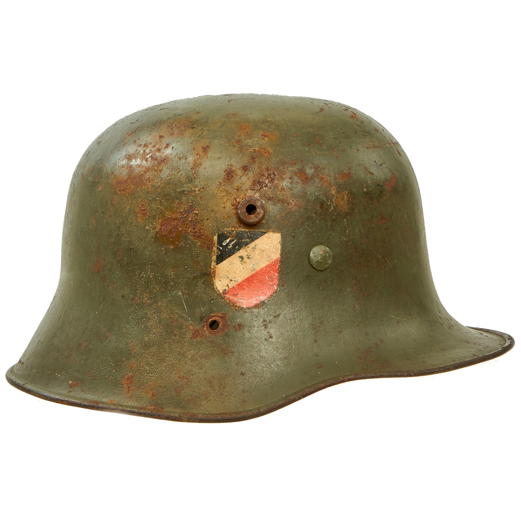 The first "modern" steel helmets were introduced by the French army in early 1915 and were shortly followed by the British army later that year. With plans on the drawing board, experimental helmets in the field, ("Gaede" helmet), and some captured French and British helmets the German army began tests for their own steel helmet at the Kummersdorf Proving Grounds in November, and in the field in December 1915. An acceptable pattern was developed and approved and production began at Eisen-und Hüttenwerke, AG Thale/Harz, in the spring of 1916. These first modern M16 helmets evolved into the M18 helmets by the end of WWI. At the end of WWI it is estimated that Germany had produced about 8,500,000 steel helmets. As a result of the restrictions placed on the German’s by the Treaty of Versailles, which dictated a standing army of only 100,000 personnel, there was an abundant surplus of these helmets, and though they saw widespread use by Freikorps personnel, there was still a stockpile controlled by the Reichswehr.