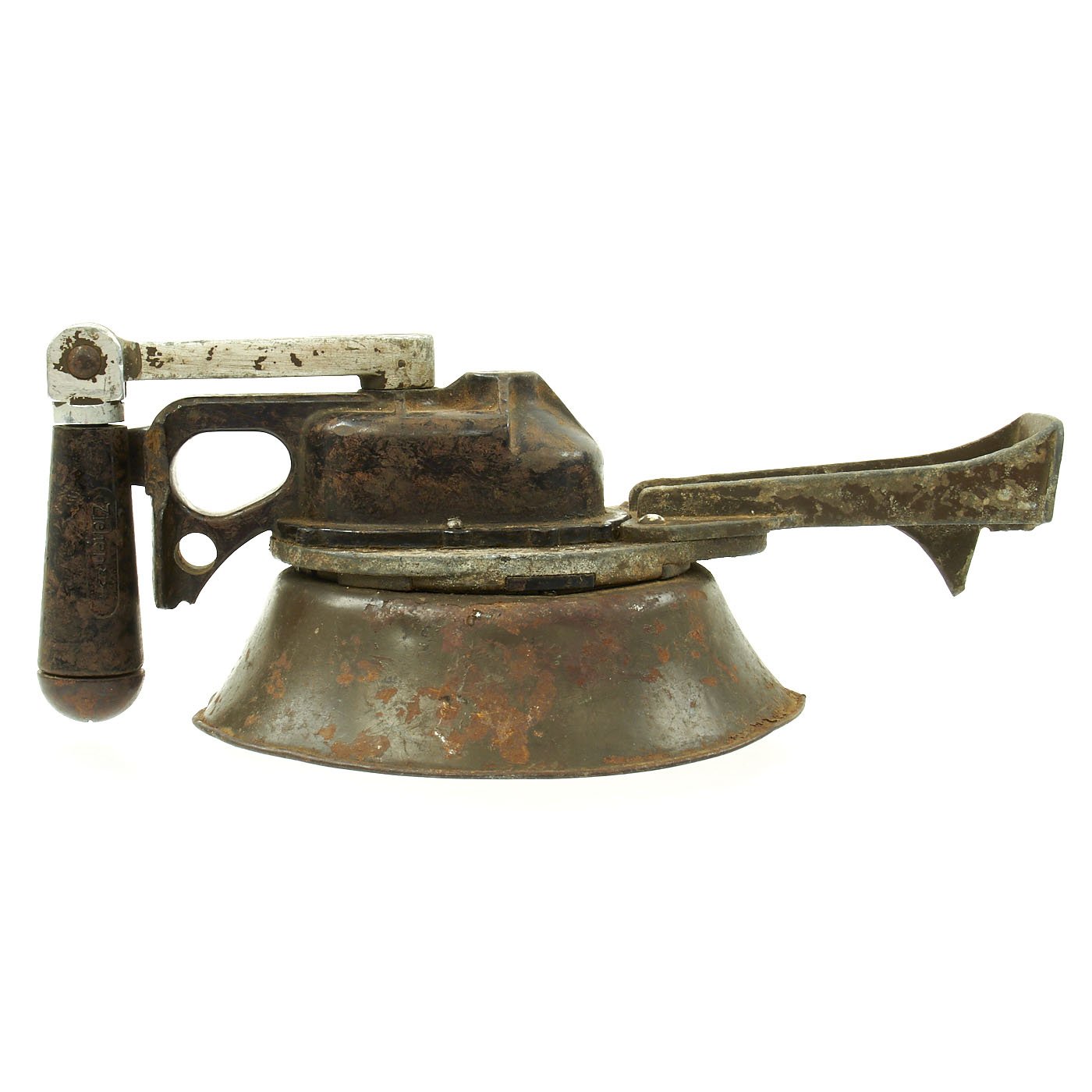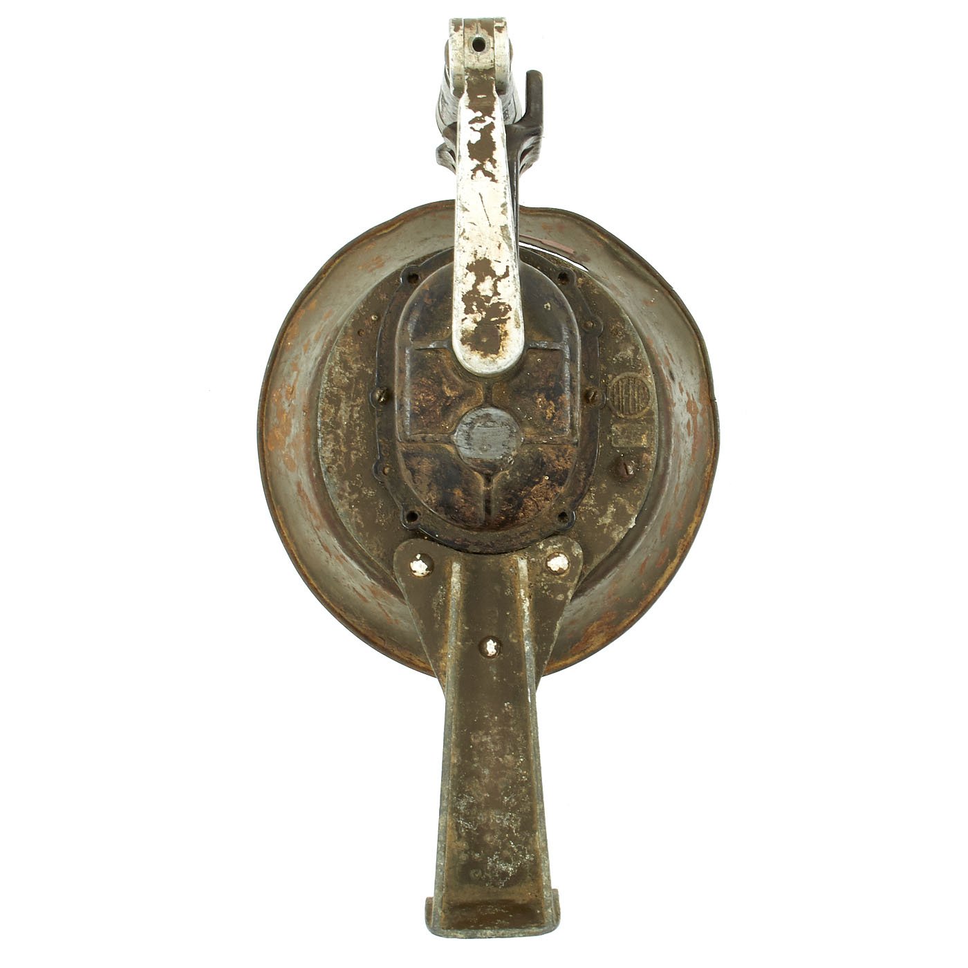 The reverse is maker marked HELIN in a circle, and below this is serial number 30753, with a date below that appears to be 1944, however the last number is not entirely clear. The folding bakelite handle is marked Ziehen (Pull) next to an arrow. The bakelite parts are of the most desirable red/brown variety. This is a very rare hard to find piece offered in fully operational condition. The handle turns with some effort, and the siren is quite loud. Definitely a great addition to any WWII collection!