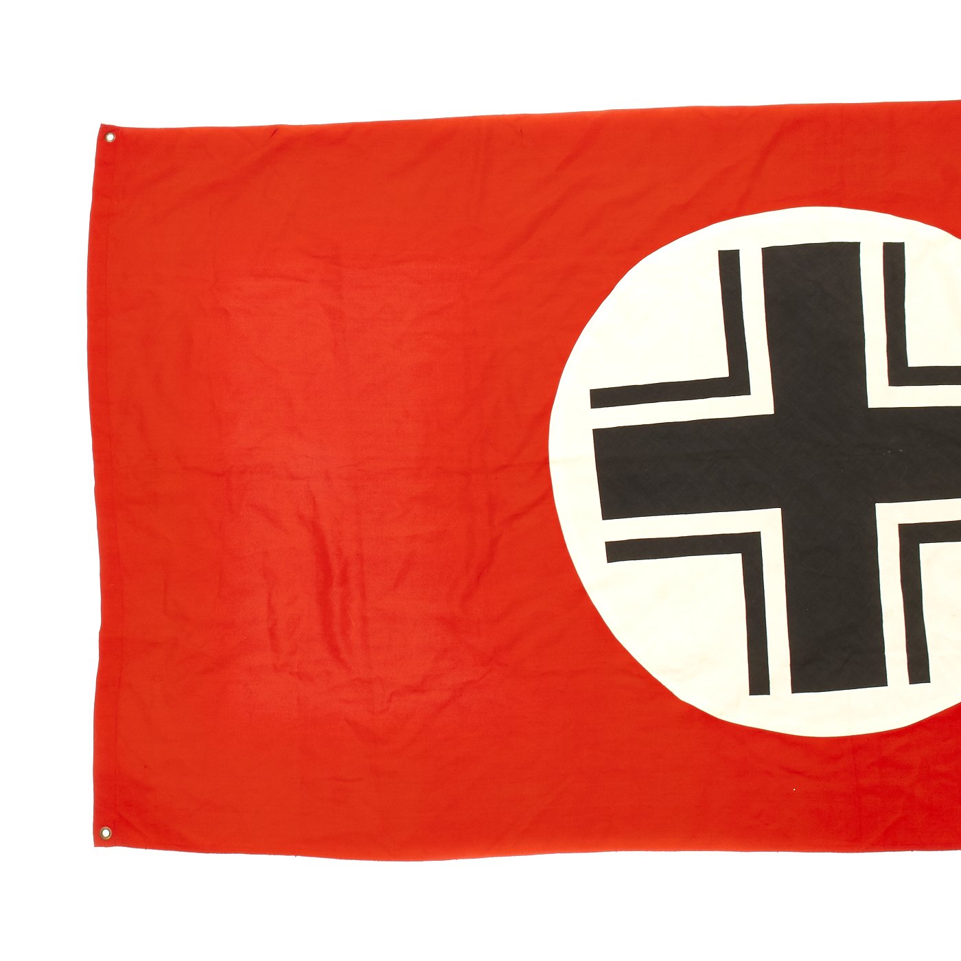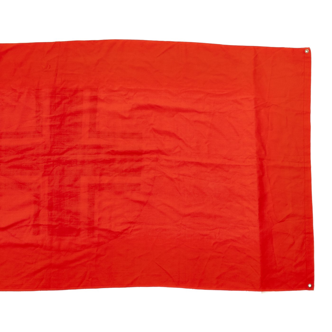 Original Item: Only One Available. This is a wonderful condition original German WWII Balkan Cross Panzer tank identification flag. It is in excellent condition and measures approximately 78" x 38" inches. Flag is constructed of cotton has four grommets (one in each corner) which were used to secure the flag to the back of the tank, facing the sky in order to prevent friendly fire from German aircraft. The flag is multi-piece construction with a Balkan cross on white background stitched onto the red base.