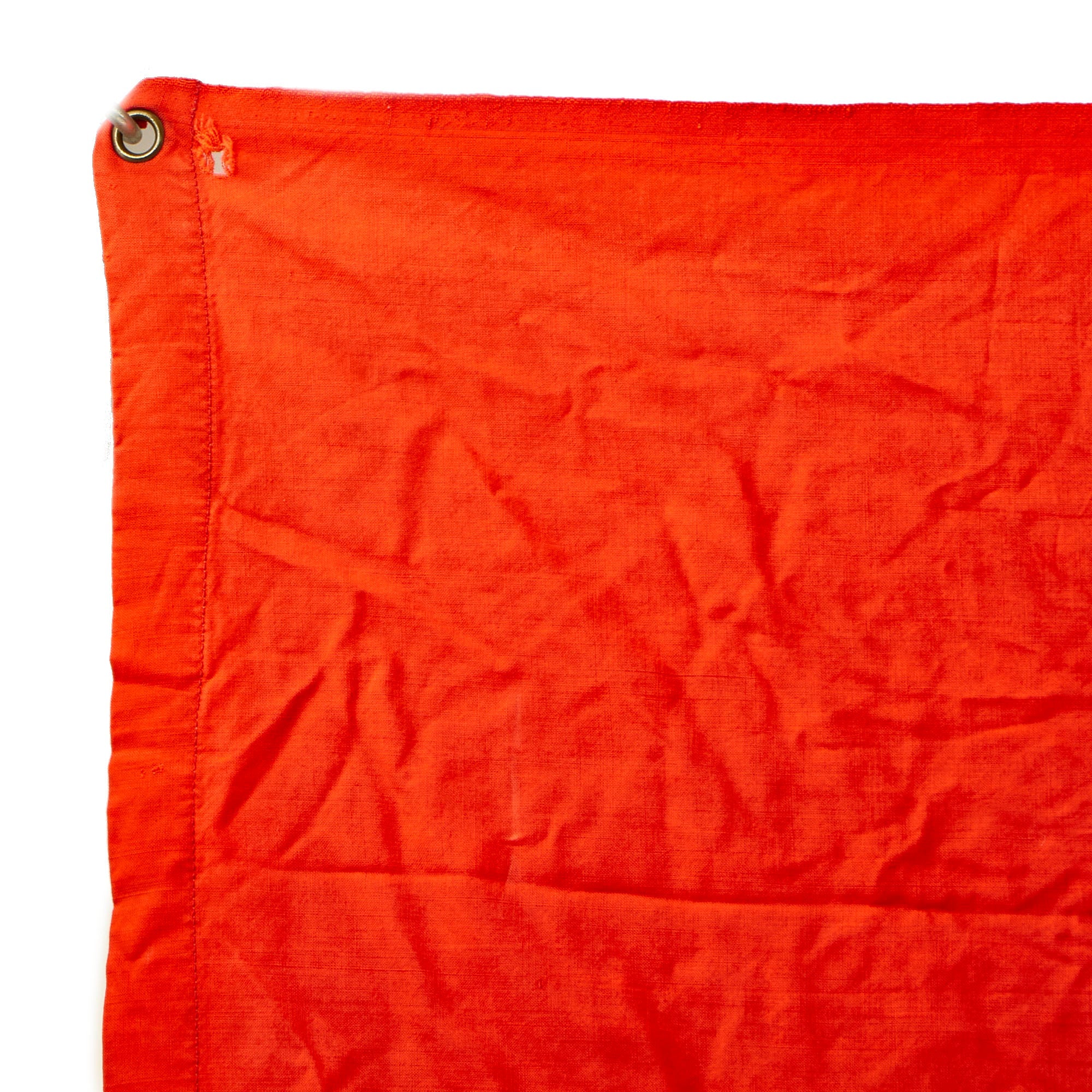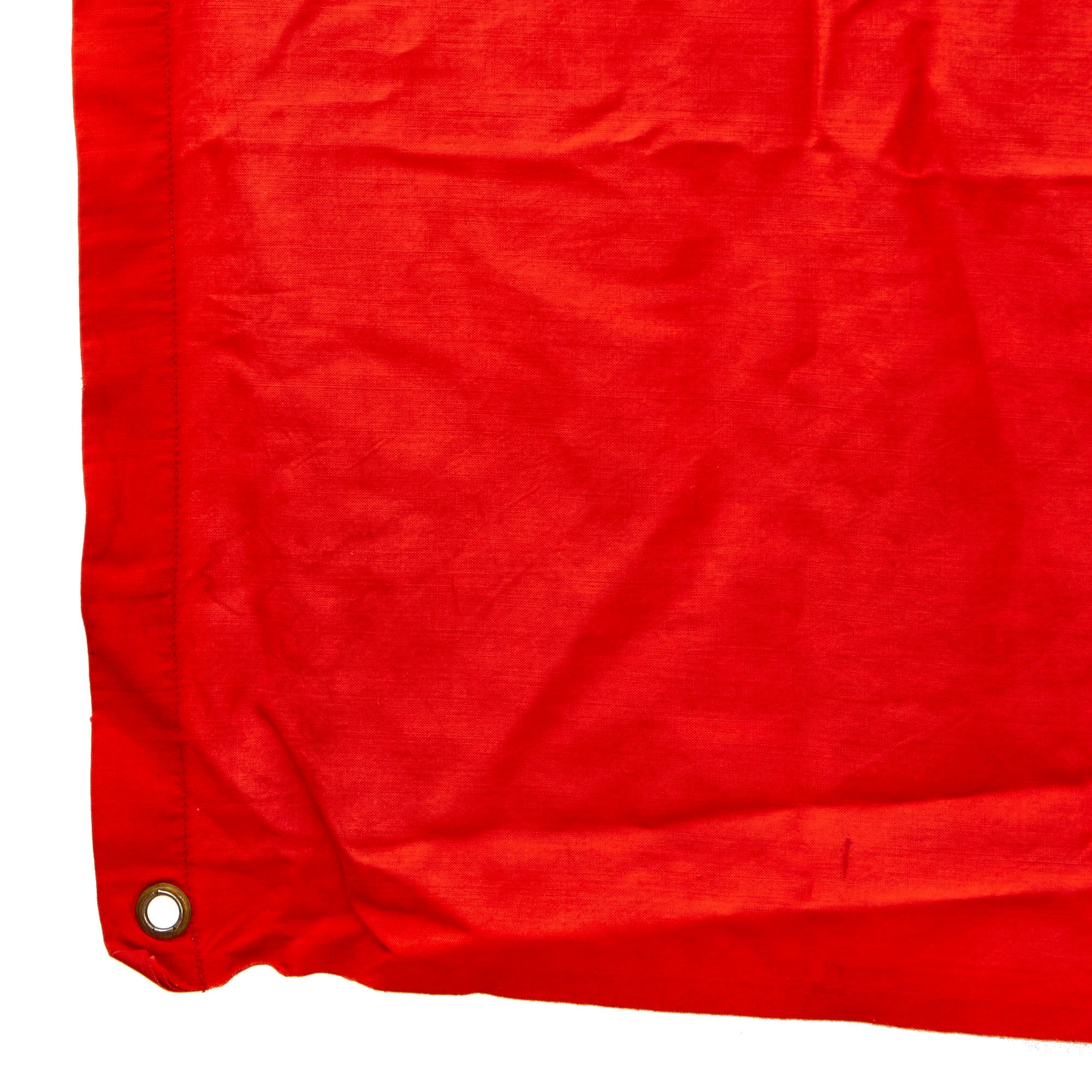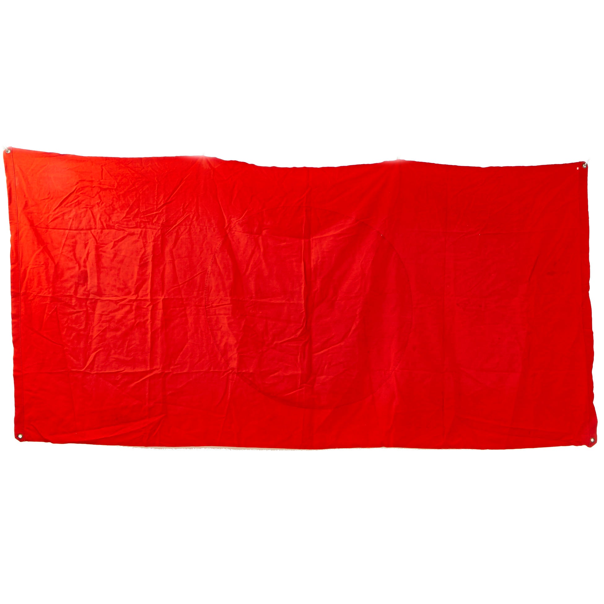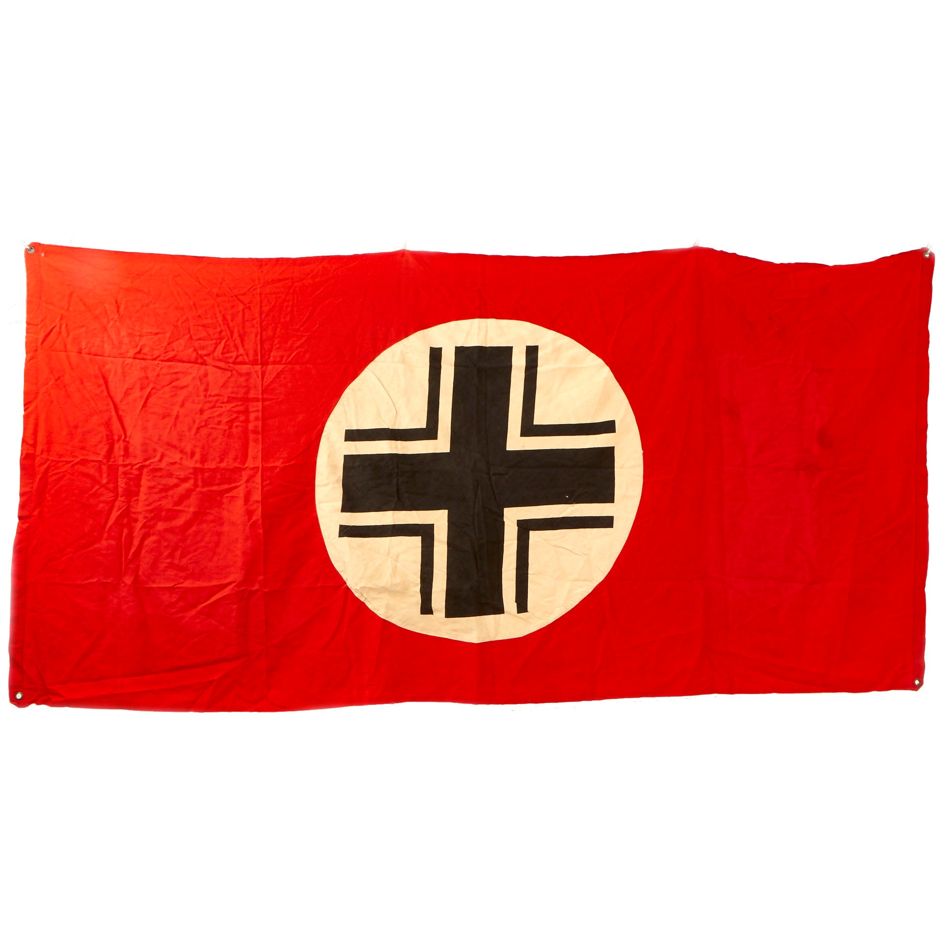 Original Item: Only One Available. This is a very nice condition original German WWII Balkenkreuz (Beam Cross) identification flag used for Panzer tanks and other vehicles. It is in lightly used condition and measures approximately 36" x 71" inches. Flag is constructed of cotton and has four brass plated steel grommets (one in each corner), which were used to secure the flag to the back of the vehicle, facing the sky in order to prevent friendly fire from German aircraft. The flag is a multi-piece construction with a Balkenkreuz (beam cross) dyed onto a white background stitched onto the red base.