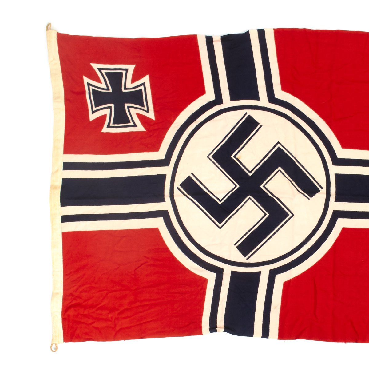 Original Item: Only One Available. Reichskriegsflagge (Imperial War Flag) was the official name of the war flag and war ensign used by the German armed forces from 1933 to 1945. Recently acquired from a veteran's estate this is without a doubt the most impressive battle flag of the German WW2 era, it measures 31.50" x 53 or 80cm x 135cm.