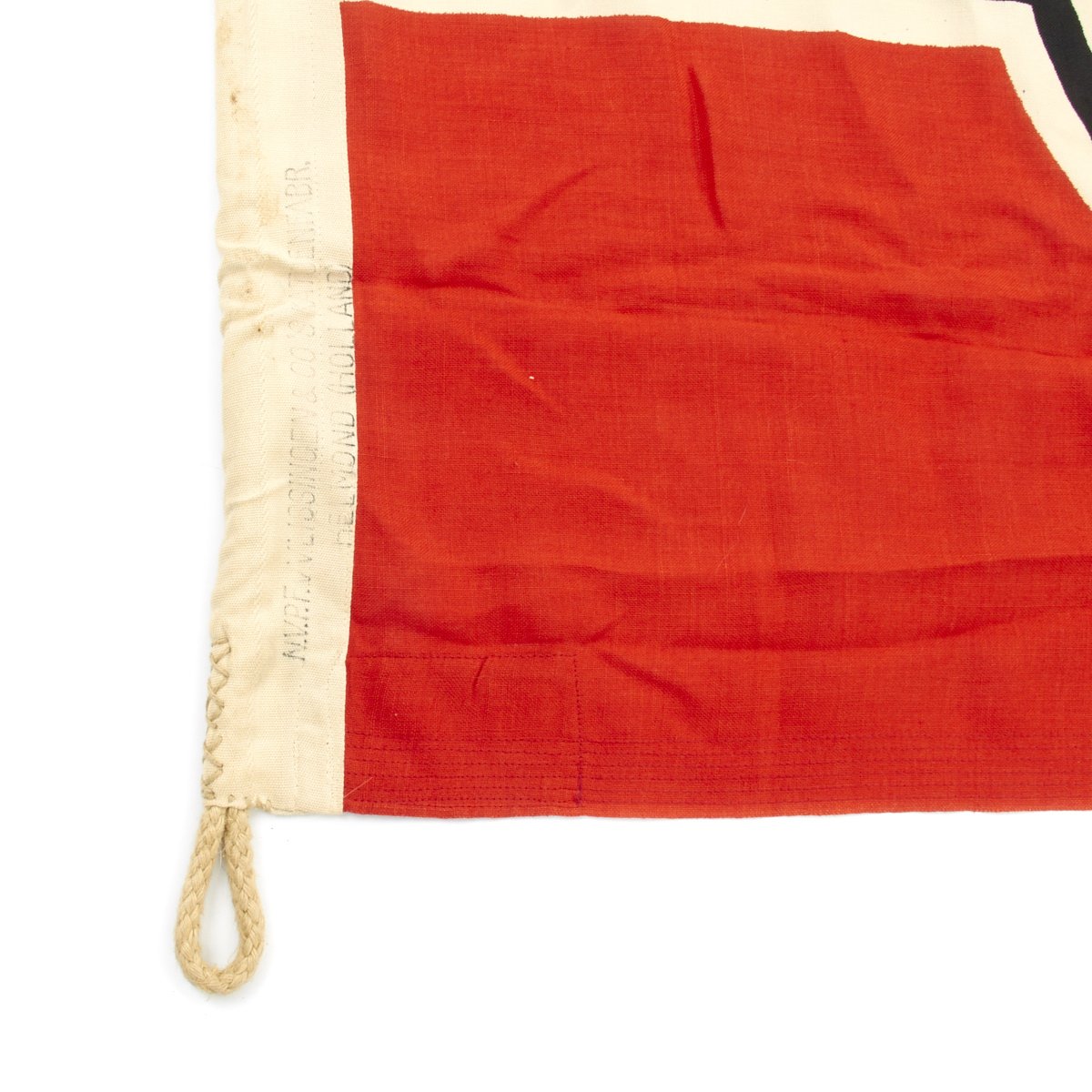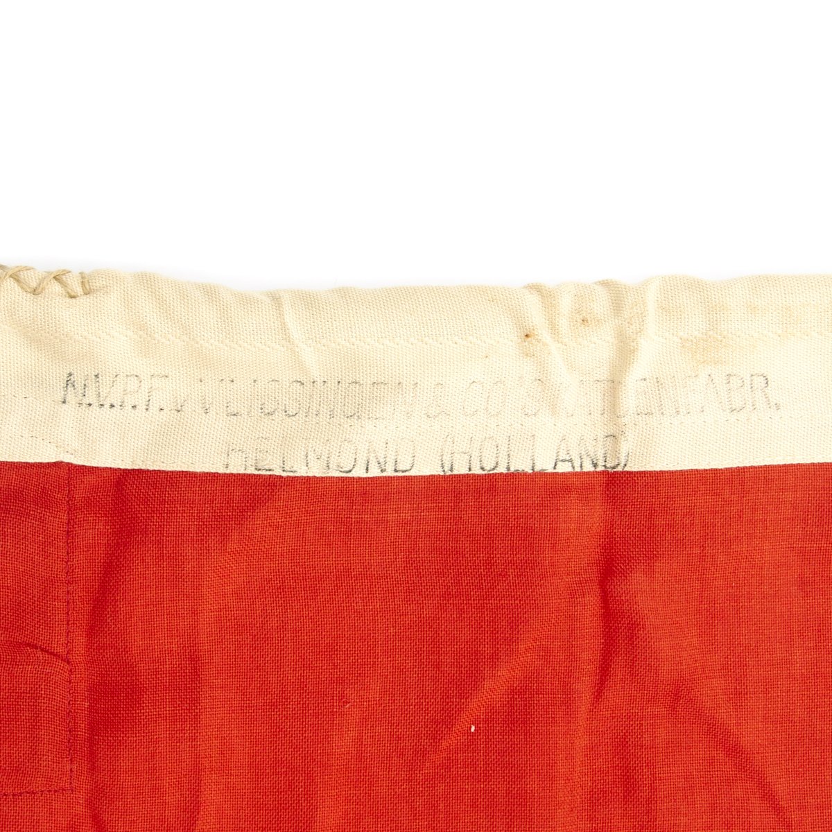 Helmond was city captured early in WWII by Germany, and at that time was part of Holland, which later became part of the Netherlands. The flag is also marked Kr.FL. 80 x 135, indicating that it is a 80cm x 135cm Reichskriegsflagge. There are no Naval markings, so this was a flag intended for ground forces use.
