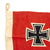 The proportions of the flag are 3:5. Fusing elements of the NSDAP German Flag (swas and red background) with that of the old Imperial Reich War Flag (four arms emanating from off-center circle and Iron Cross in the canton), these flags were uniformly produced as a printed design on bunting.