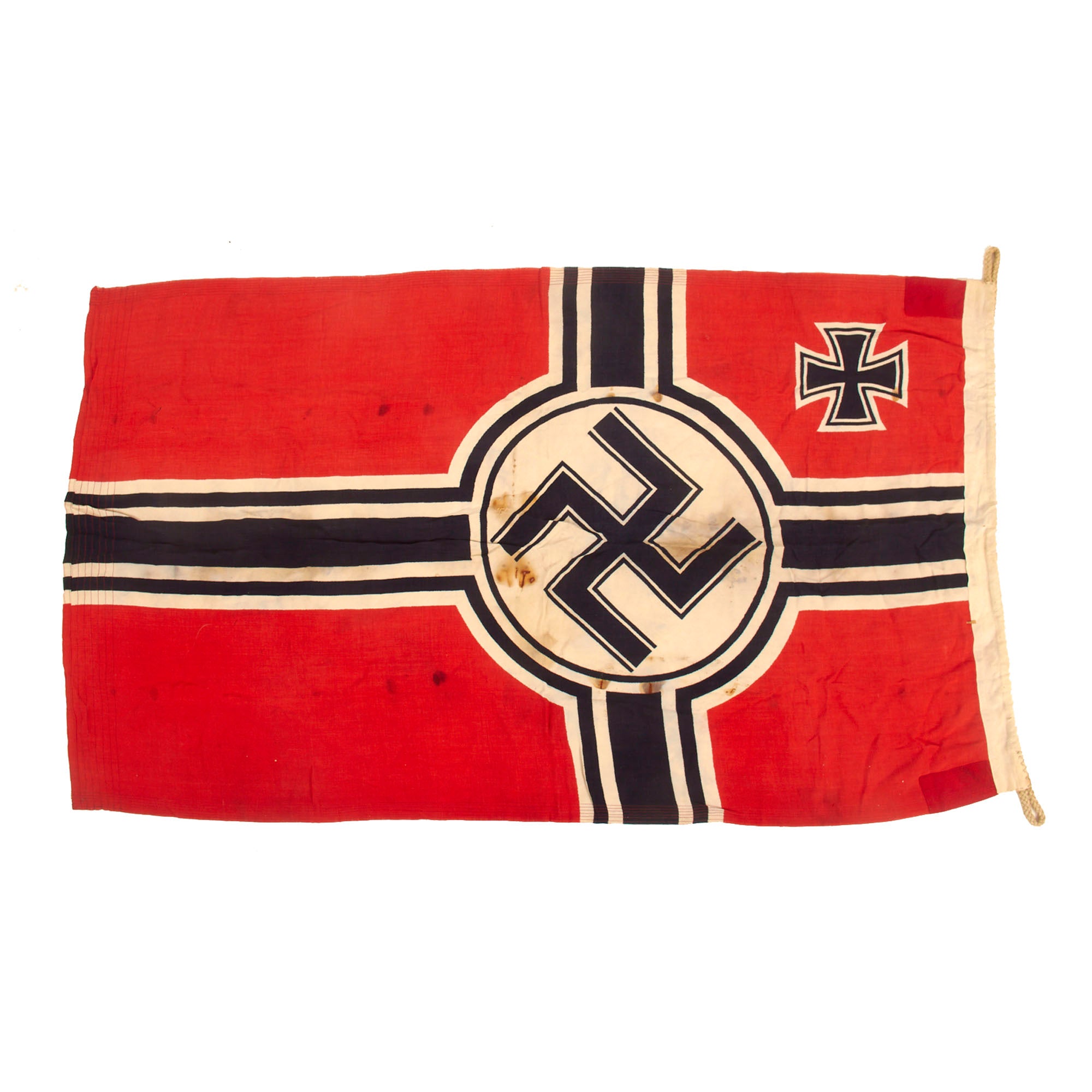 Original Item: Only One Available. Reichskriegsflagge (Imperial War Flag) was the official name of the war flag and war ensign used by the German armed forces from 1933 to 1945. Recently acquired from a veteran's estate this is without a doubt the most impressive battle flag of the German WW2 era, it measures 31.50" x 53.15" or 80cm x 135cm.