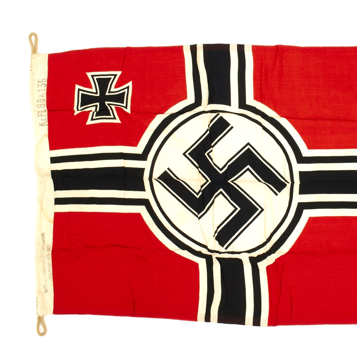 Original Item: Only One Available. Reichskriegsflagge (Imperial War Flag) was the official name of the war flag and war ensign used by the German armed forces from 1933 to 1945. Recently acquired from a veteran's estate this is without a doubt the most impressive battle flag of the German WW2 era, it measures 31.50" x 53 or 80cm x 135cm.