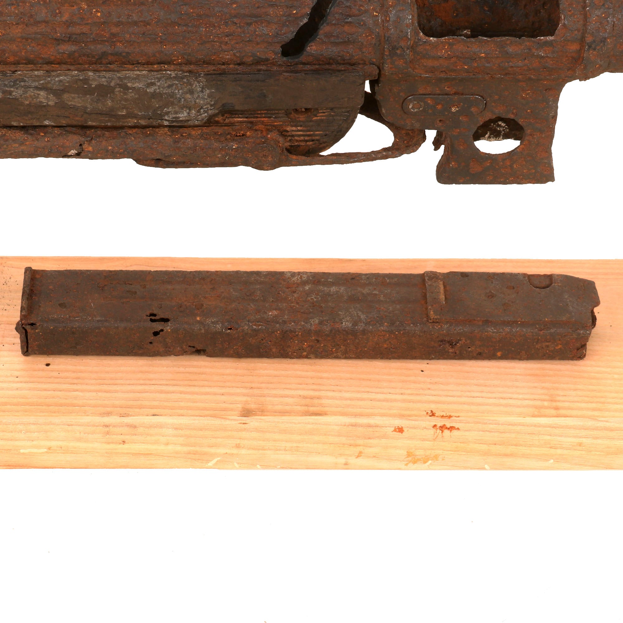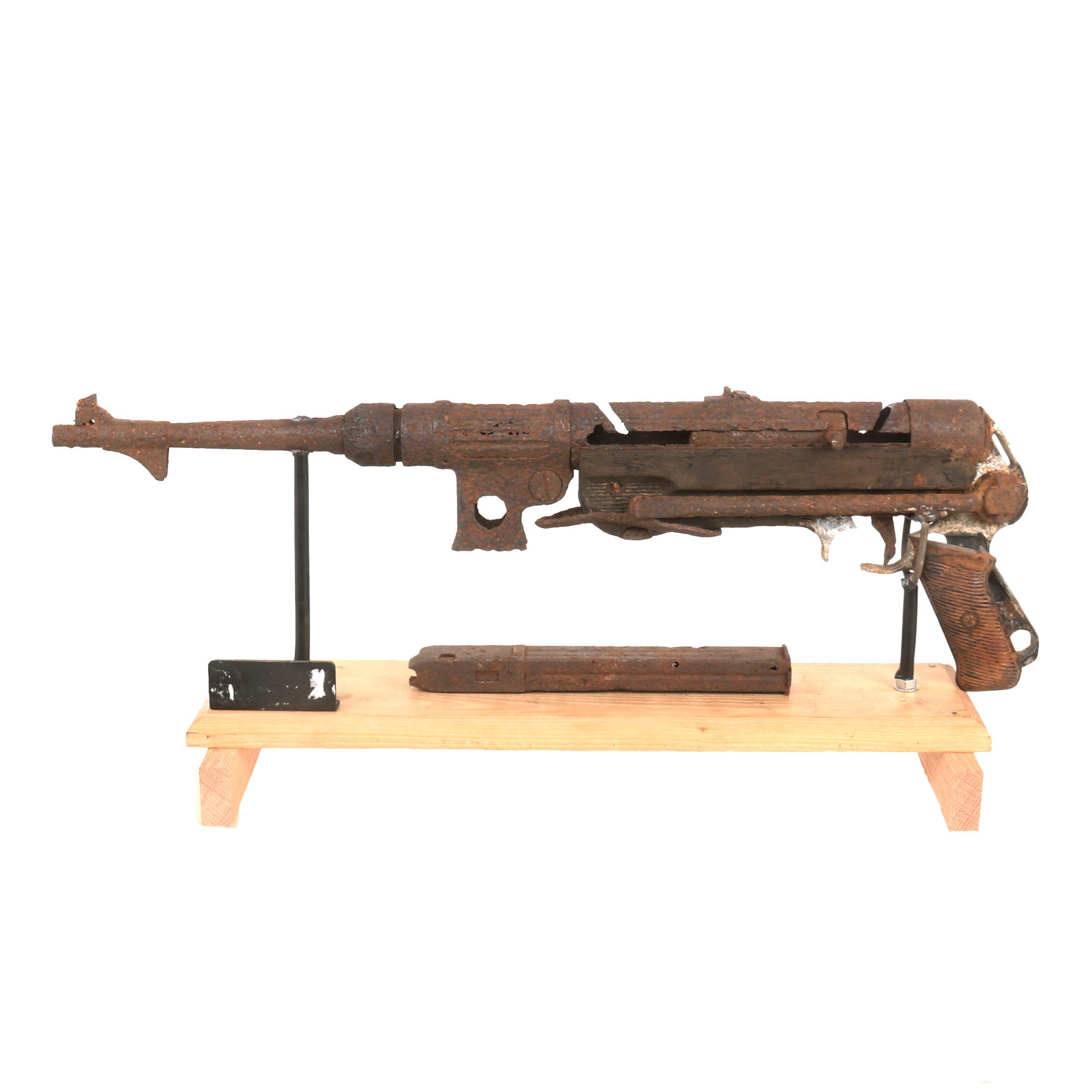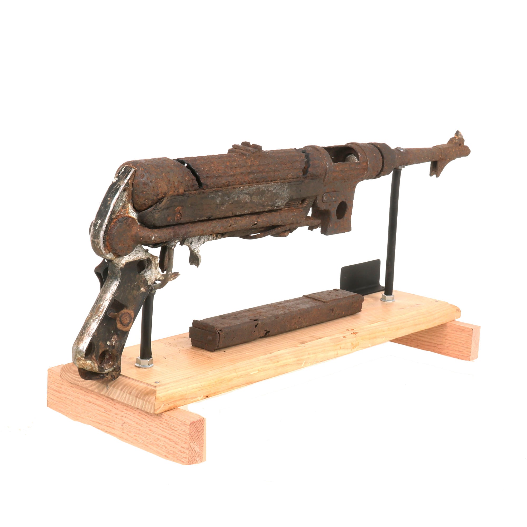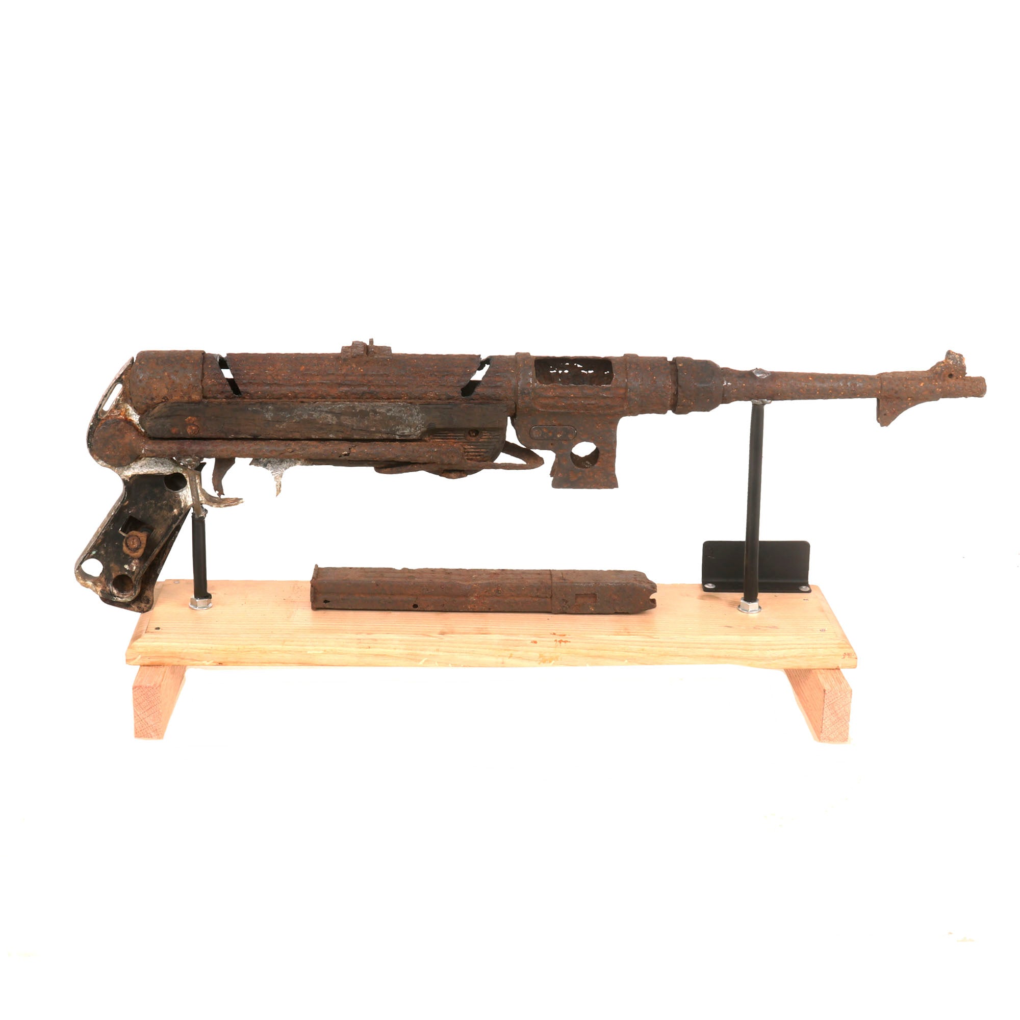 Original Item: Only One Available. Now THIS is an offering for someone who really appreciates PATINA! This is a wonderful "Battlefield Dug Up" German WWII MP 38 display submachine gun, dug up somewhere in Europe long ago. We unfortunately do not know the exact location that it was found, as any word of mouth information has been lost.