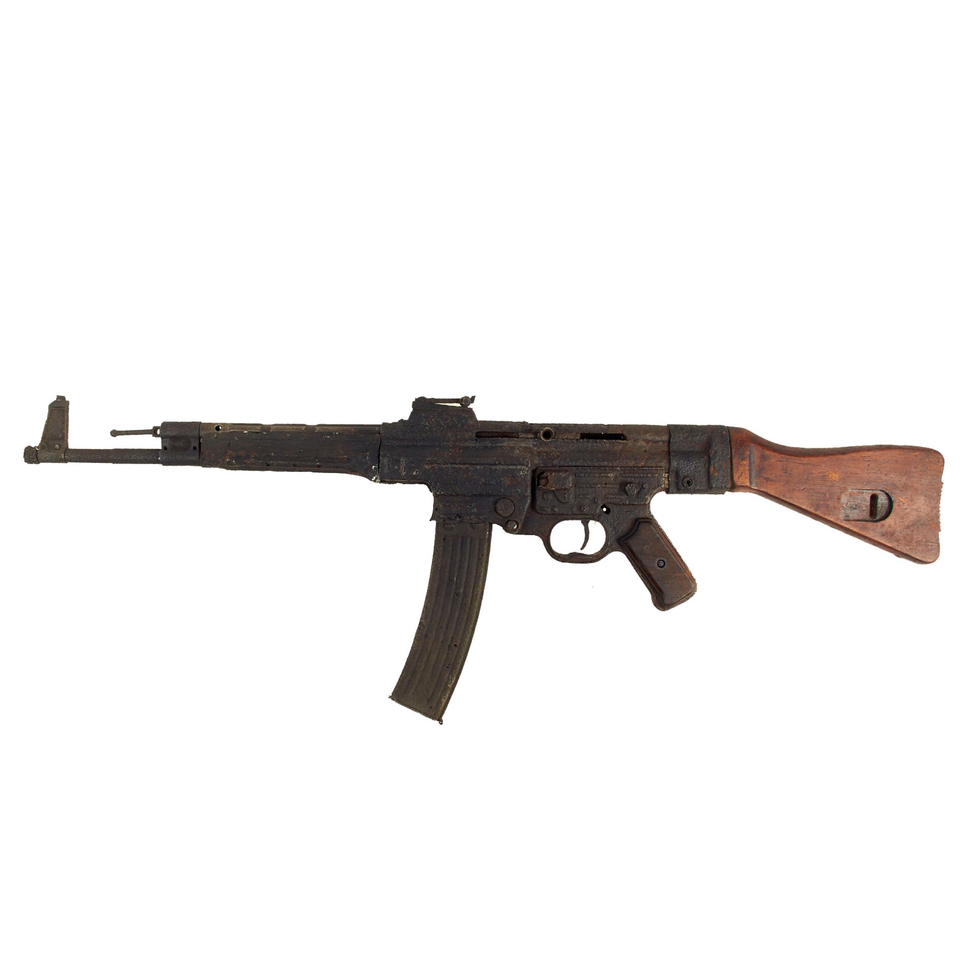 Original Item: Only One Available. Now THIS is an offering for someone who really appreciates PATINA! This is a wonderful "Battlefield Dug Up" German WWII MP44 / STG 44 display machine gun, which were told was found in the Ardennes in France. Unfortunately we have no way of verifying this, as it was found some time ago, and all information on it passed on by word of mouth. The relic has been demilitarized and rebuilt with the proper 2 inches of what is left of the receiver replaced with solid bar stock, making this a great BATF approved relic display gun.