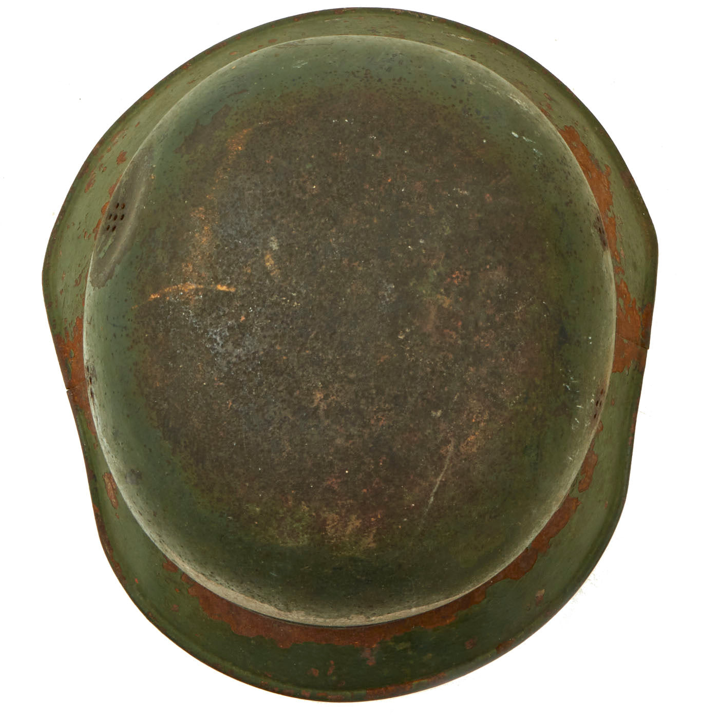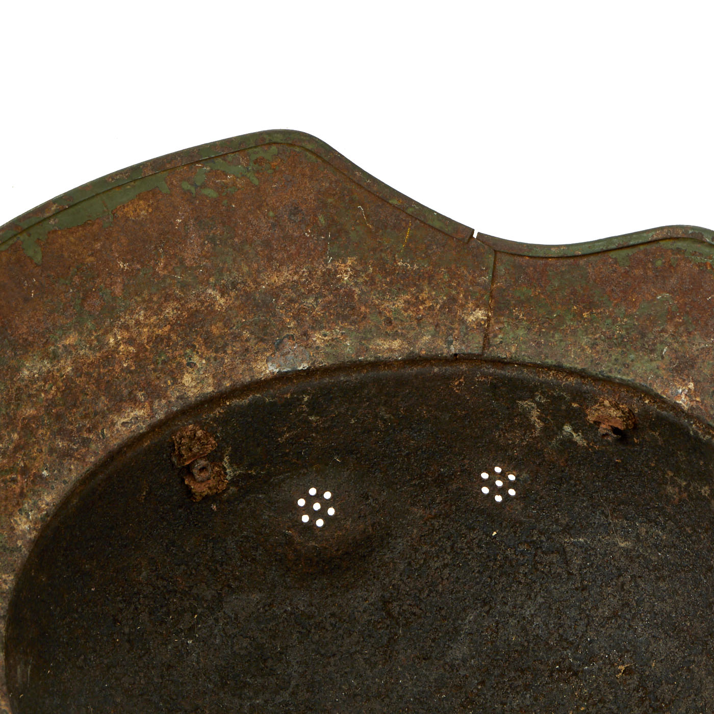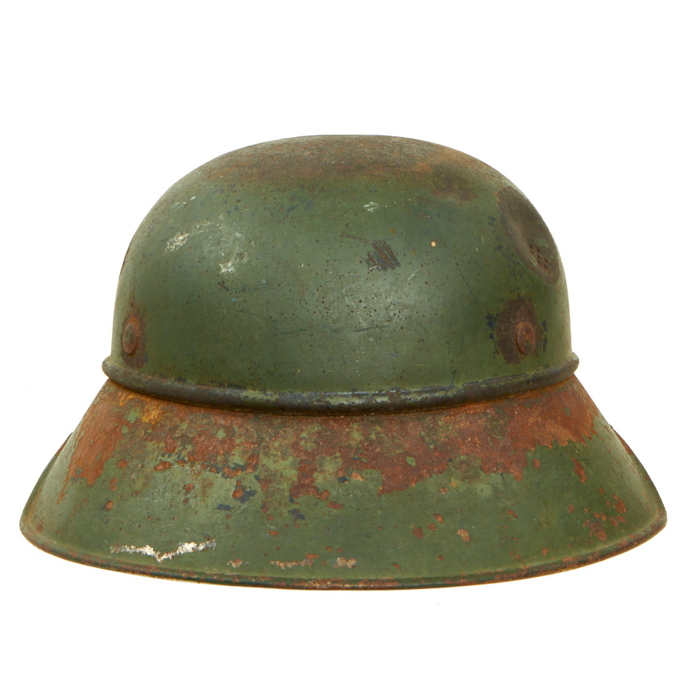 Overall a very interesting battlefield pickup German WWII M38 Luftschutz helmet shell with a rare green paint job. Ready to add to your collection and display!