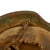 All three liner retaining pins are intact, with the original paint retained to a varying degree. The interior of the helmet still has the original M31 leather liner present, however it is definitely in "relic" condition, with the leather shrunken and taut around the inner band. It is quite stiff, and the rear stitching has torn out. The late war galvanized steel outer band has had the plating oxidize, so we were not able to make out any of the markings. The chinstrap is in similar condition to the liner leather, and is quite delicate and stiff. The metal buckle tore through the shorter side of the chinstrap, and is still attached to the longer part.