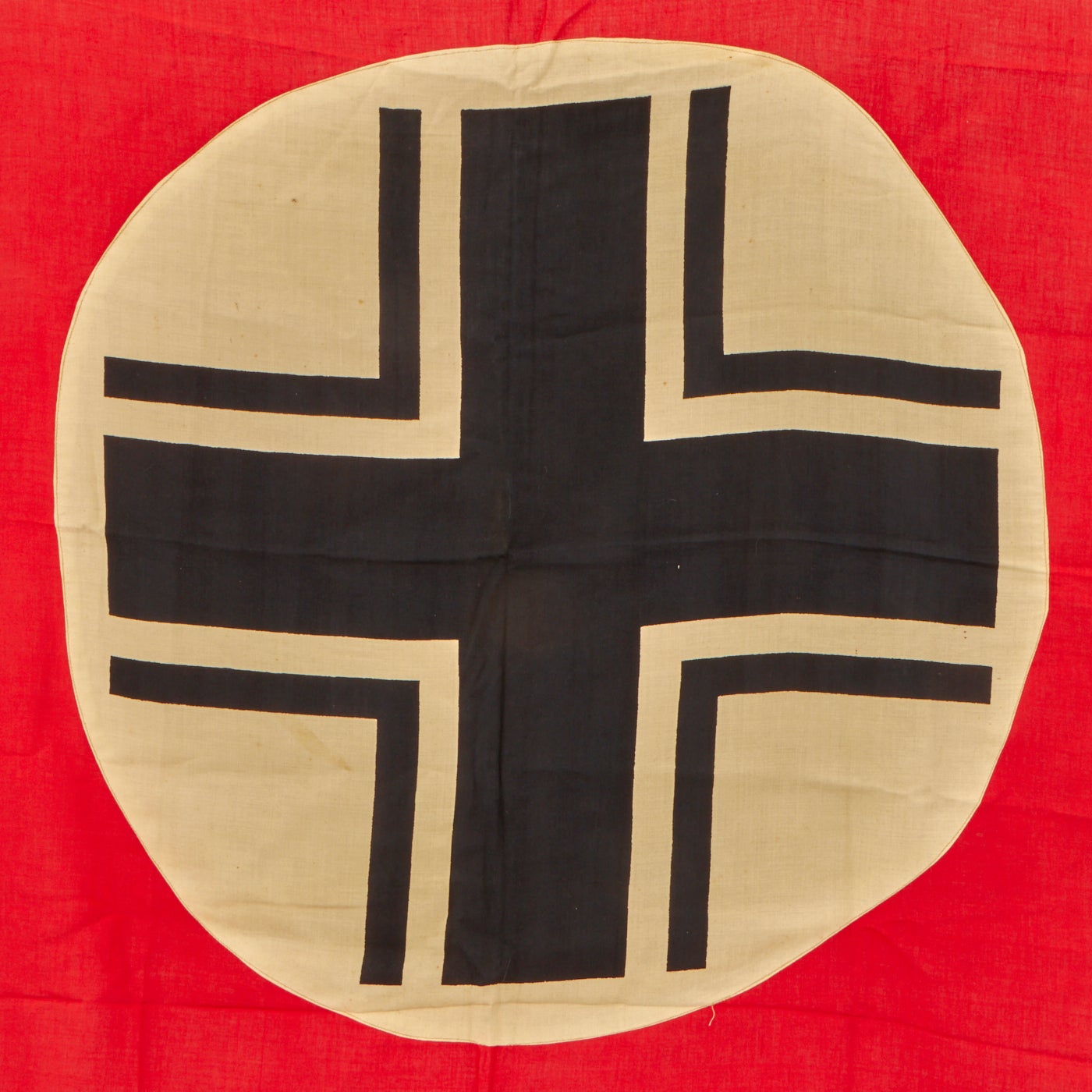 Original Item: Only One Available. This is a great condition original German WWII Balkenkreuz (Beam Cross) Panzer tank identification flag. It is in excellent condition and measures approximately 40" x 77" inches. Flag is constructed of cotton and has four grommets (one in each corner), which were used to secure the flag to the back of the tank, facing the sky in order to prevent friendly fire from German aircraft. The flag is a multi-piece construction with a Balkan cross on white background stitched onto the red base.