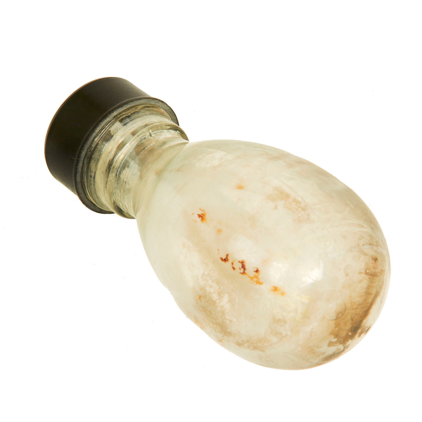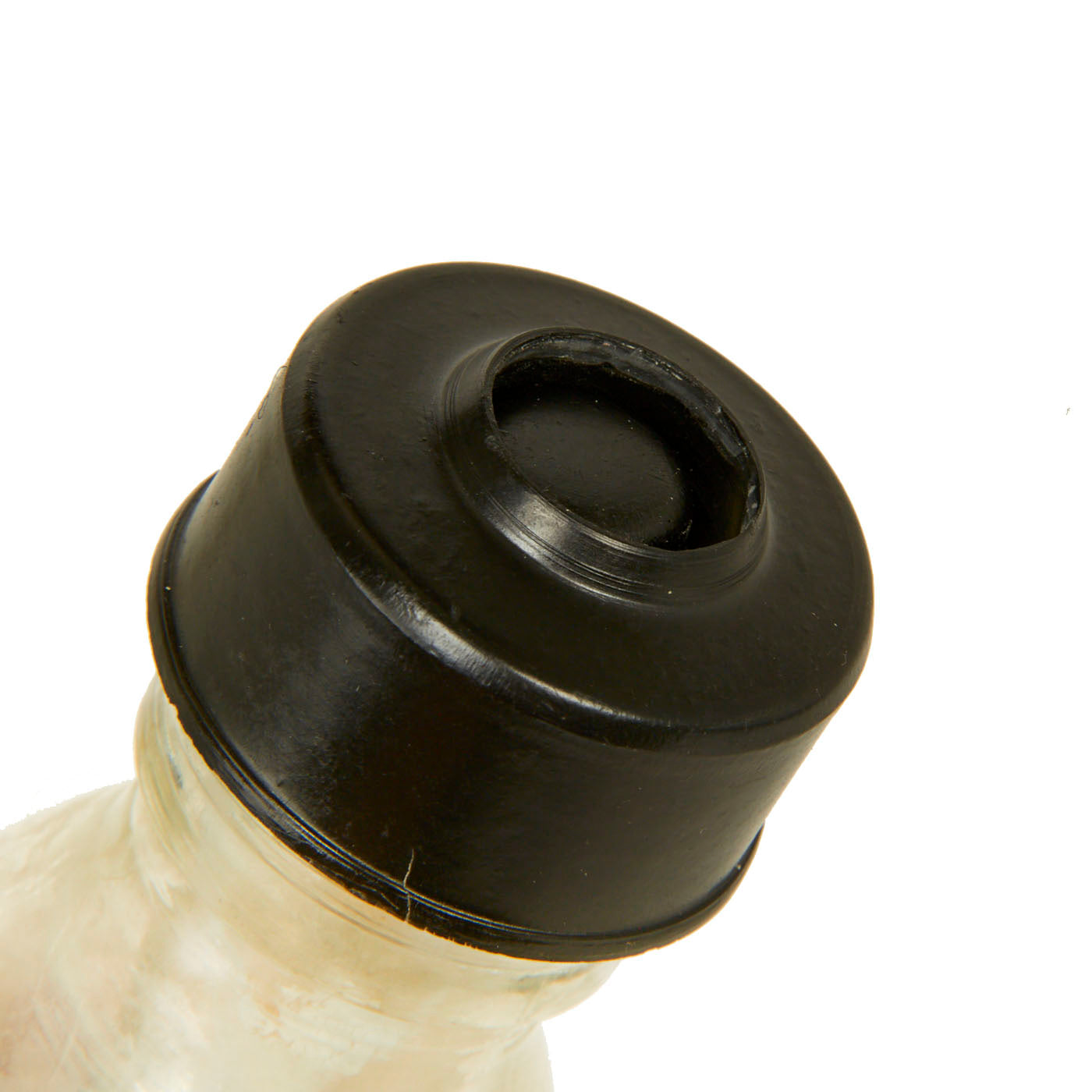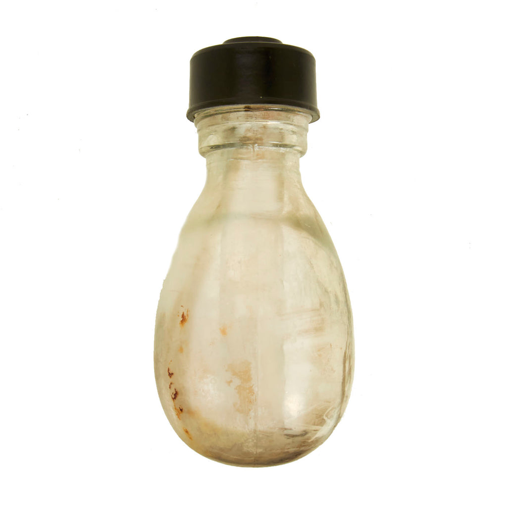 This example is in very good condition, with intact inner and outer glass bottles, and both correct bakelite caps. Of course, the grenade is totally empty, the original contents drained long ago. The inner bottle can be removed for inspection.