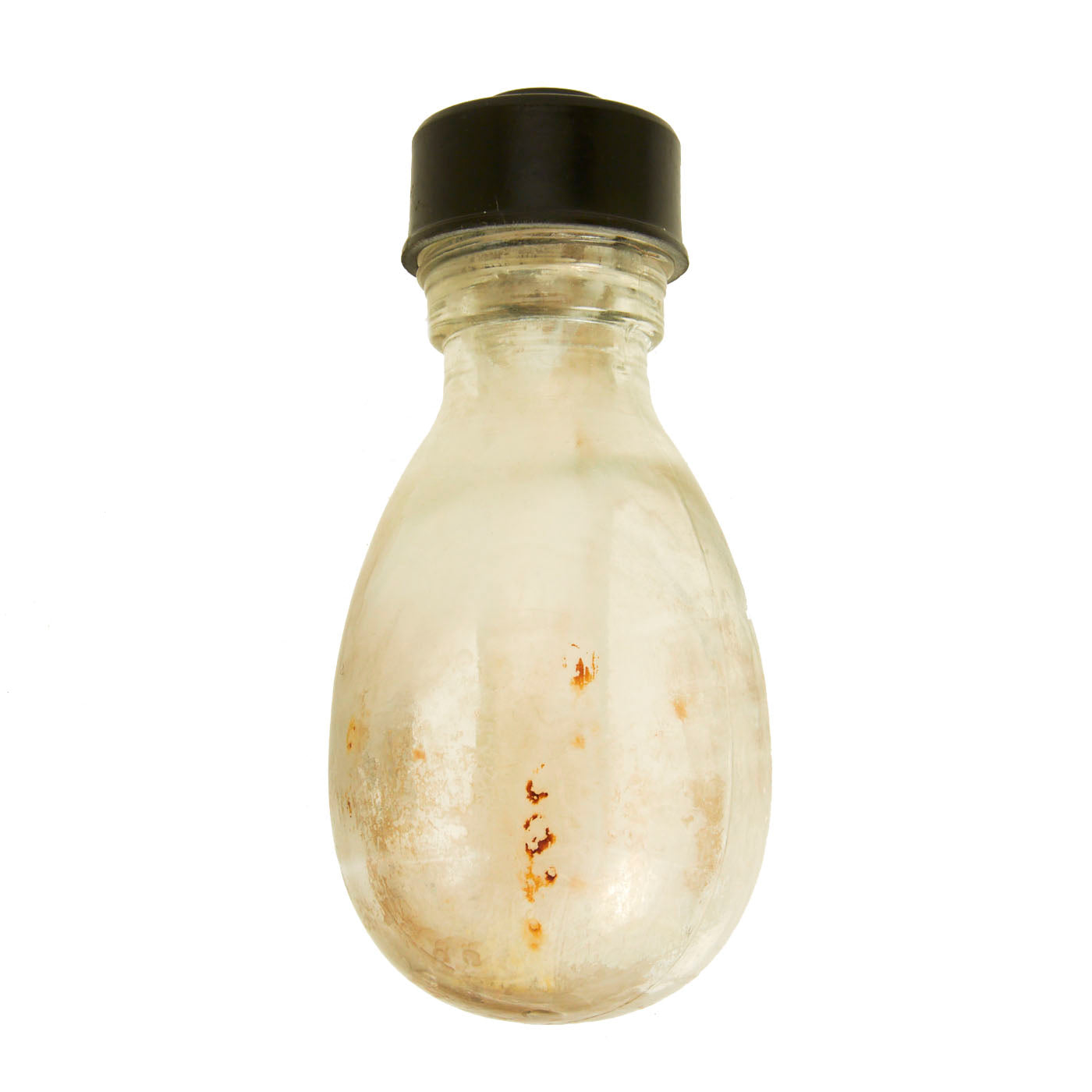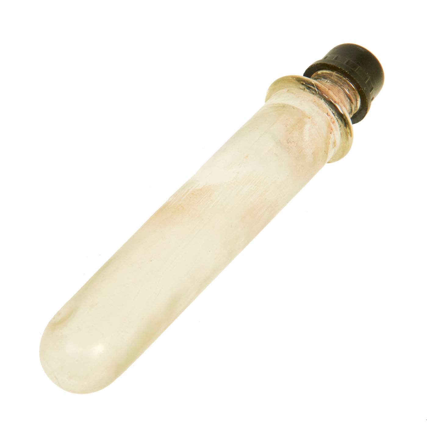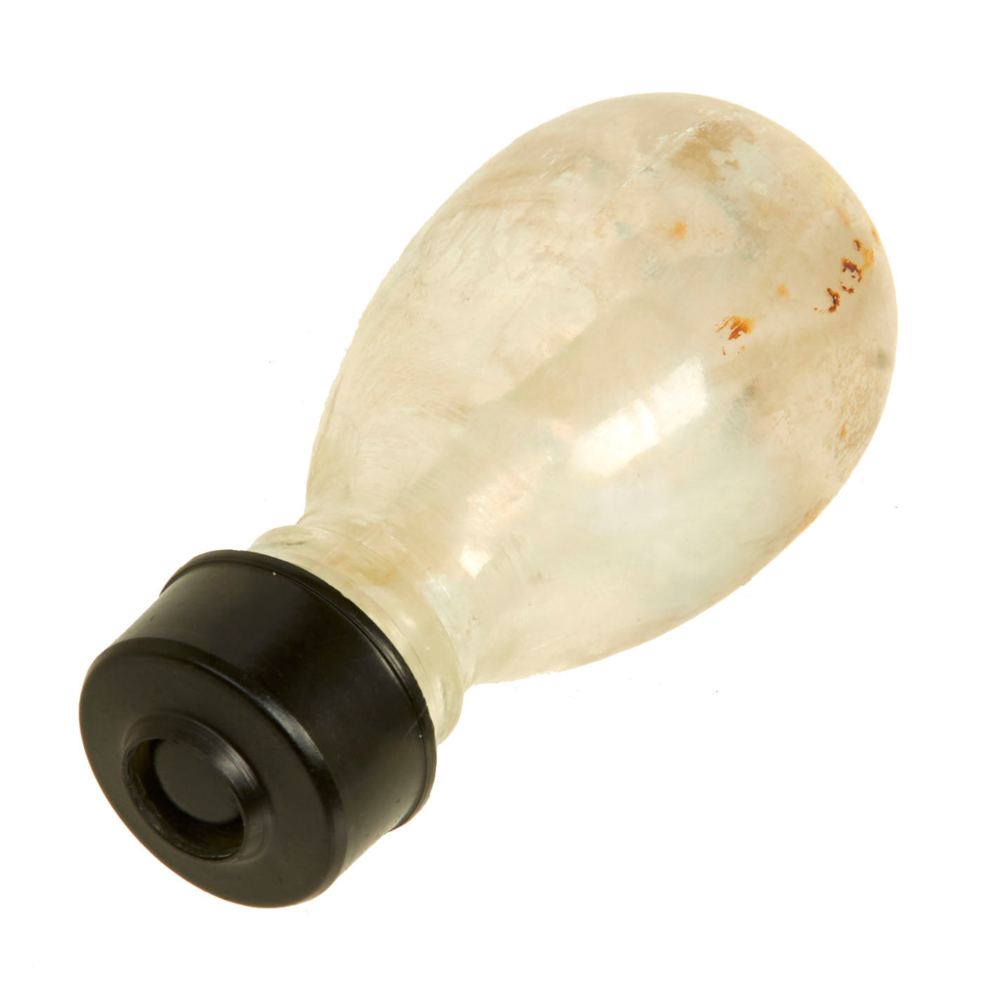 This example is in very good condition, with intact inner and outer glass bottles, and both correct bakelite caps. Of course, the grenade is totally empty, the original contents drained long ago. The inner bottle can be removed for inspection.