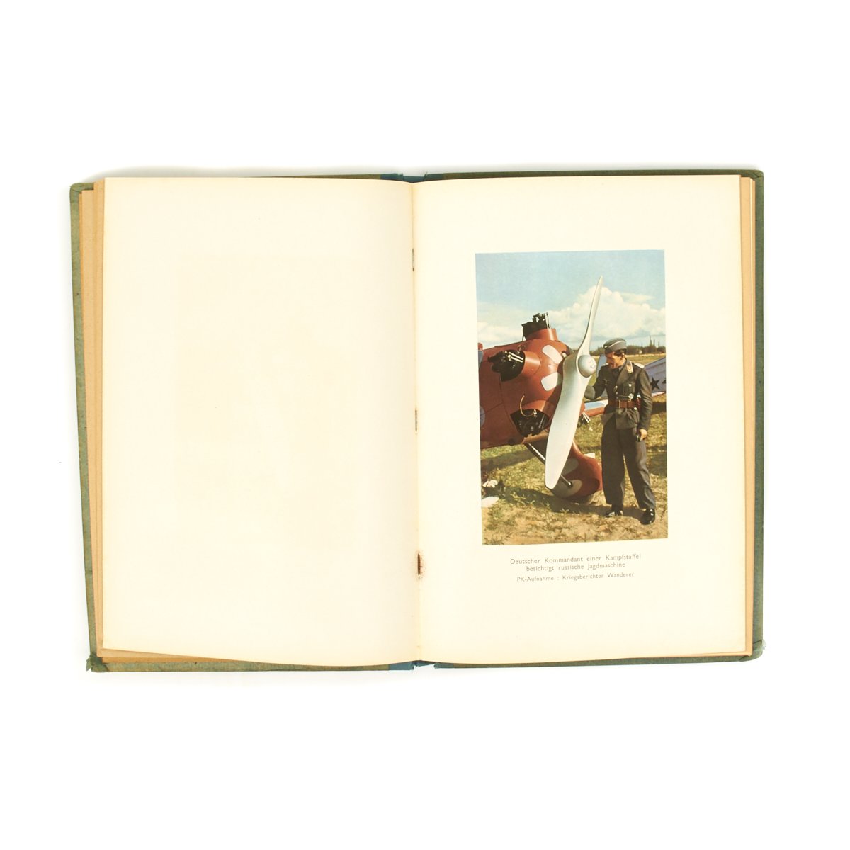 Illustrated with 8 full page reproductions of color photographs by Kriegsberichter Wanderer, Breu, Sturm, Weixler, as well as a color illustration of Hermann Göring after a painting by H. Funk. Stereographs by Weixler, Eitel Lange, and Aubele.