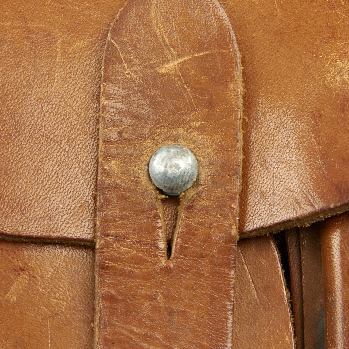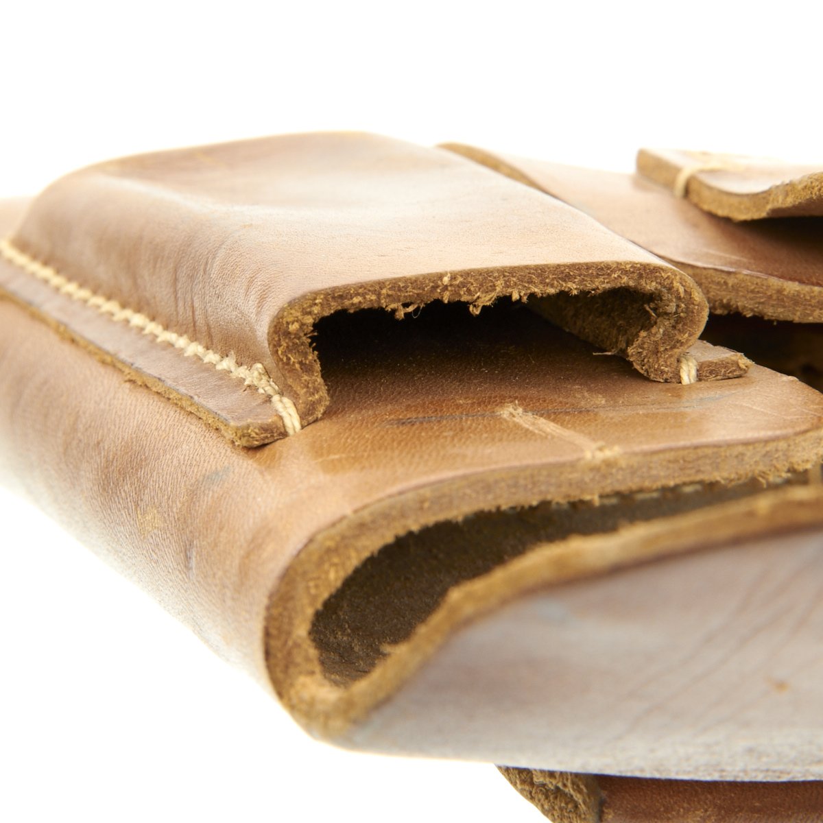 The overall condition of the holster is quite, especially considering the age. Only the small stain on the muzzle end prevent it from grading excellent. The leather is supple, and has a lovely chestnut brown color. It has intact heavy stitching, original belt loops, and intact and functional closure strap, attached to the break away front. Magazine pouch does not have any of the usual wearing through at the bottom.