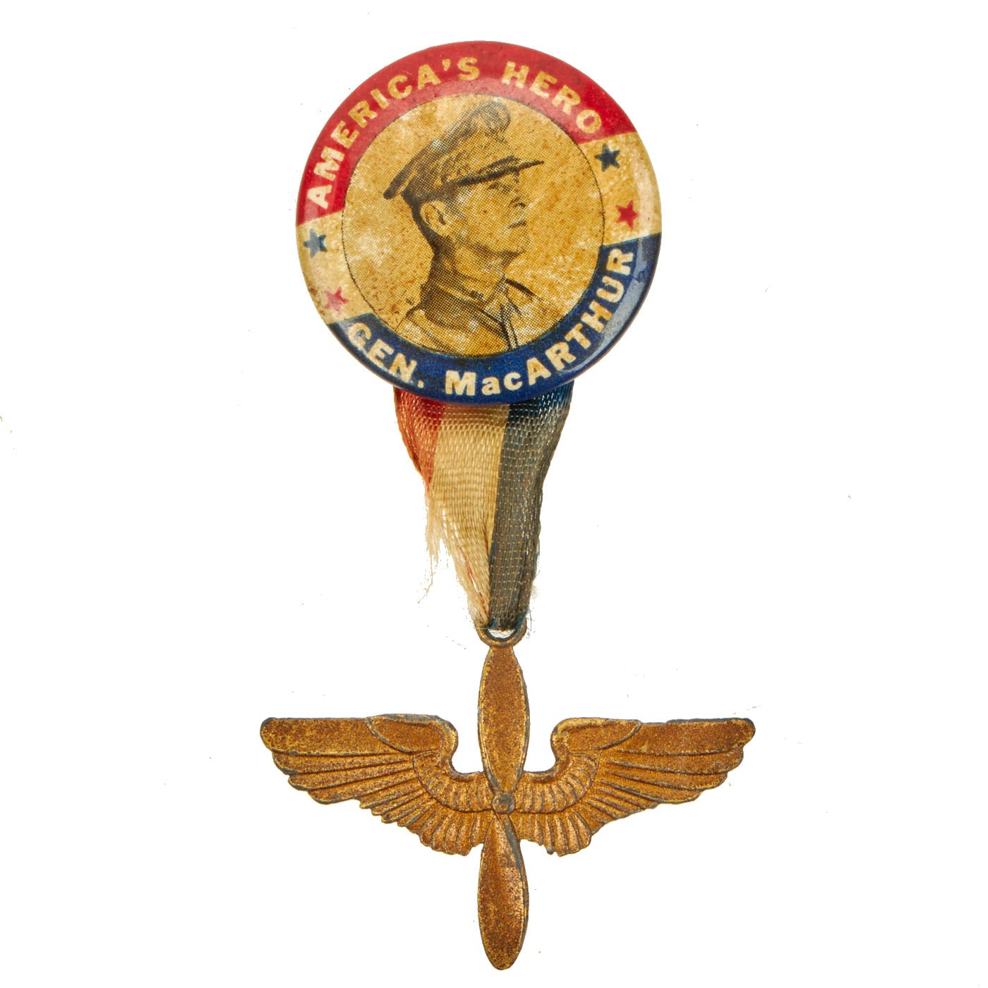 -”America’s Hero" Gen. MacARTHUR Pin with ribbon and Army Air Forces Pendant