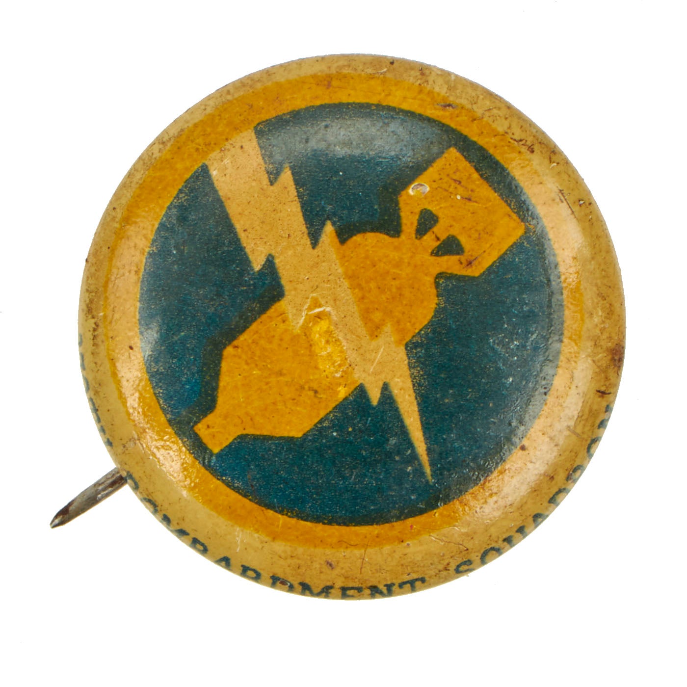 -American 370th Bombardment Squadron Pin: The pin is small, measures 6/8” inch in diameter. The emblem of the 370th Bombardment Squadron is one of a set of military insignia pins issued by Kellogg's with their PEP cereal in 1943. The set is known as the “Pep War Insignia Pins” and features 36 WWII military squadron emblems. It was created for Kellogg's by the legendary "Premium King" Sam Gold. Kellogg's Pep cereal brand-sponsored radio programs gave away premium items such as trading cards, badges, and pinback buttons.
