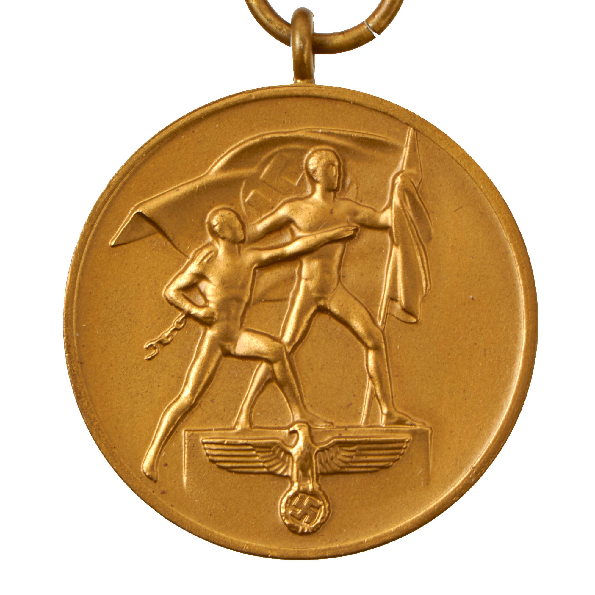 The medal was similar in appearance as the Anschluss Medal, the reverse only differed in the date. It was designed by Professor Richard Klein.