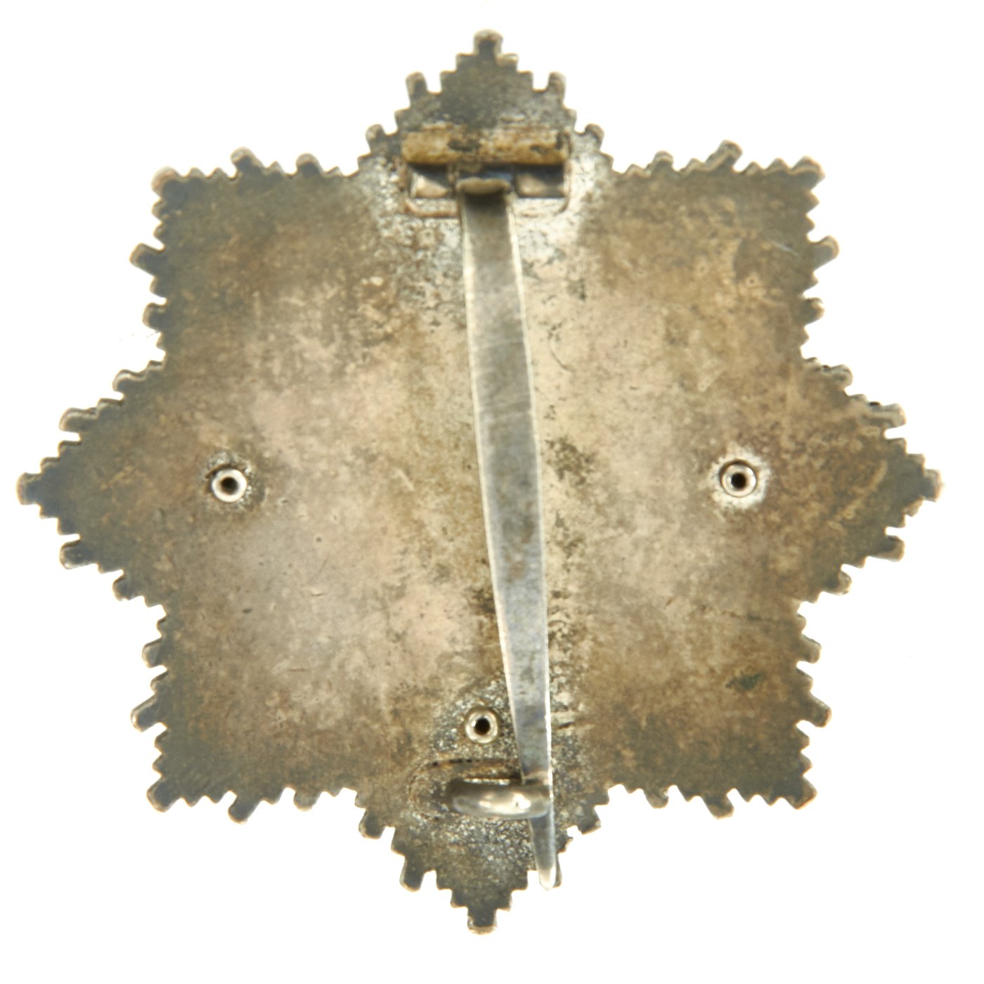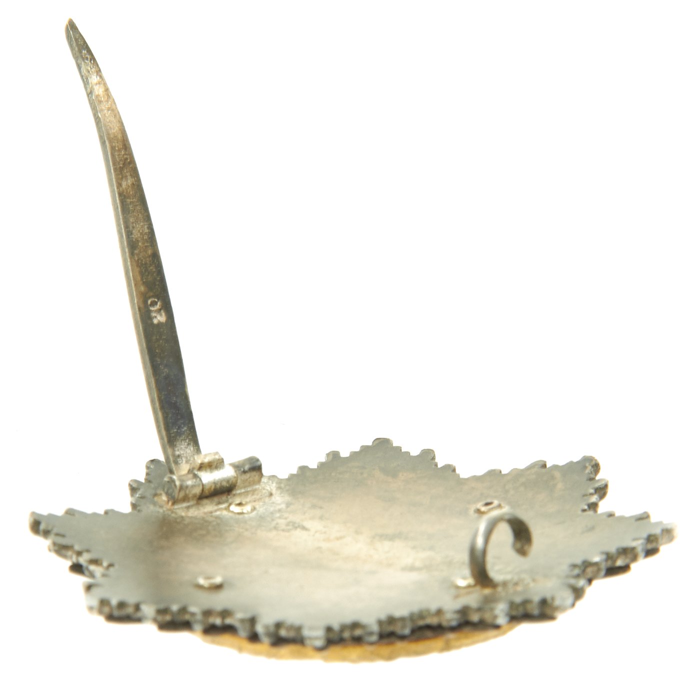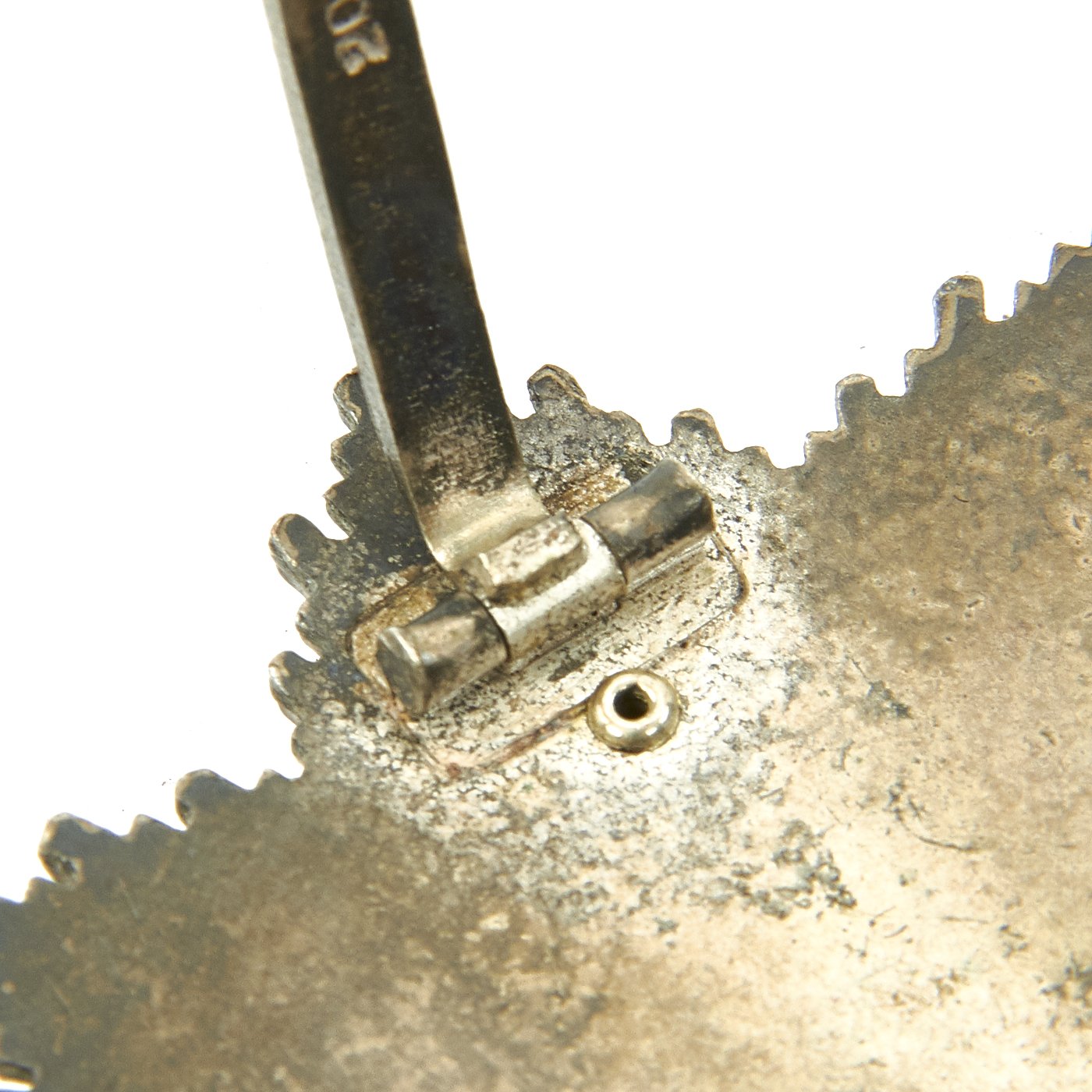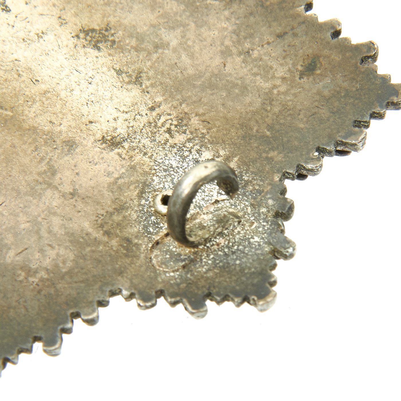 The hinge itself may be a bent piece of metal soldered in a recess at the top of the star (types marked ‘’20’’, ‘’134’’, DESCHLER), or more simply, soldered directly onto the star (Juncker and Godet types). The pin is fixed to the hinge by a cross-pin. The construction of this decoration is the most complex of all the military decorations of the Third Reich.