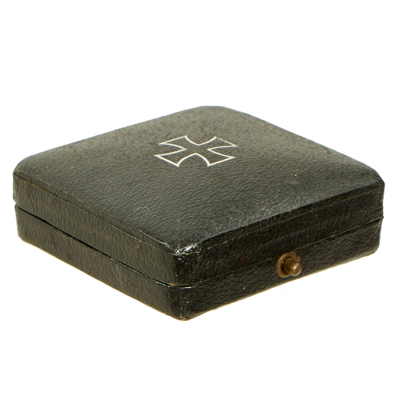 The award comes complete in its original presentation case, with the Iron Cross emblem on the lid, and a functional catch on the front. The interior velvet and satin lining is very well retained, though it has become stained due to age and contact with the award. The exterior shows only light wear, and the front closure catch is fully functional.