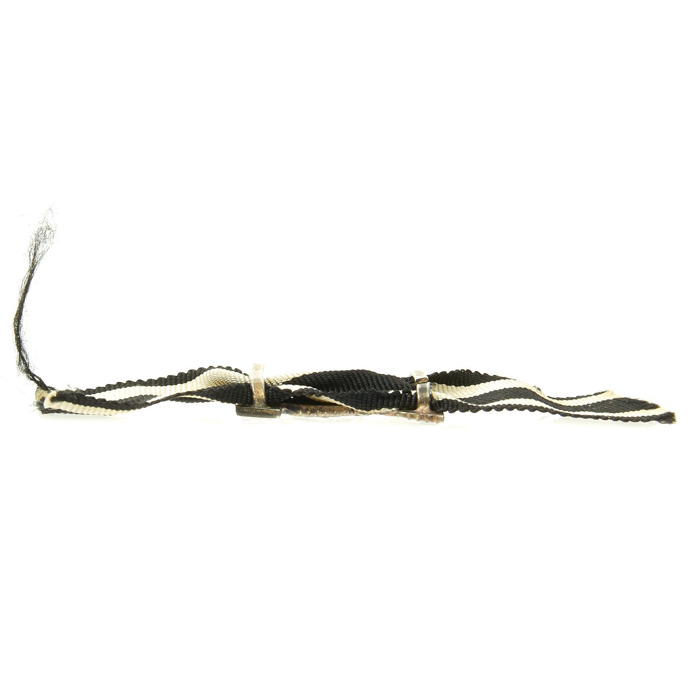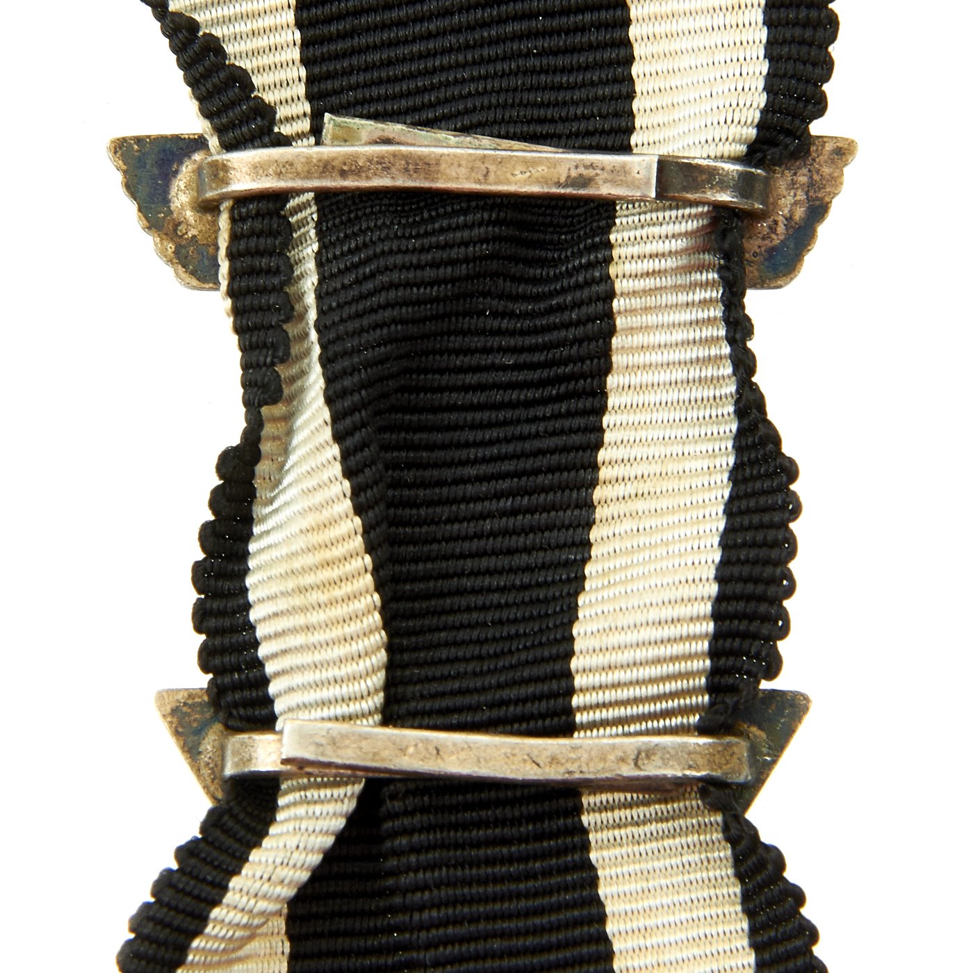 This example is in very good condition, and comes complete with the correct black ribbon with silver stripes. There is some oxidation to the silver, but the details are all there, and the bent clasps on the back are still intact. We were not able to see any maker mark, but that is typical for these smaller awards.