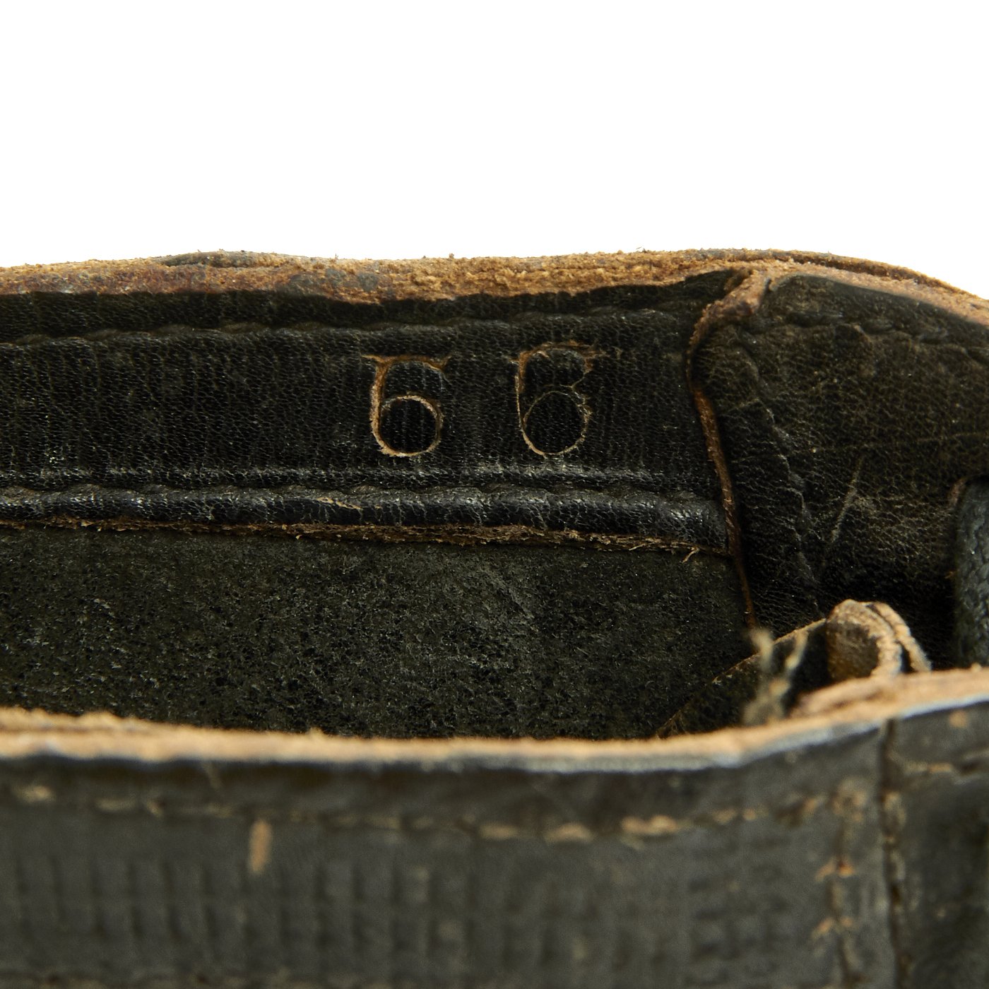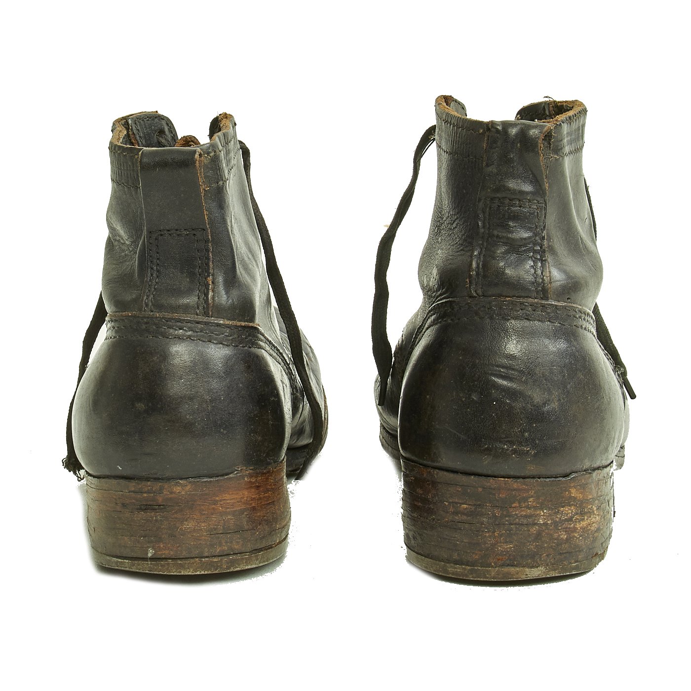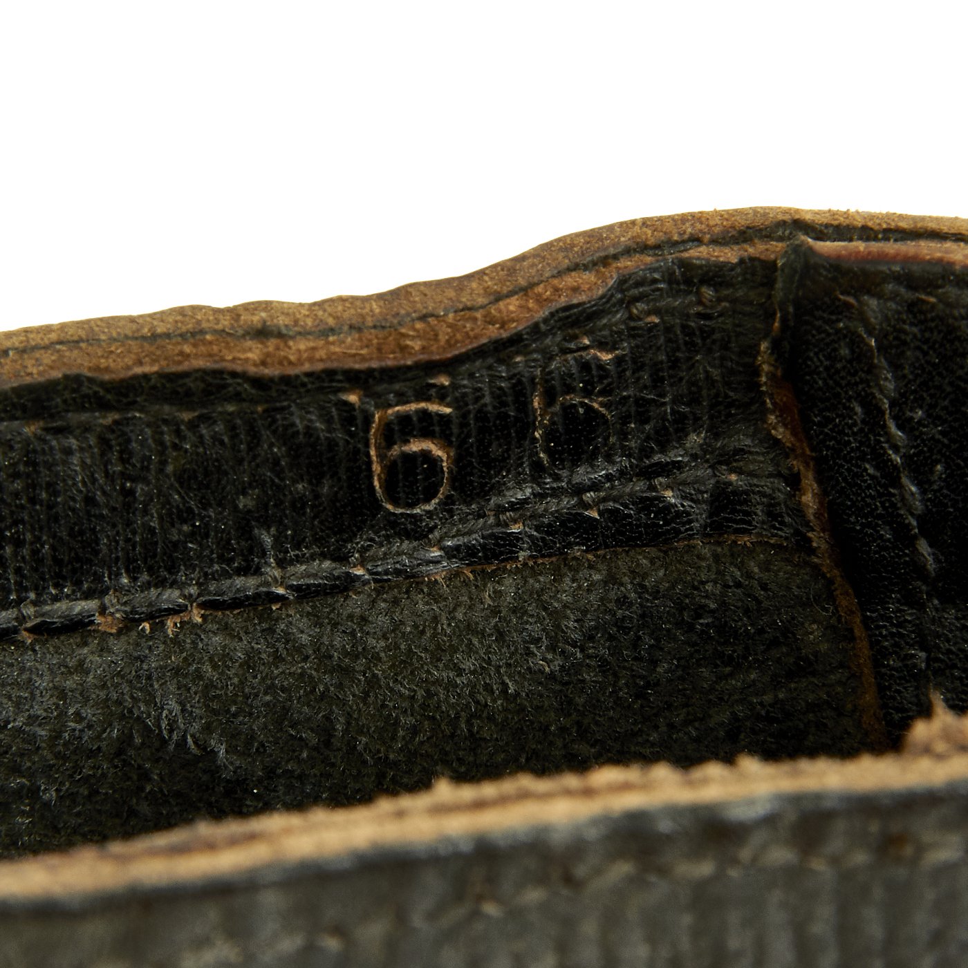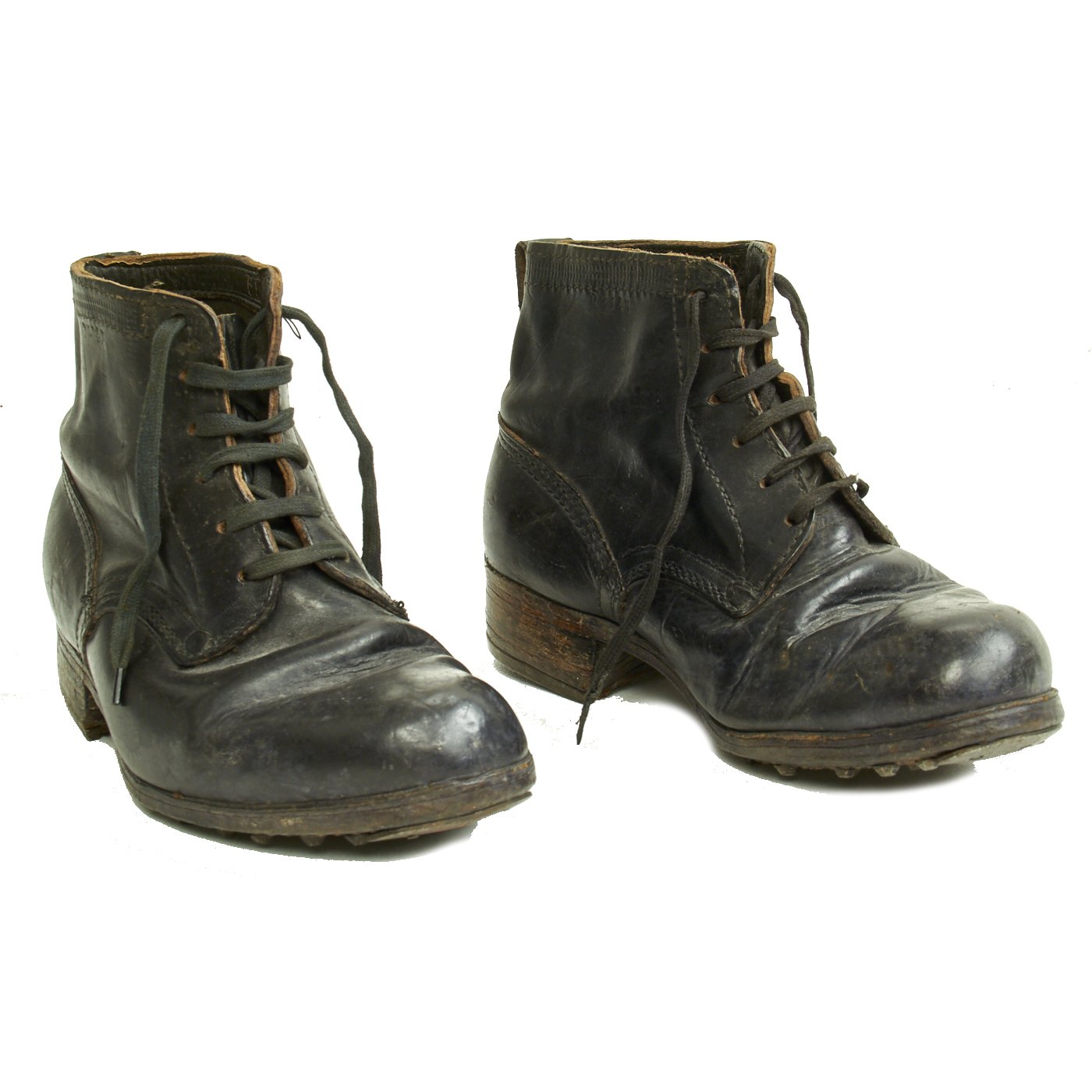 Original Items: Only One Set Available. These are fantastic German World War Two infantry black leather 1/4 or "low" combat boots with hobnails and heel irons in size 41cm (US 7). Both are offered in god but used and worn condition. Also included are an original set of leggings known as Gamaschen constructed of canvas and leather offered in excellent condition.