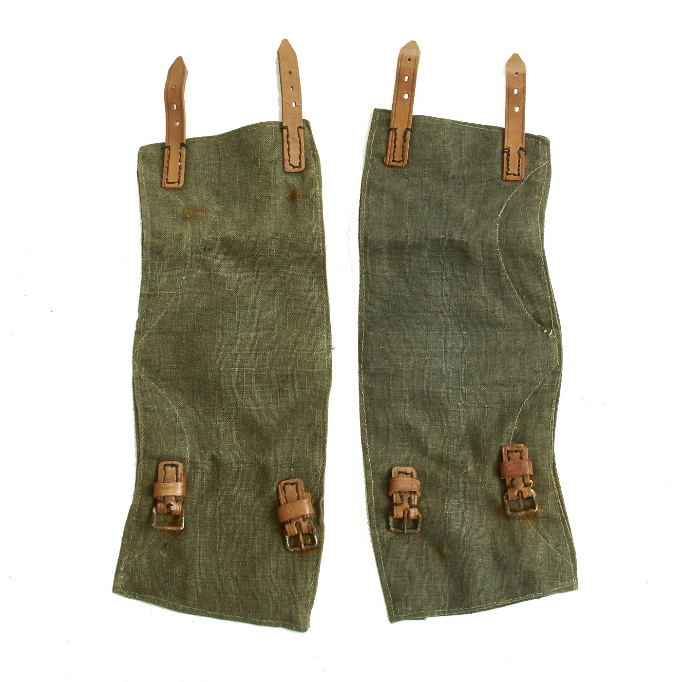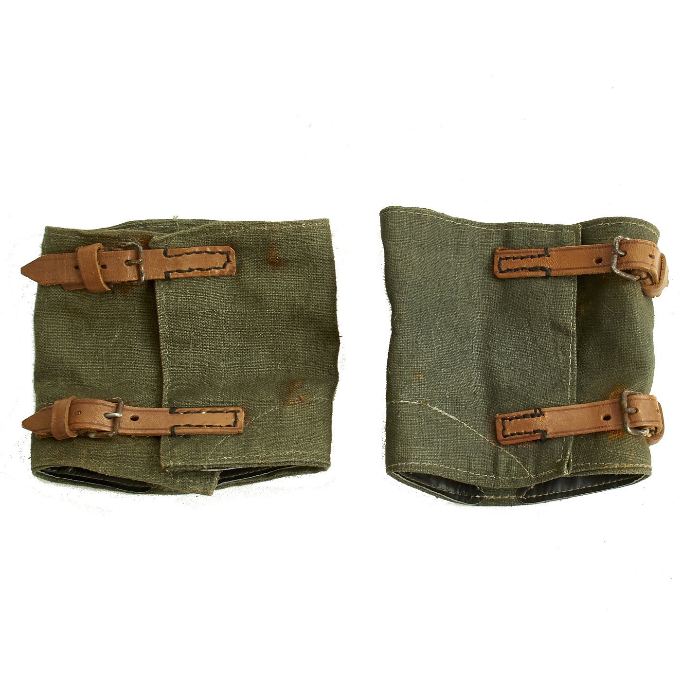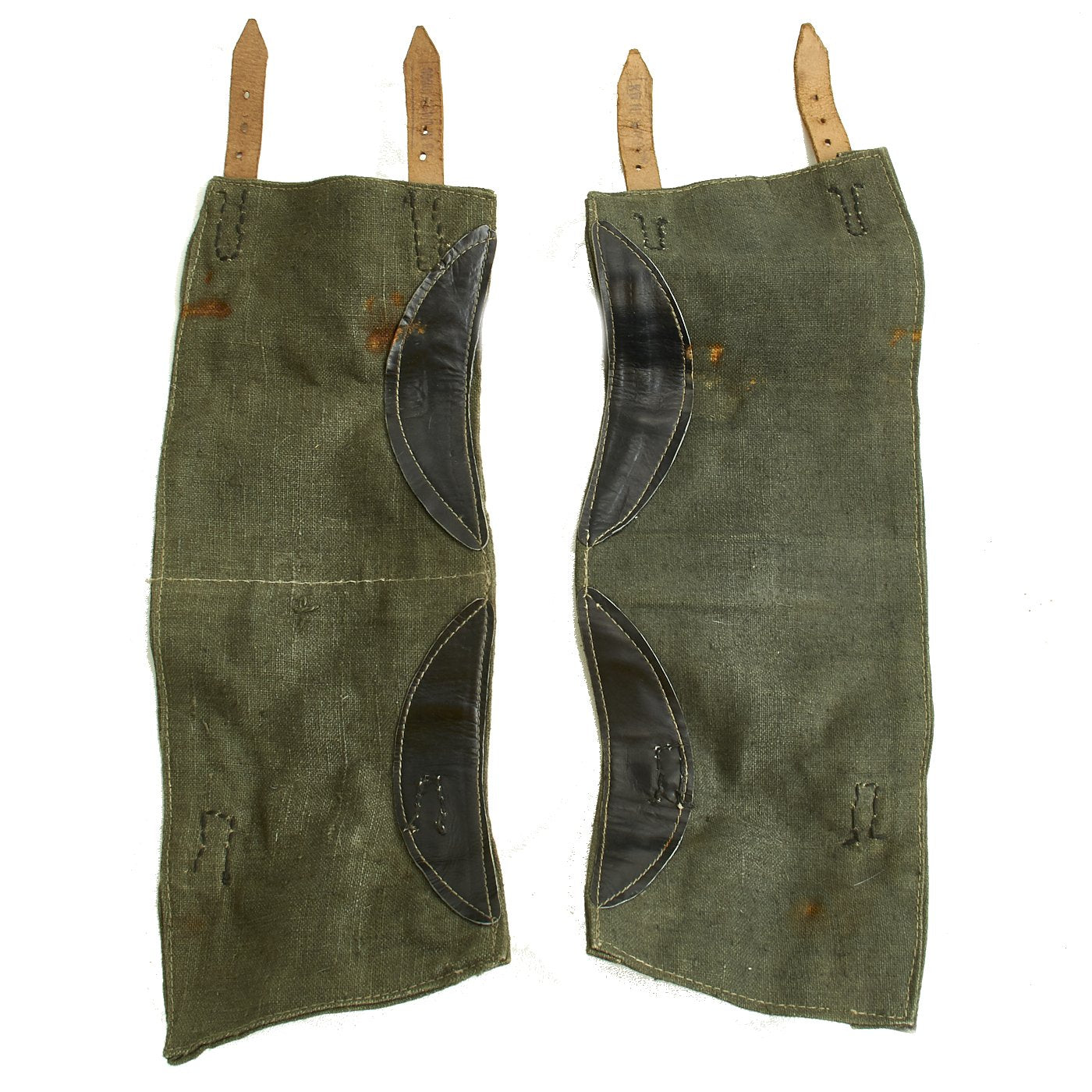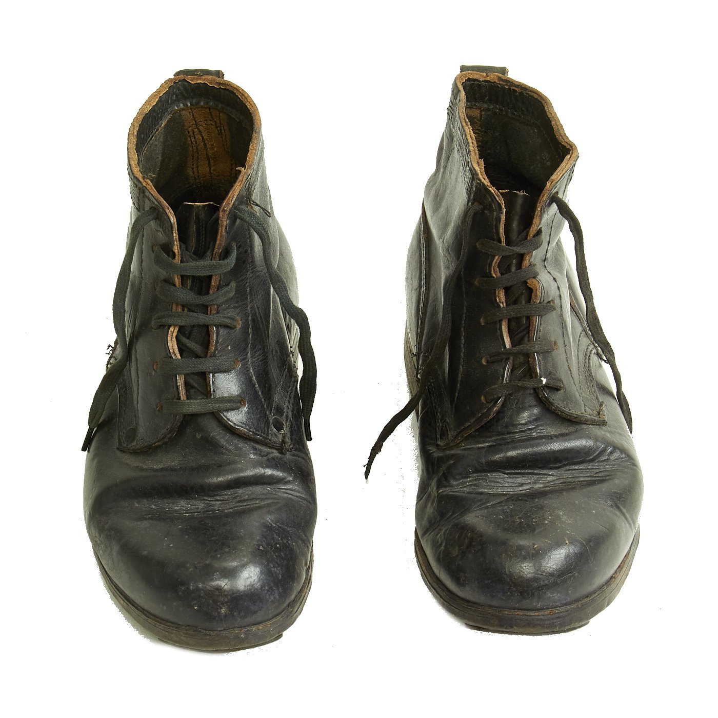Original Items: Only One Set Available. These are fantastic German World War Two infantry black leather 1/4 or "low" combat boots with hobnails and heel irons in size 41cm (US 7). Both are offered in god but used and worn condition. Also included are an original set of leggings known as Gamaschen constructed of canvas and leather offered in excellent condition.