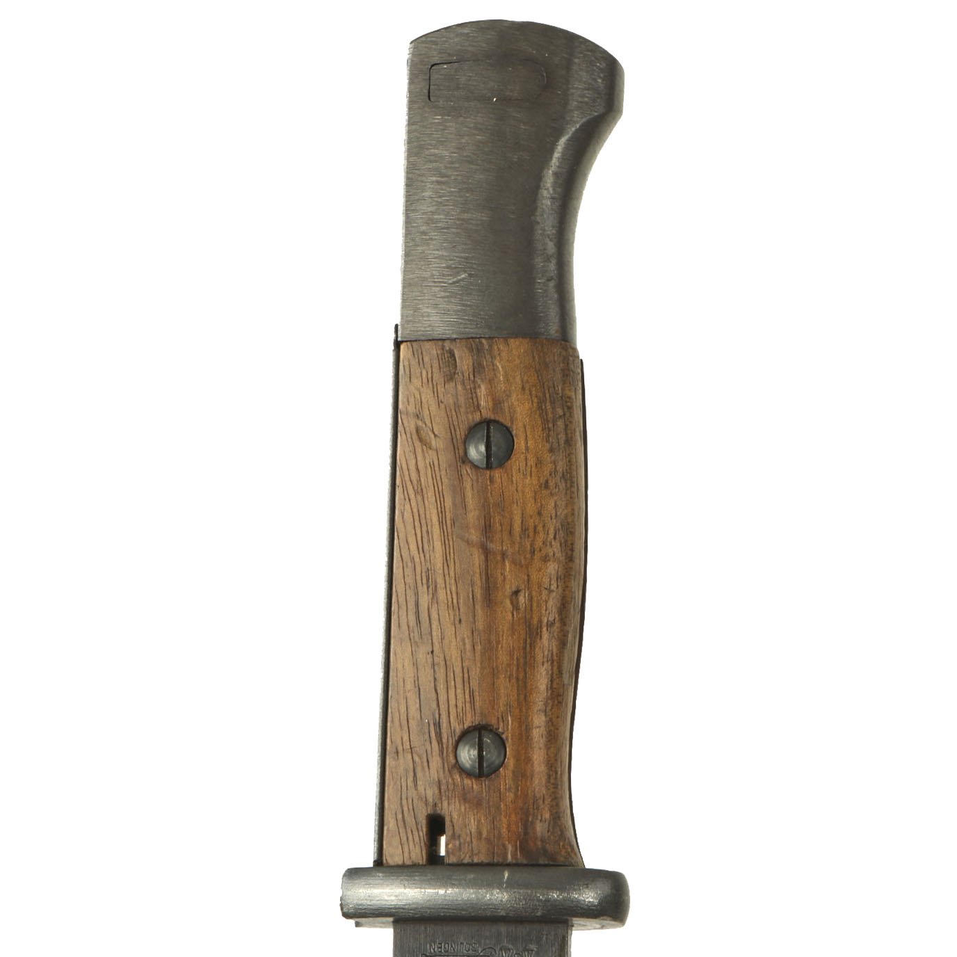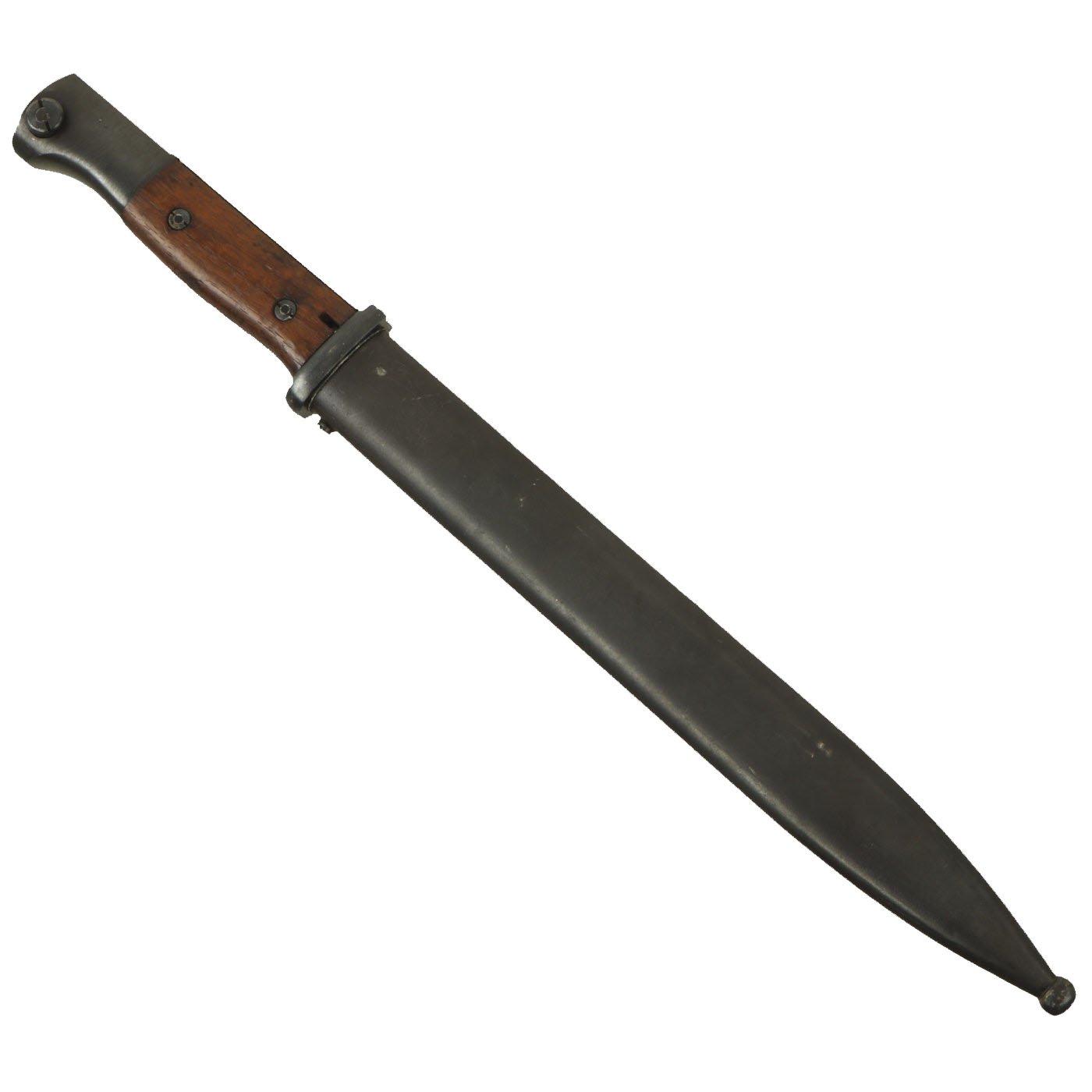 Original Item: Only One Available. In 1935 the German military introduced the K98k bolt action rifle or Karabiner 98 Kurz, as a replacement for the older GEW98 or Gewehr 98. A new, shorter bayonet was designed to go along with the shortened rifle. The K98 bayonet was officially named Seitengewehr 84/98 III or SG 84/98 III. The bayonet was designed as a close combat sidearm that could be placed on the tip of a K98.