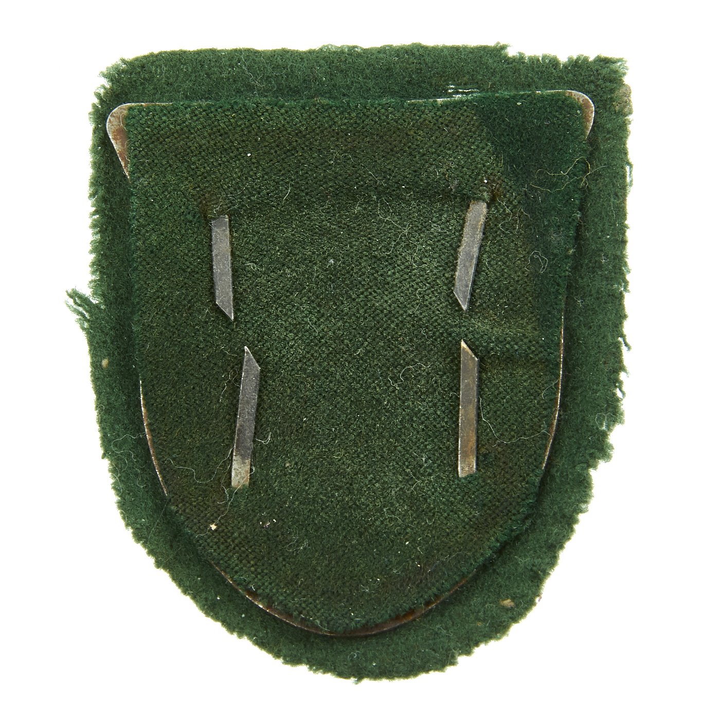 Original Item: Only One Available. This is a very nice example with a very good metal shield attached to green wool cloth backing. From the looks of it, this example was actually installed on a uniform at one point, and then removed and mounted on this green display fabric, which would be from a post war uniform. The shield and back plate itself are in great shape, with lots of the original finish. Ready to display!