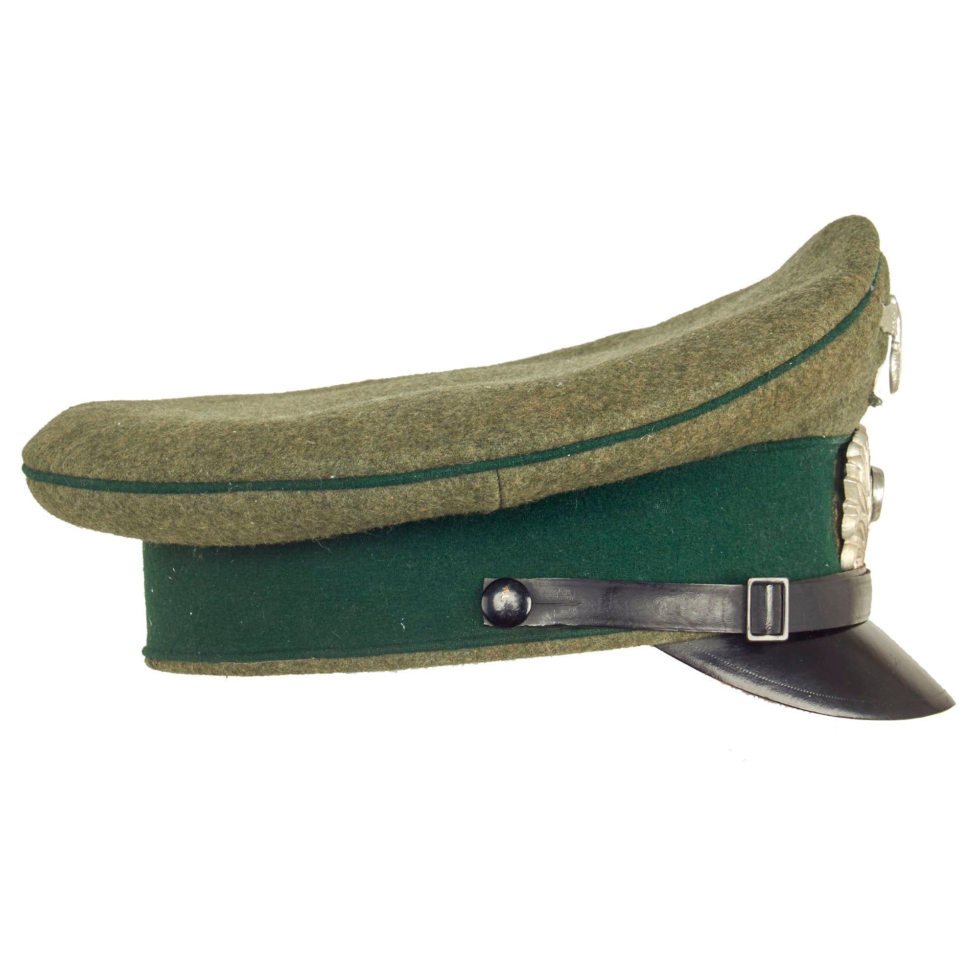 The visor cap (Schirmmütze) was an important part of the headgear worn by German uniformed military, civil, paramilitary and political organizations during the Third Reich. This was the standard cloth headgear worn as a part of the service uniform. Visor caps were worn outdoors as well as indoors, and were often required to be worn by all personnel on duty. Visor caps were made in versions specific to each organization and were often further differentiated through the use of insignia, colored piping, or style of chin cord, to indicate rank, role or branch. The insignia used on these caps ranged from simple stamped metal emblems, to elaborate hand embroidery. Visor caps were issued to enlisted soldiers and NCOs in the military and in some other organizations. Officers had to purchase their own hats, and lower ranks could choose to purchase caps that were of a higher quality than the rather basic, issue examples. The private purchase caps were generally made in very high quality, with fine materials. A wide variety of fabrics were used, from Trikot and doeskin, to heavy wool, or even lightweight white fabric for summer wear. In the military, issue of these caps was generally suspended shortly after the outbreak of the war, but they continued to be worn by some troops until the end of the war.